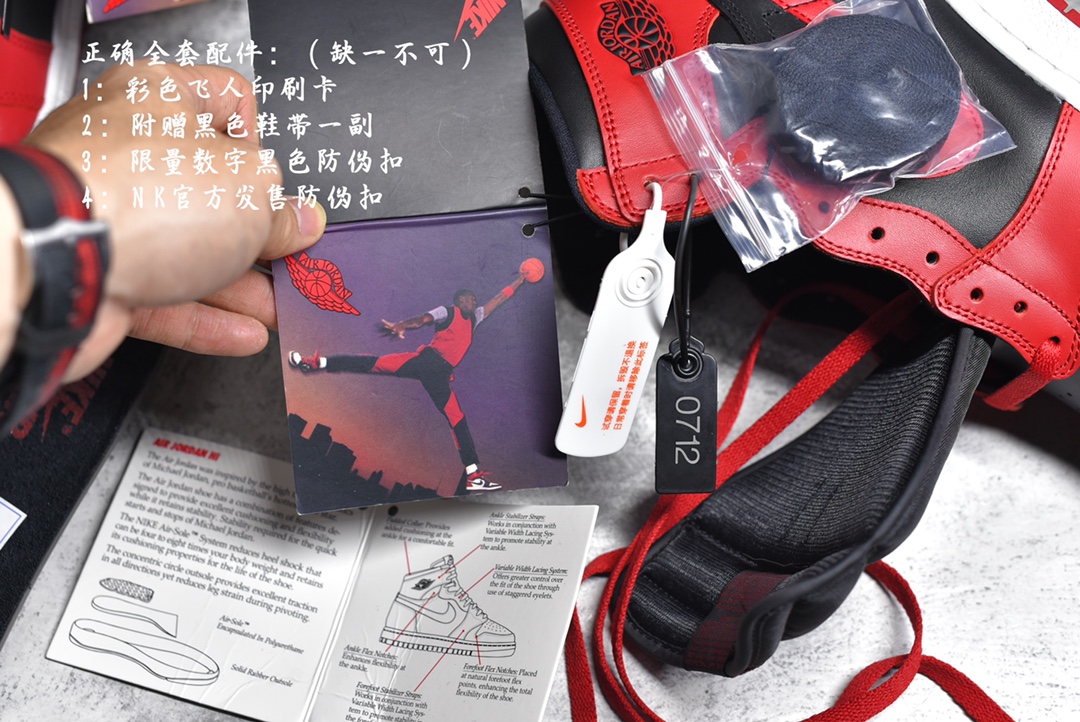 Accessory graphic and text analysis: The Air Jordan 1 High'85"Varsity Red" reversed black red is the only one on the market