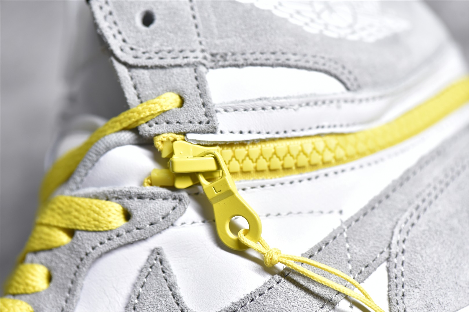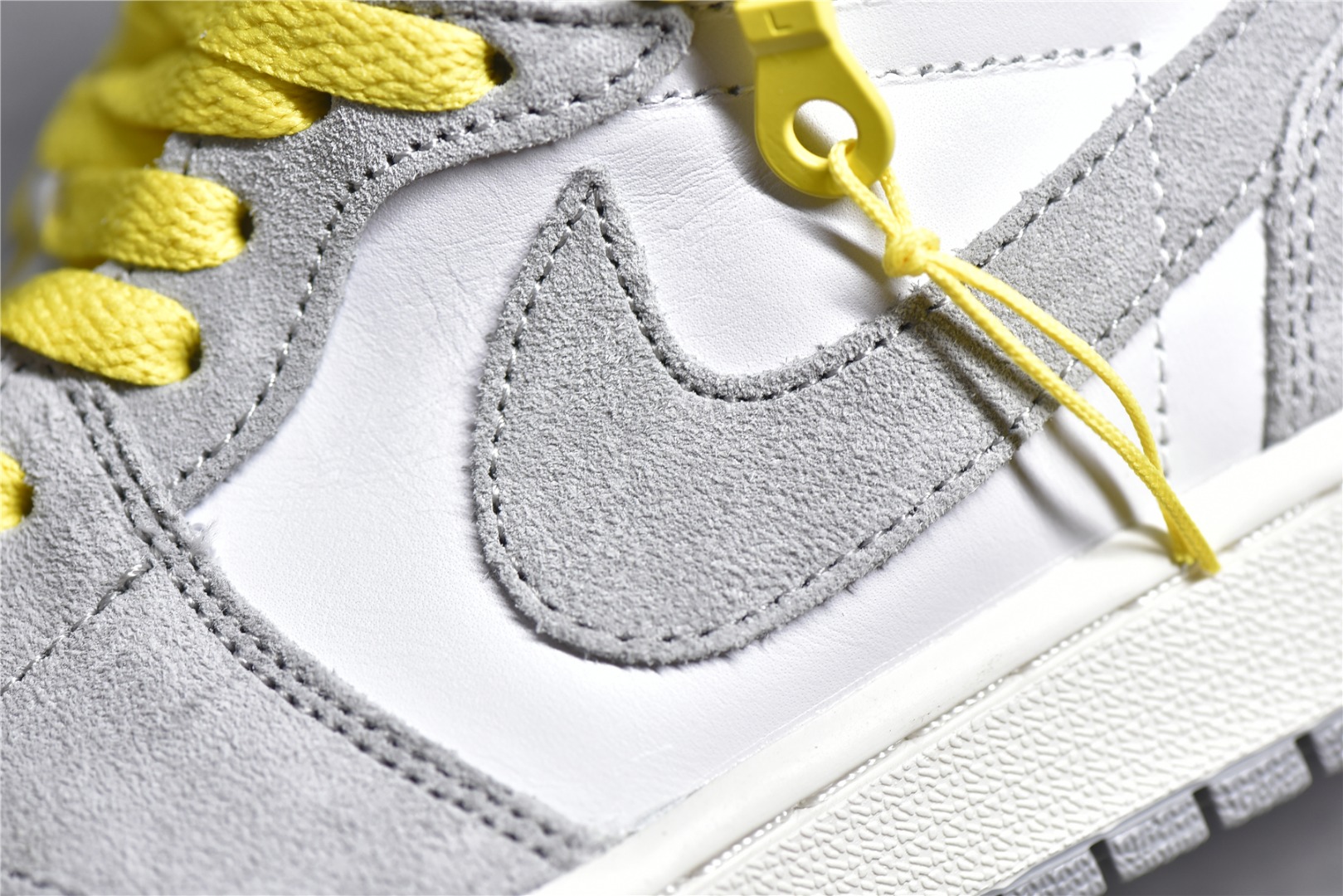 Details for reference Air Jordan 1 High Switch "Light Smoke Grey" cigarette ash zipper