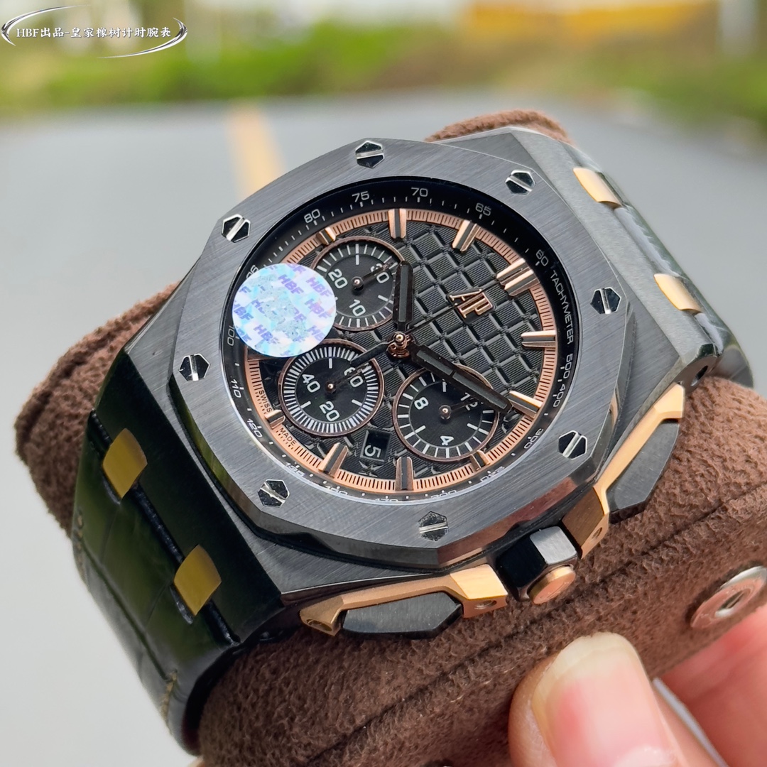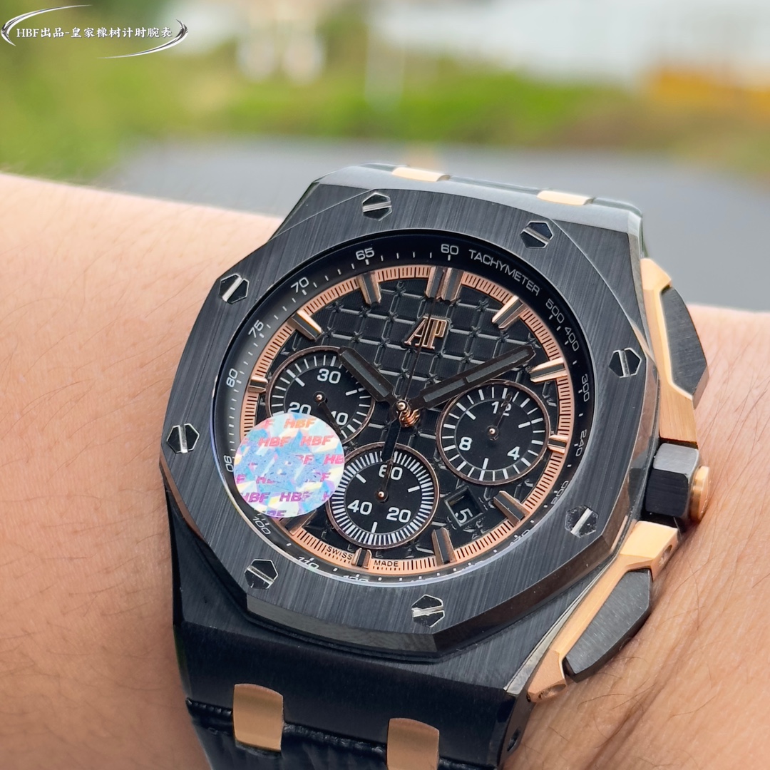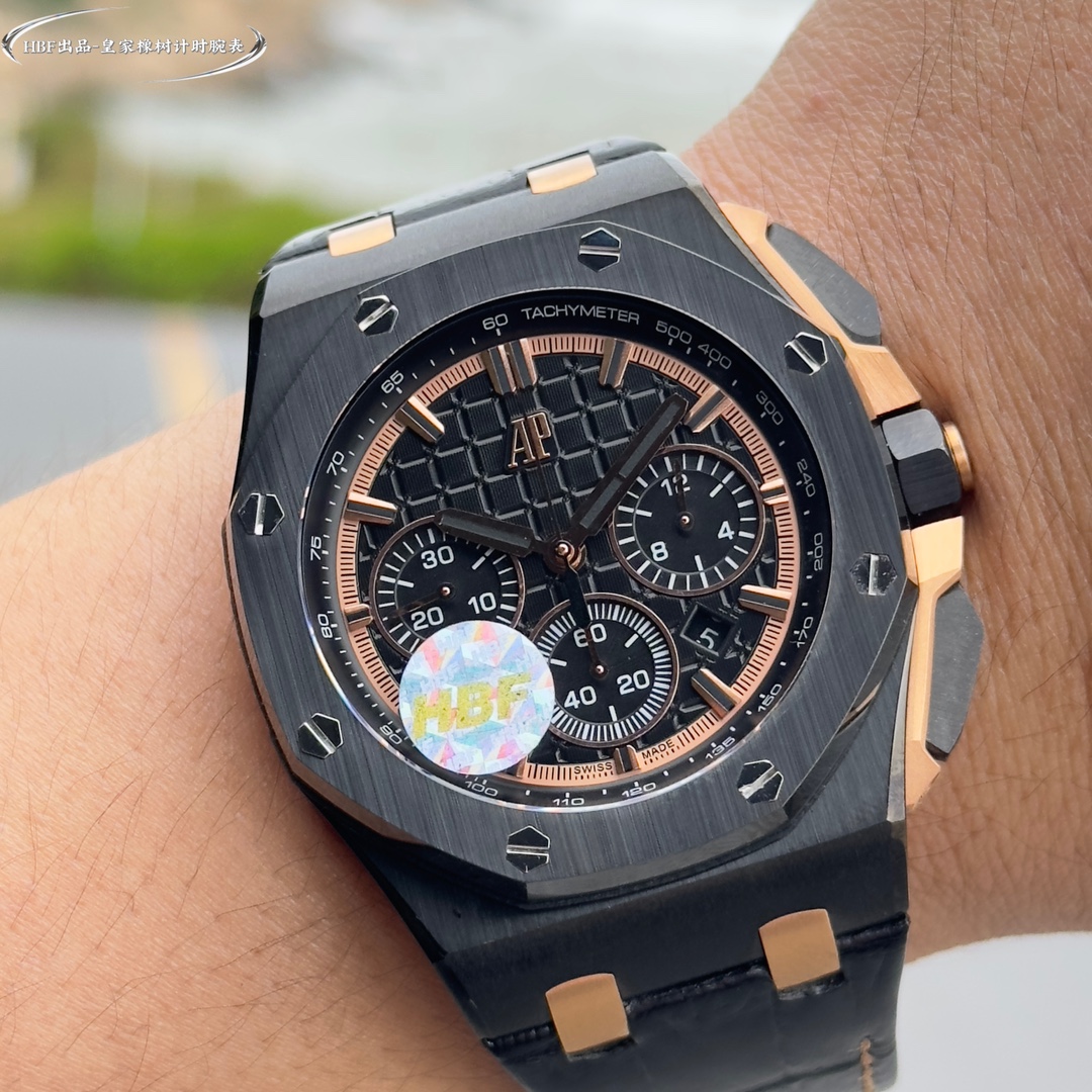 Audemars Piguet Royal Oak Offshore Limited Edition Multifunctional Chronograph Mechanical Wristwatch nDimensions: 44mm - 17mm n [Bezel] The bezel is consistent with the original and uses imported ceramic bezel n [Crown] The crown is made of hexagonal ceramic material and the top is brushed and polished n [Movement] The movement is even more imposing under the backdrop of the transparent back cover. The gray-black automatic rotor has a strong sense of layering, and the gemstones set on the surface of the movement are also added. 7750 3126 automatic chronograph mechanical movement [Crystal] The crystal is made of imported sapphire glass. [Case] The case is made of imported 316 stainless steel. [Strap] It is equipped with imported fluororubber strap and original pin buckle. It is a must-have tool for tough men. After multiple polishing and frosting processes, the unique octagonal bezel of AP is finally expressed with sharp and angular lines. Highly recommended Audemars Piguet entry-level watches!!