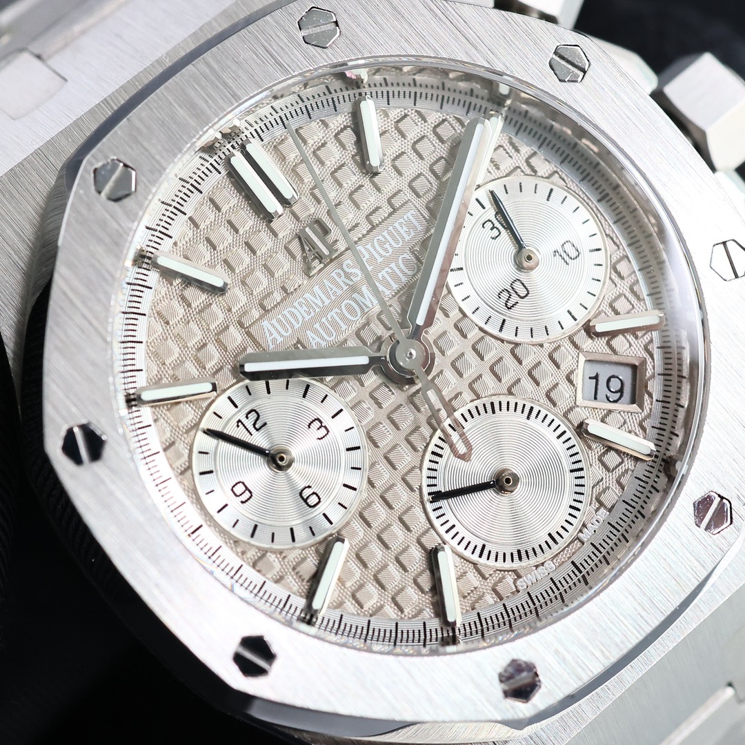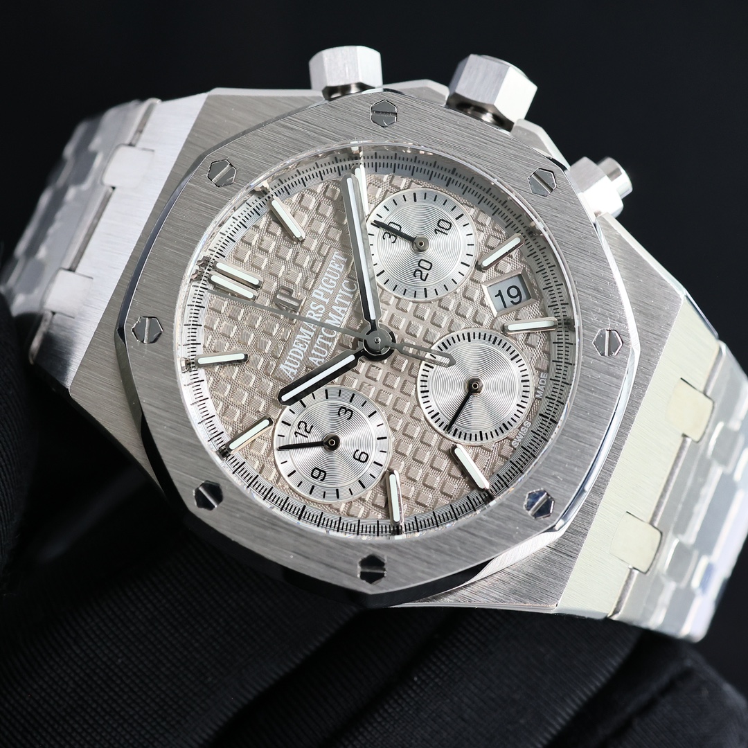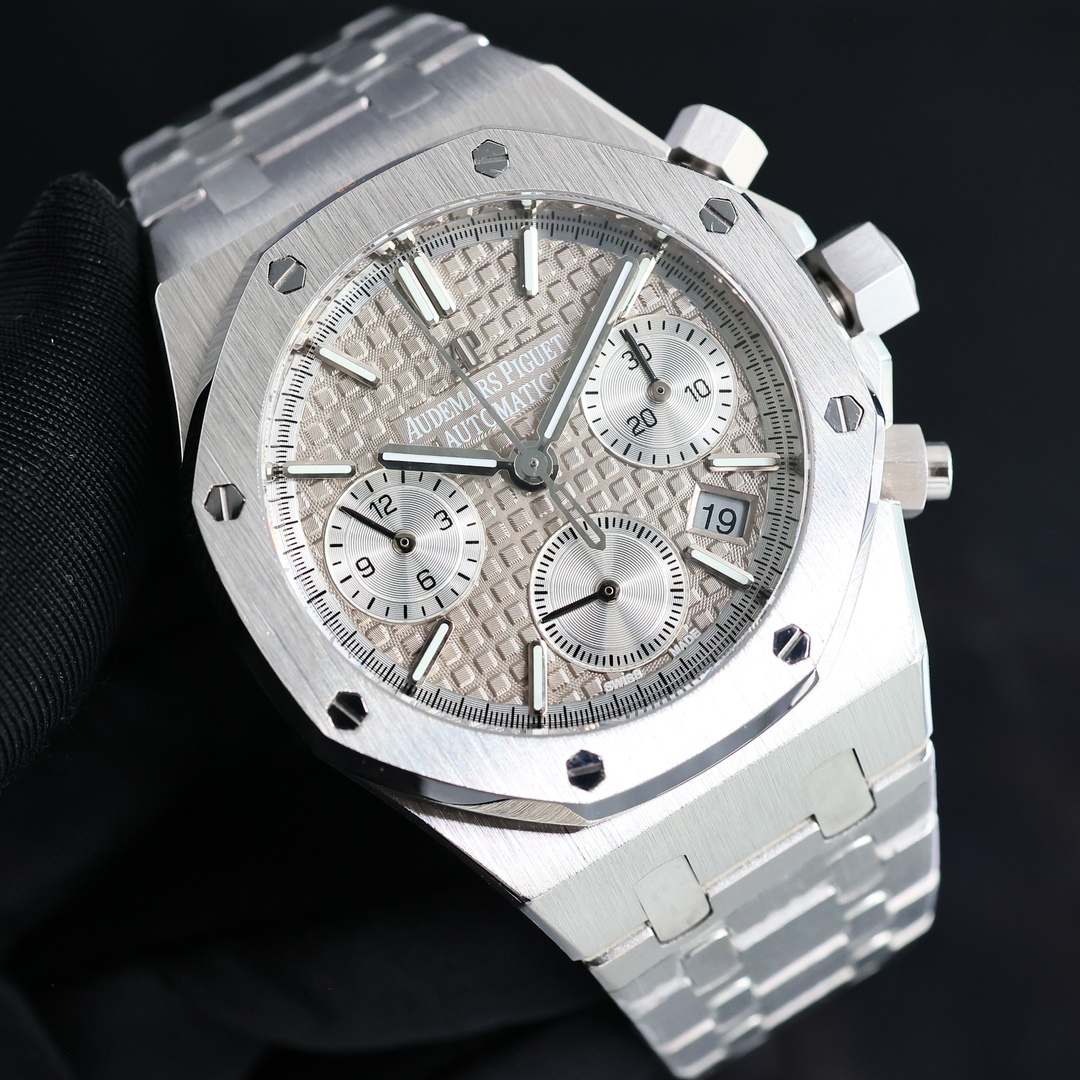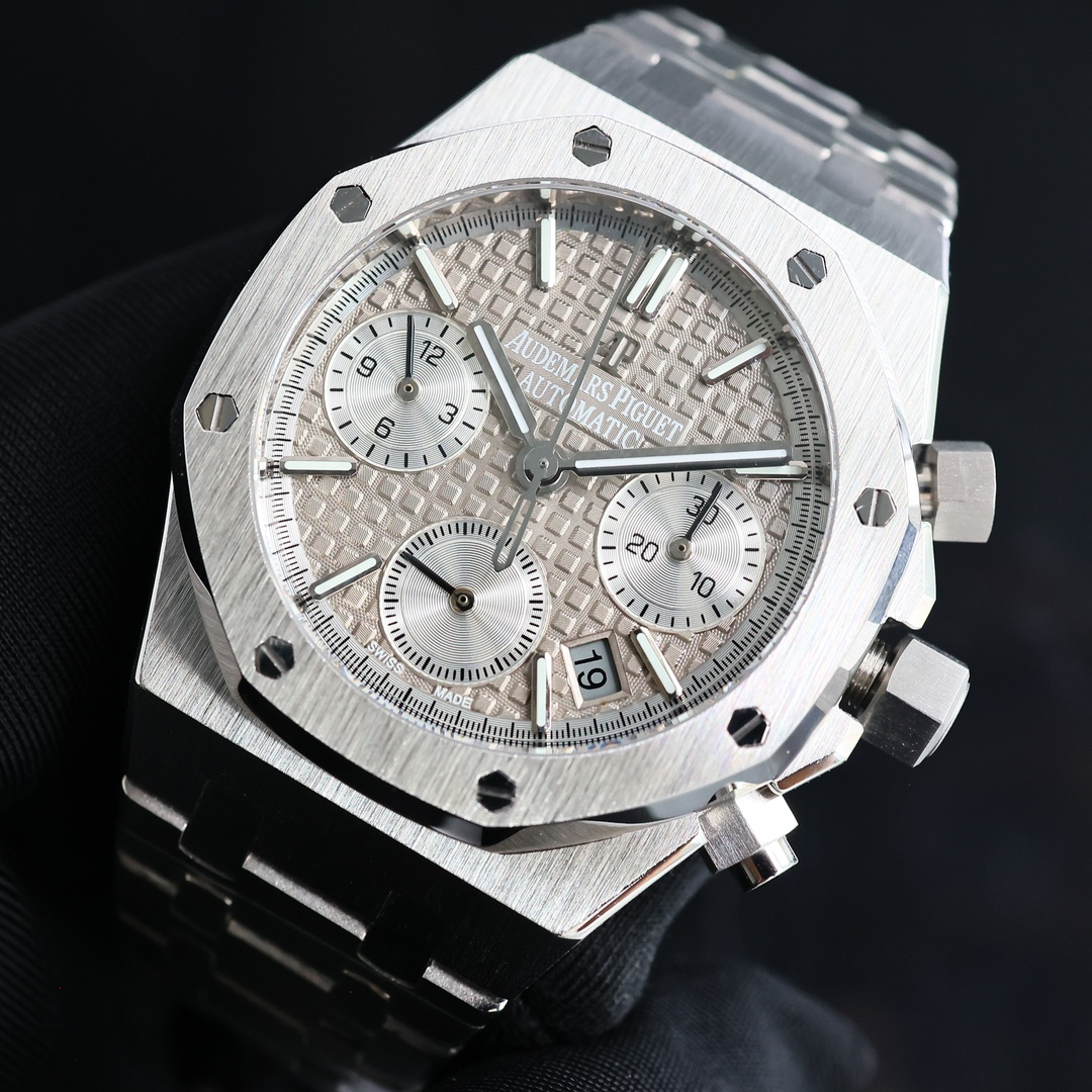 Popular Audemars piguet The CURRENT HIGHEST mechanical movement version ?? GENUINE IS mechanical! Machinery! Don't waste money on buying a quartz! AP Royal Oak Chronograph Series watches, genuine 1:1 original replicas. All dials are meticulously crafted and developed based on the original genuine dial templates, outshining the market's high-fidelity imitations. Welcome everyone to come and identify them. At present, genuine watches are hard to come by in one of the popular markets both at home and abroad. The second-hand market price has risen to 500,000 yuan, which is quite a good value for preservation and appreciation. If you can buy one, you will make a profit. Each watch face is of the original genuine and substitute level. It took a full one year and three months from the development to the color, to ensure that everyone can buy the most cost-effective watch model with the least money The case material of the watch is imported 316 stainless steel, with ultra-fine grinding and brushing process, and meticulous attention to detail! The dead corners are hand-brushed, and the hardware accessories at all positions are polished to maintain the original consistency. The technical breakthroughs have been made to ensure that the shells can be interchanged with genuine products. Each dial is an original substitute grade dial, which cannot be compared with the high-quality counterfeits on the market. The most precious part is that the original molded lettering pins and hands are integral-molded, truly restoring the effect of the genuine product. Unlike the market, it has two layers and no luster! It is equipped with the 7750 movement, ensuring accurate and stable timekeeping