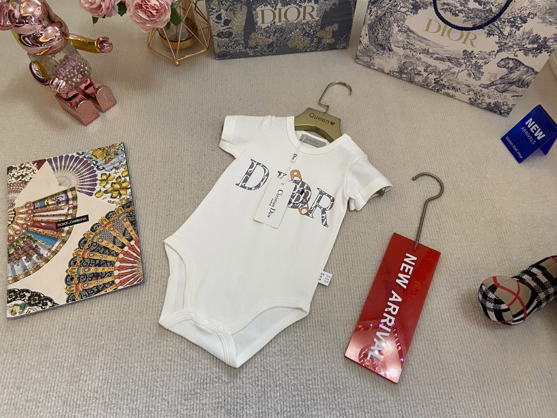 Book for one week! Dior, high-end children's clothing, boys' and girls' casual wear, baby jumpsuits, pure cotton fabric is also very comfortable to wear next to the skin! Code size: 59-6-3-80-90cm