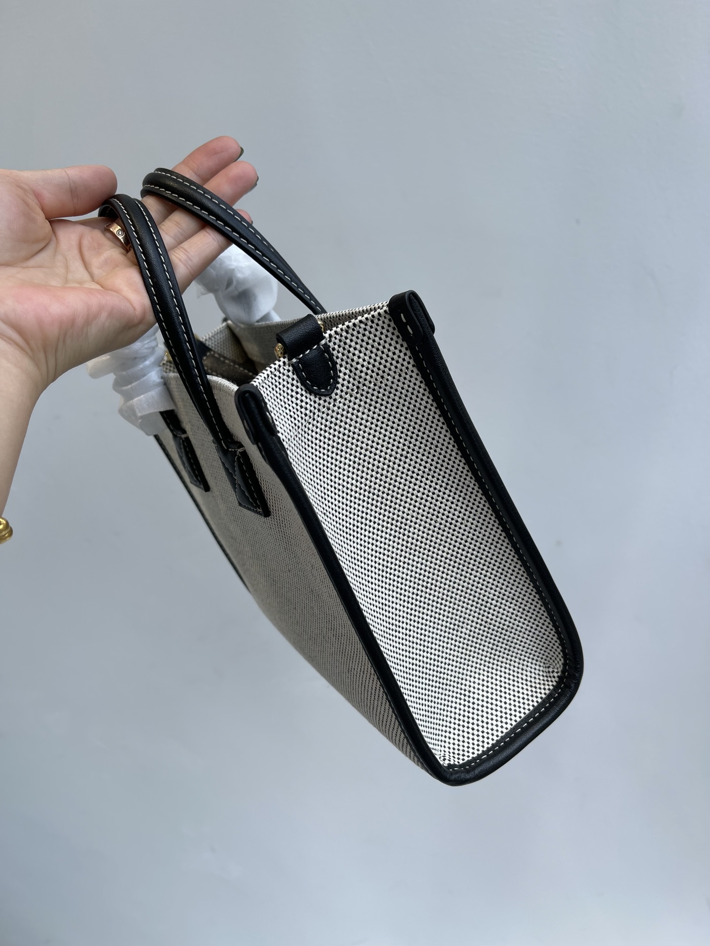Burberry Freya mini two-color canvas patchwork Freya bag, hand-held tote bag, single-shoulder crossbody bag. The bag body is made of carefully selected cotton canvas and imported cowhide. The design is super reasonable, and there is no need to worry about color rubbing or wear at all. There is a magnetic clasp flap outer bag on the front, decorated with the brand's Horseferry print, which is highly recognizable and very elegant and upscale. It features an open snap opening and closing design. Inside, there is a cowhide inner pocket. Although it is mini, its capacity is quite large, so you don't have to worry about not having enough. With it, you can carry all the items you need to carry when going out without any problem. The top leather handle comes with an adjustable long leather shoulder strap inside, which is very convenient to free up your hands in no time. It is elegant and beautiful, with a comfortable back feel. It can be carried over the shoulder, crossbody or hand. The wearing effect is very versatile and it is also very light. I really love the design of this bag shape. It has a rather unique style. Its appearance naturally exudes a general retro school vibe. It's a casual and enduring style that suits both men and women. It looks great no matter how you pair it! It's another huge hit that can stir up the streets. It's also a great choice for posing! If you like it, get it right away! Size: 23X19X8cm nNumber: #63838250