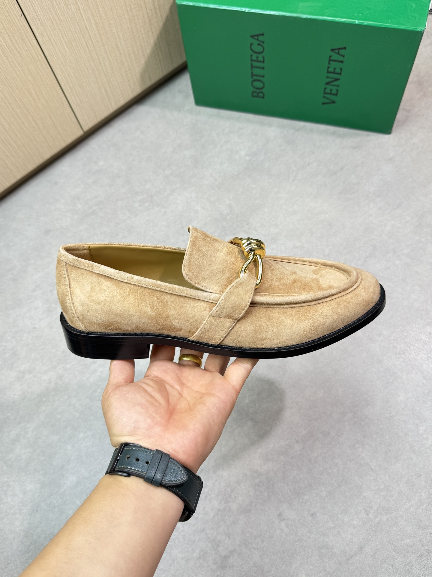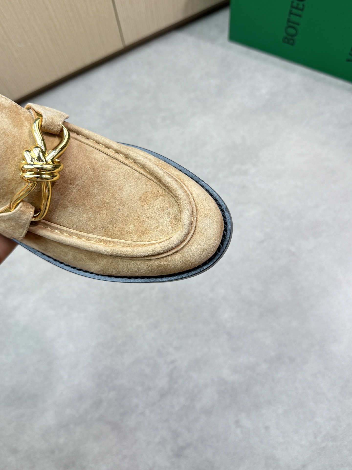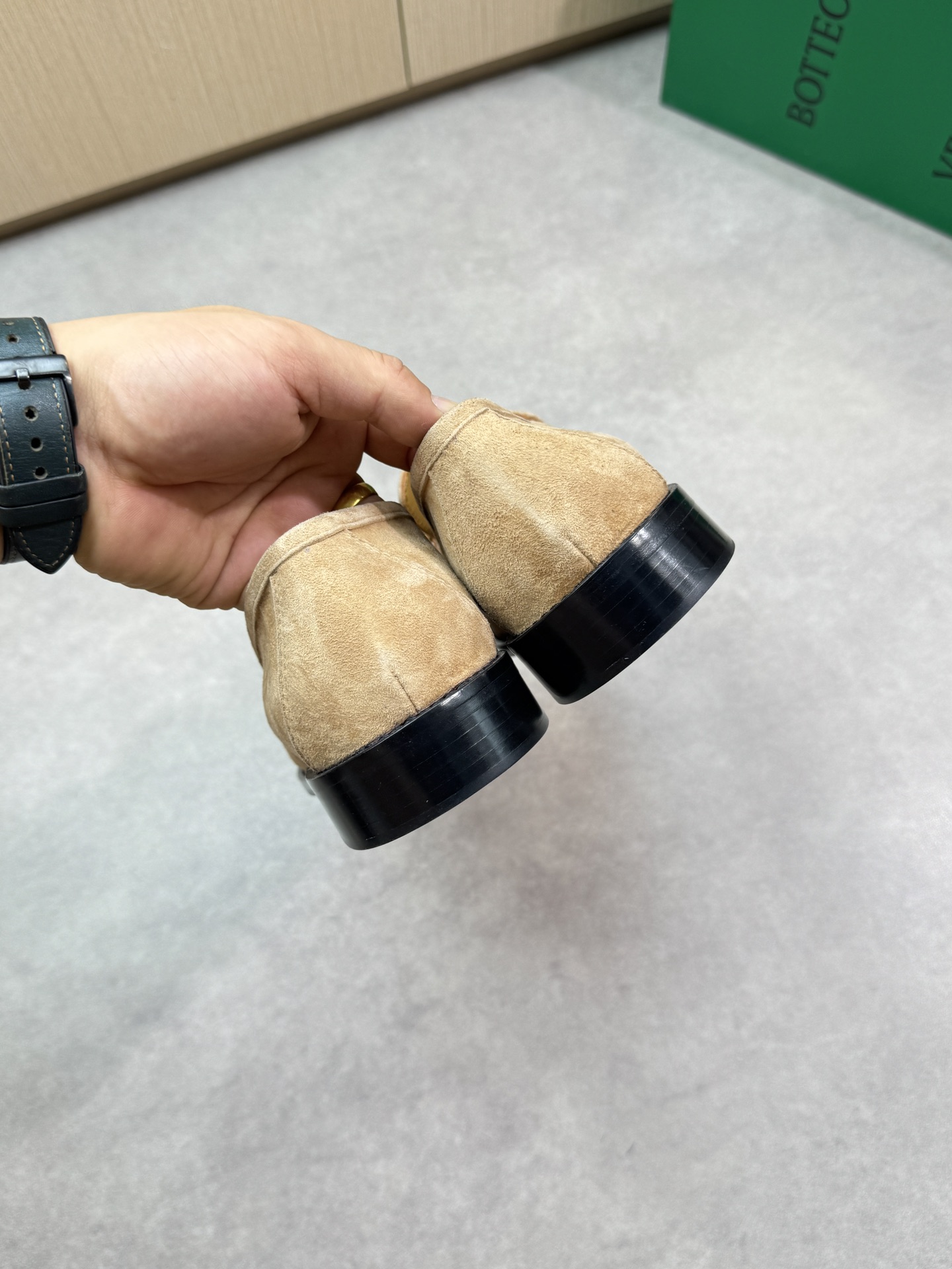 - Upper: ?? suede sheepskin, tongue brand metal fasteners, hand-stitched marking lines