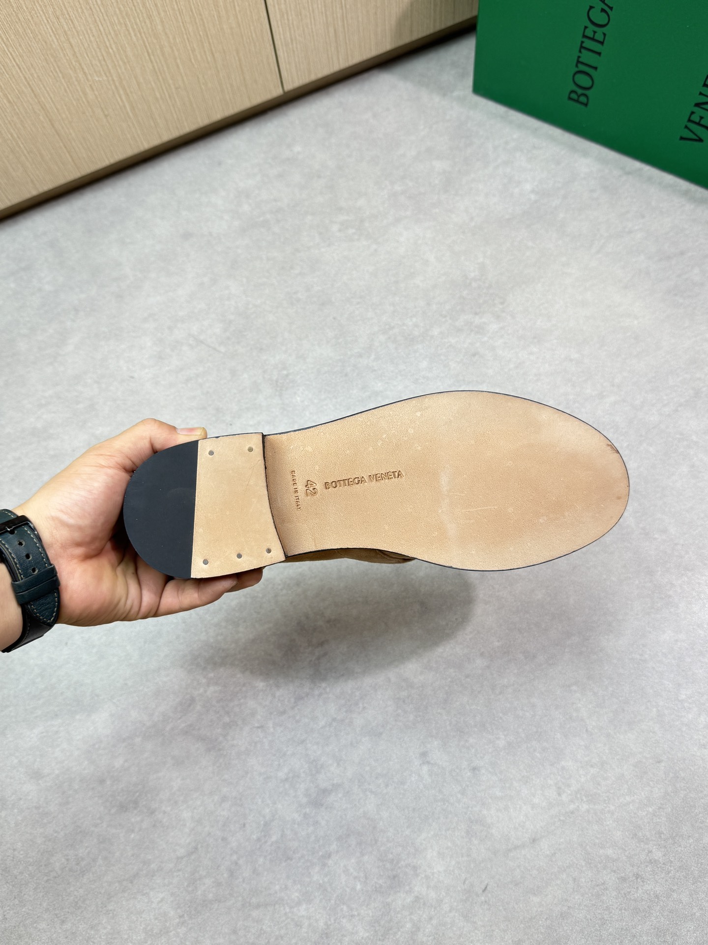 - Inside: Water-dyed sheepskin