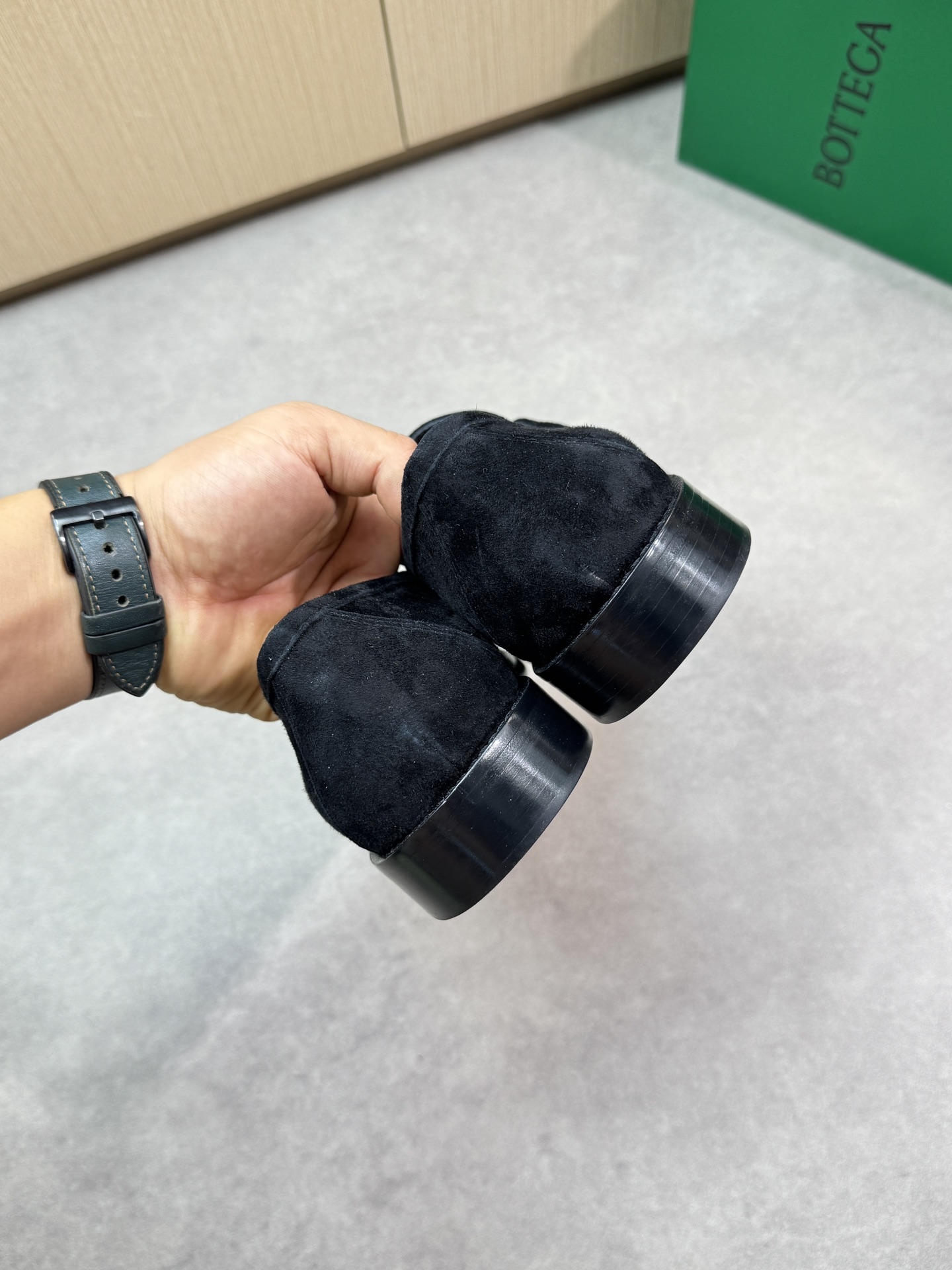 - Upper: ?? suede sheepskin, tongue brand metal fasteners, hand-stitched marking lines