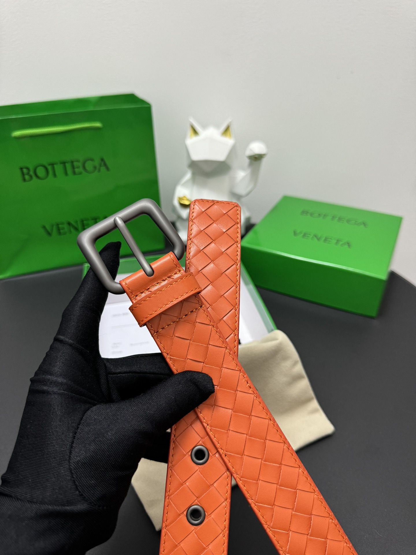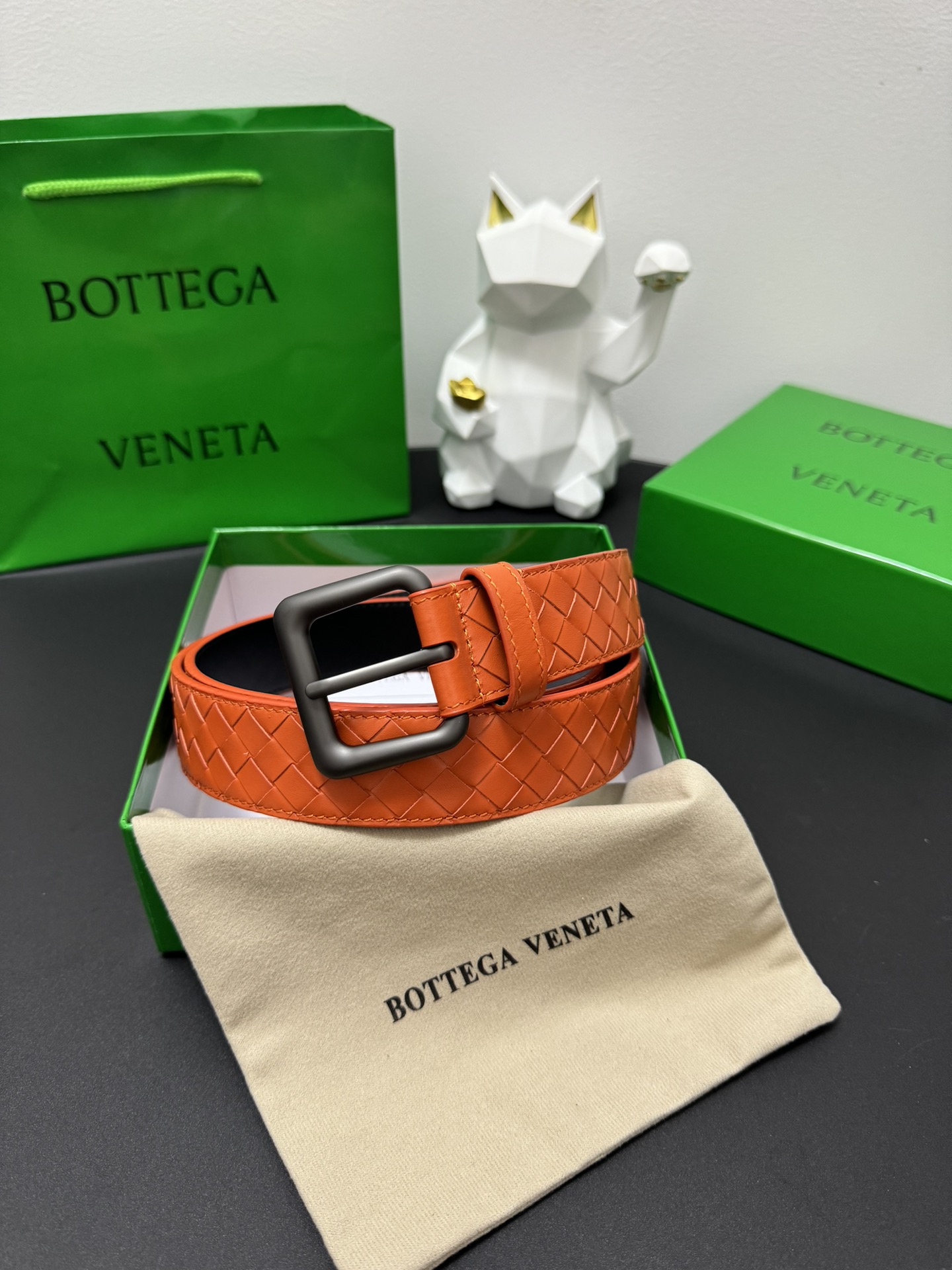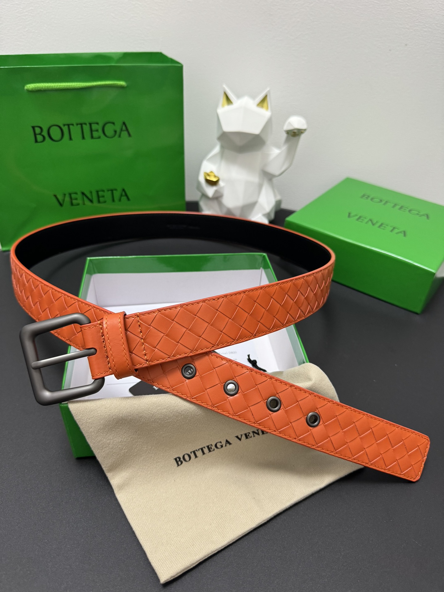 BOTTEGA VENETA 3.5cm Colour: Orange A classic hand-woven cowhide strip Every detail reflects the highest taste and style The overall design adds an elegant charm A model of understated luxury Elegant and charming aura Exquisite handicraft production.