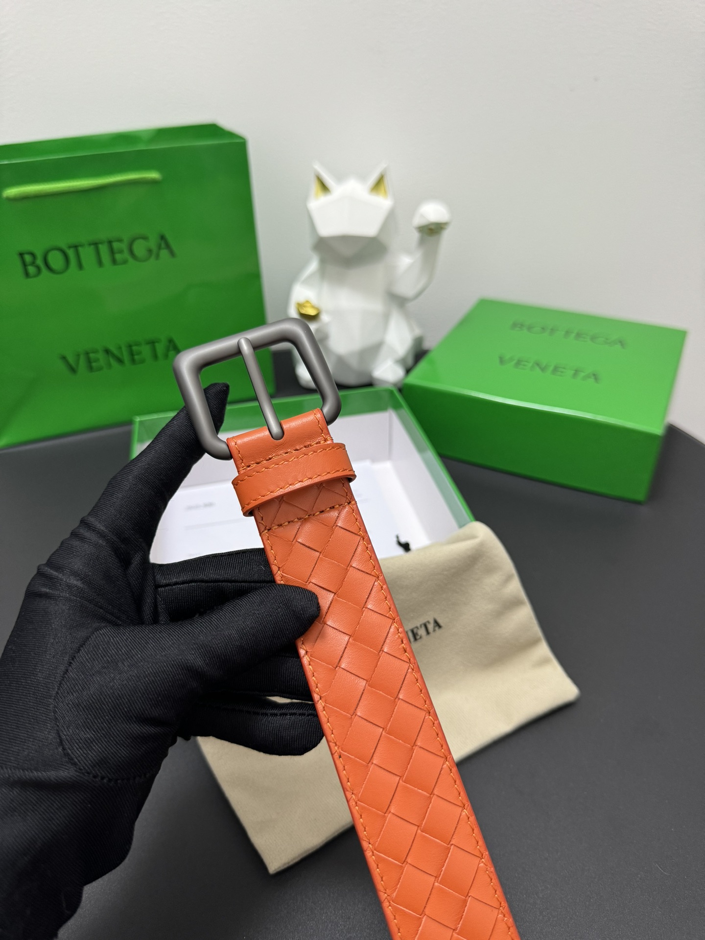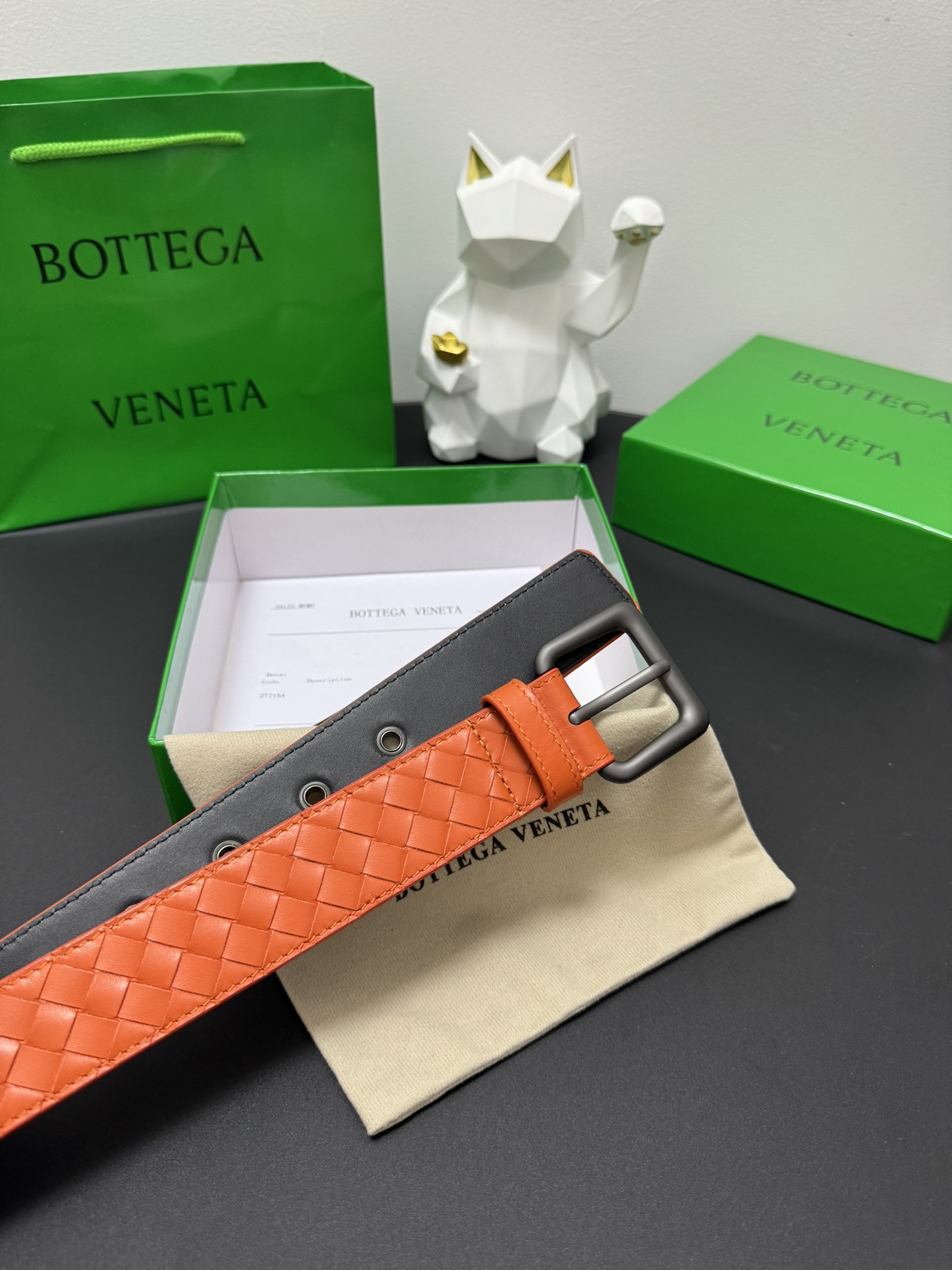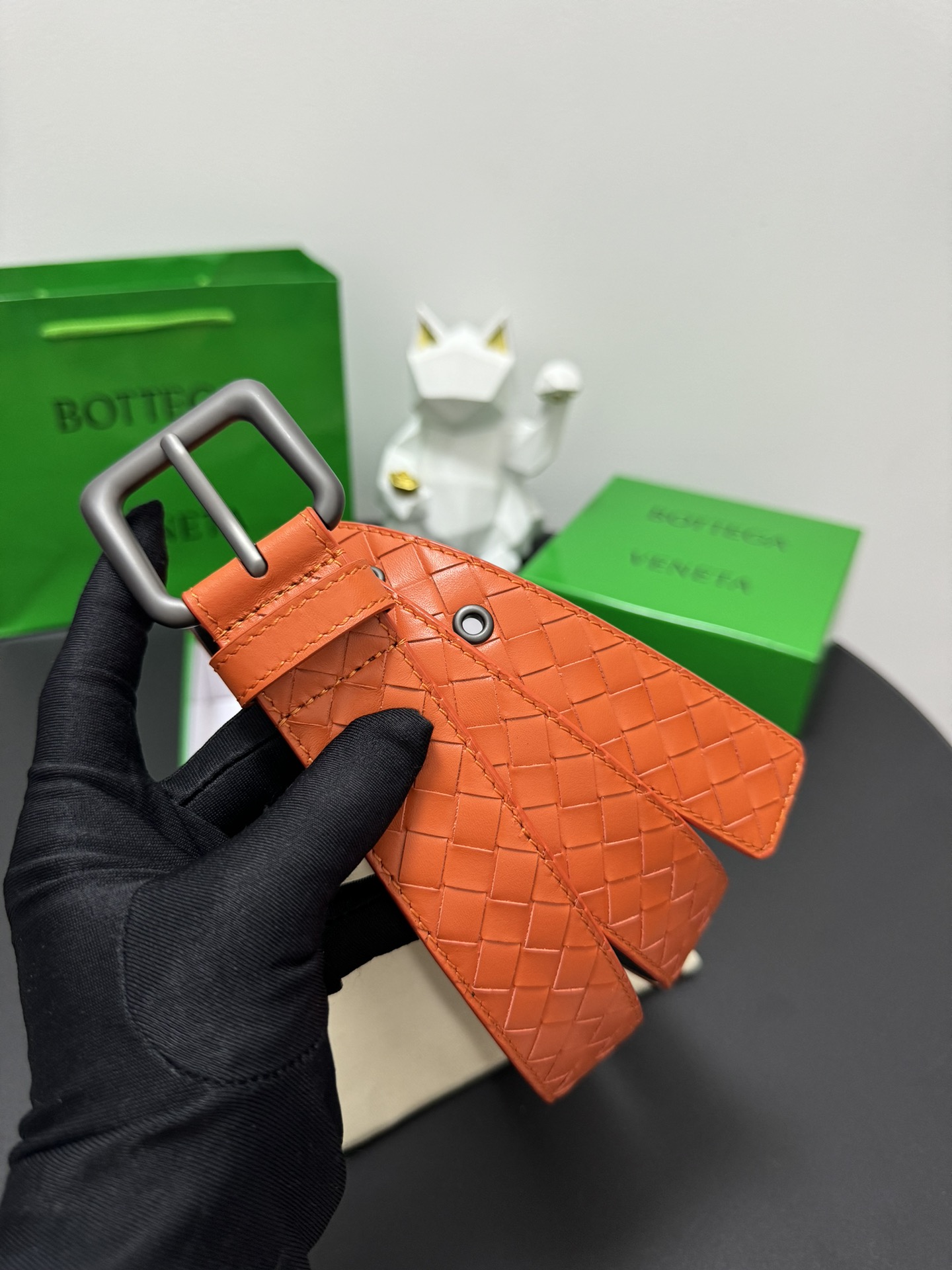 BOTTEGA VENETA 3.5cm Colour: Orange A classic hand-woven cowhide strip Every detail reflects the highest taste and style The overall design adds an elegant charm A model of understated luxury Elegant and charming aura Exquisite handicraft production.