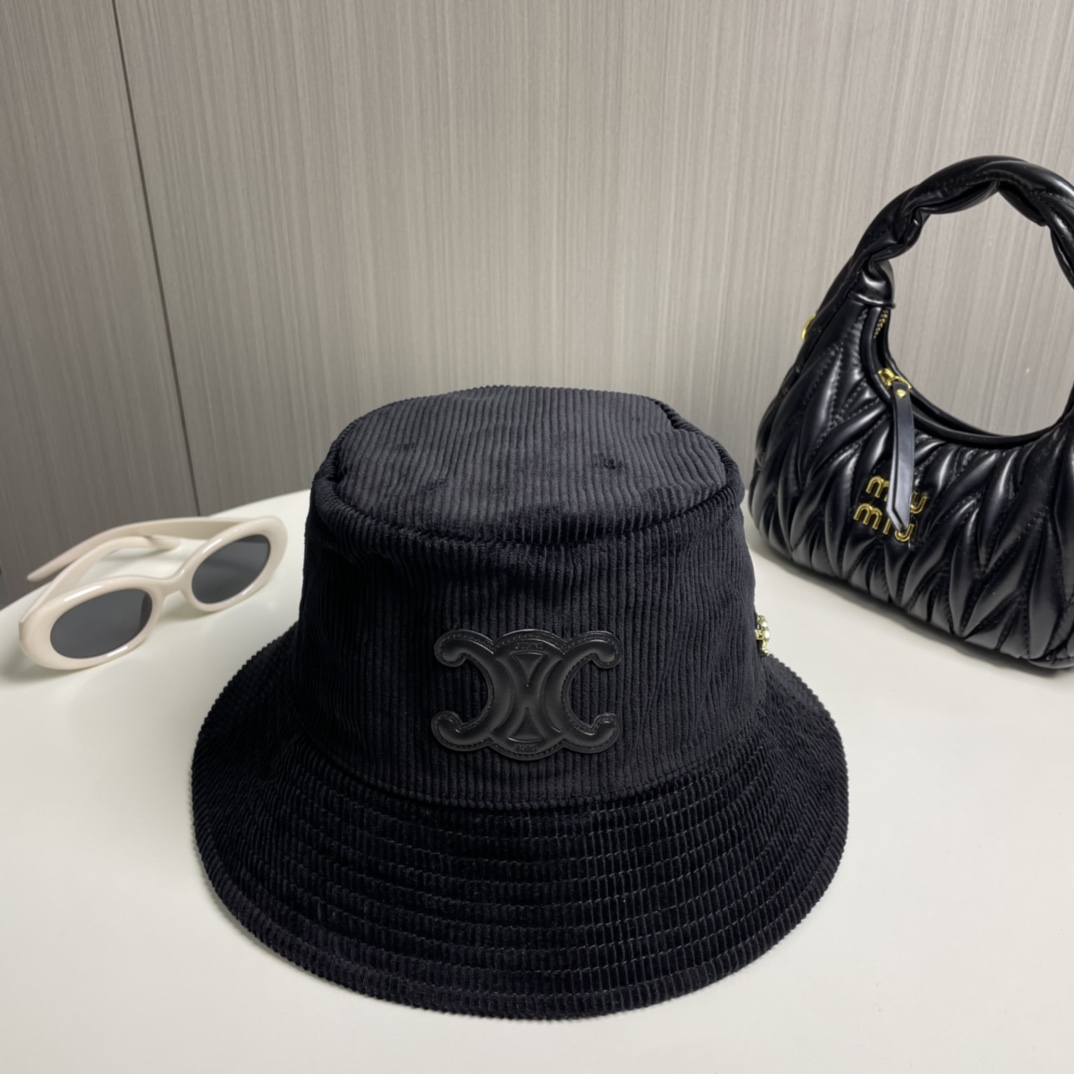 ?? CELINE high version official website latest style ?? Corduroy vertical fisherman hat for women, autumn/winter streetwear brand versatile retro trend