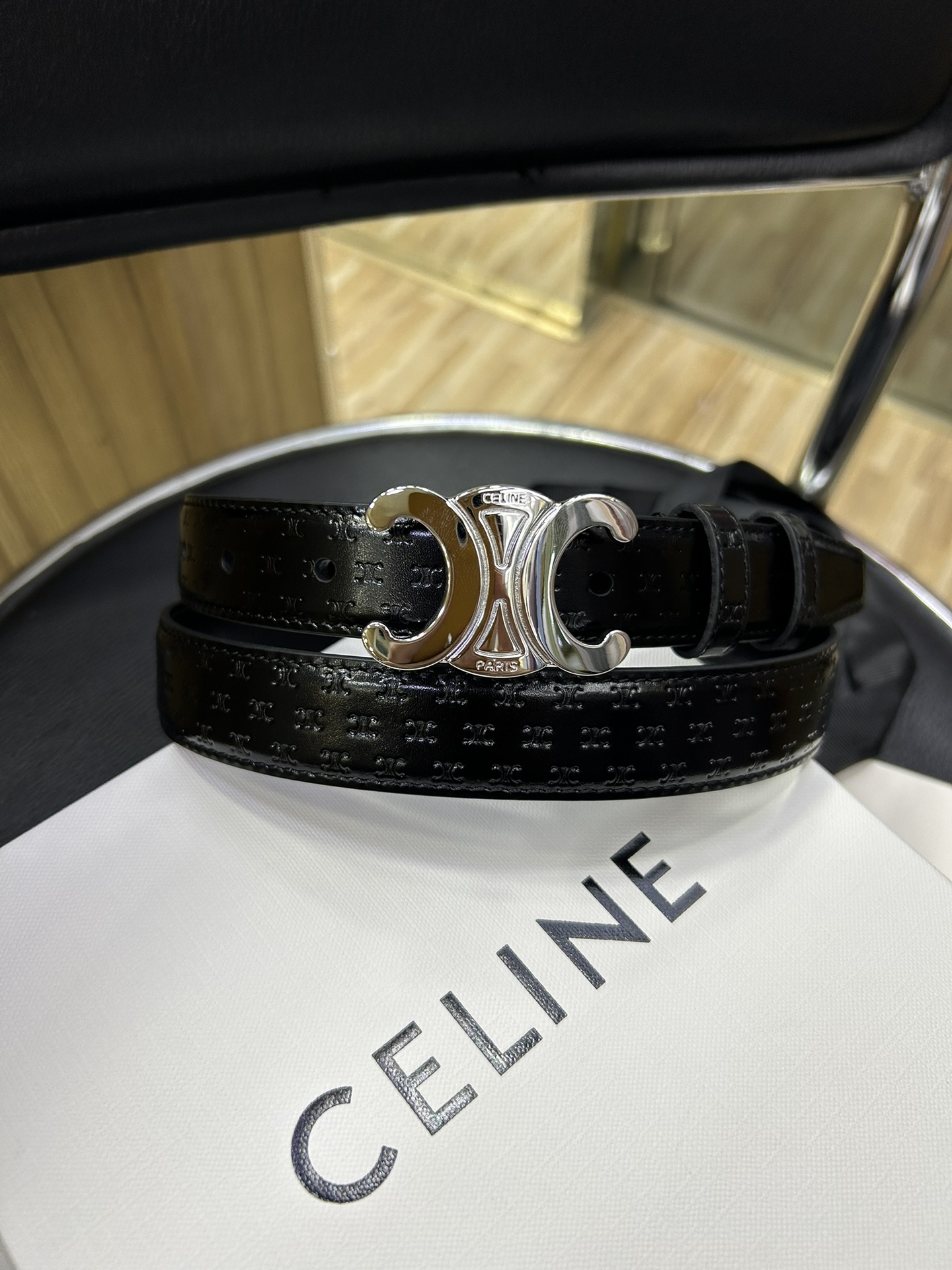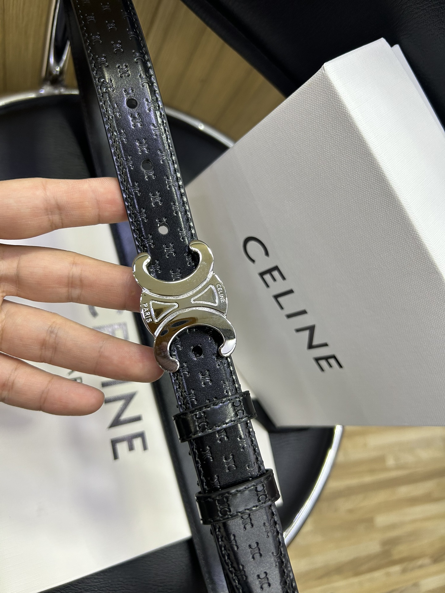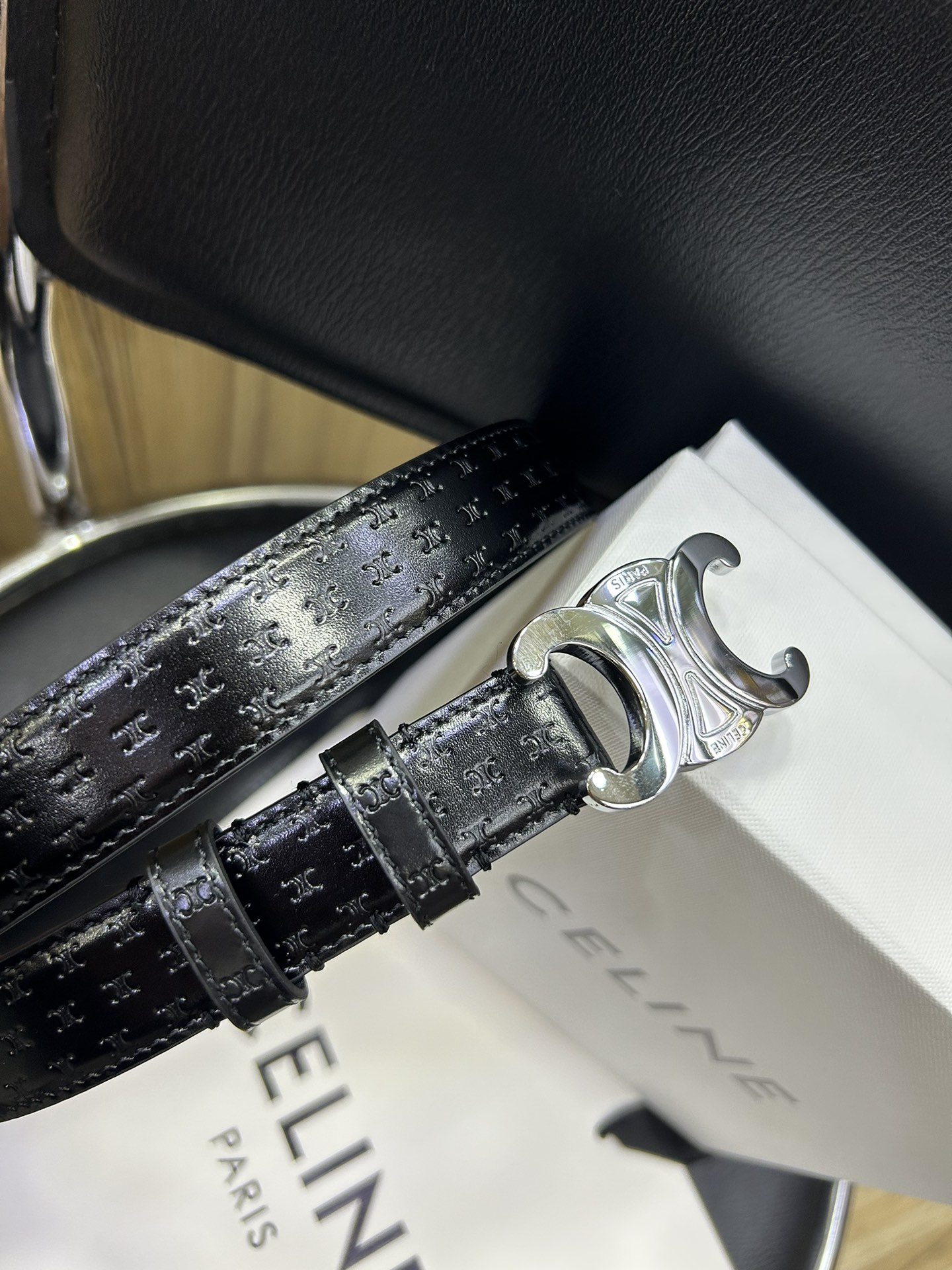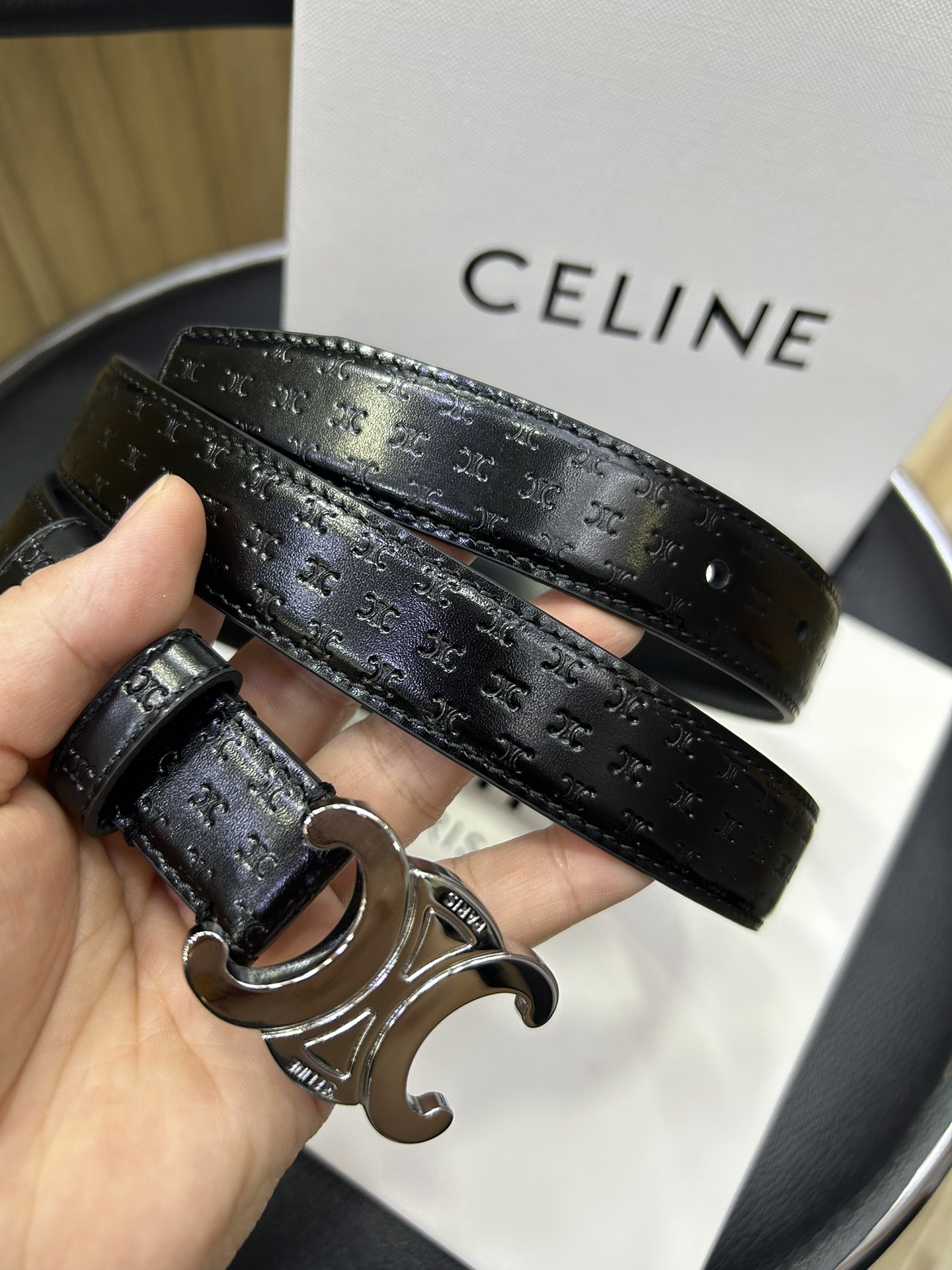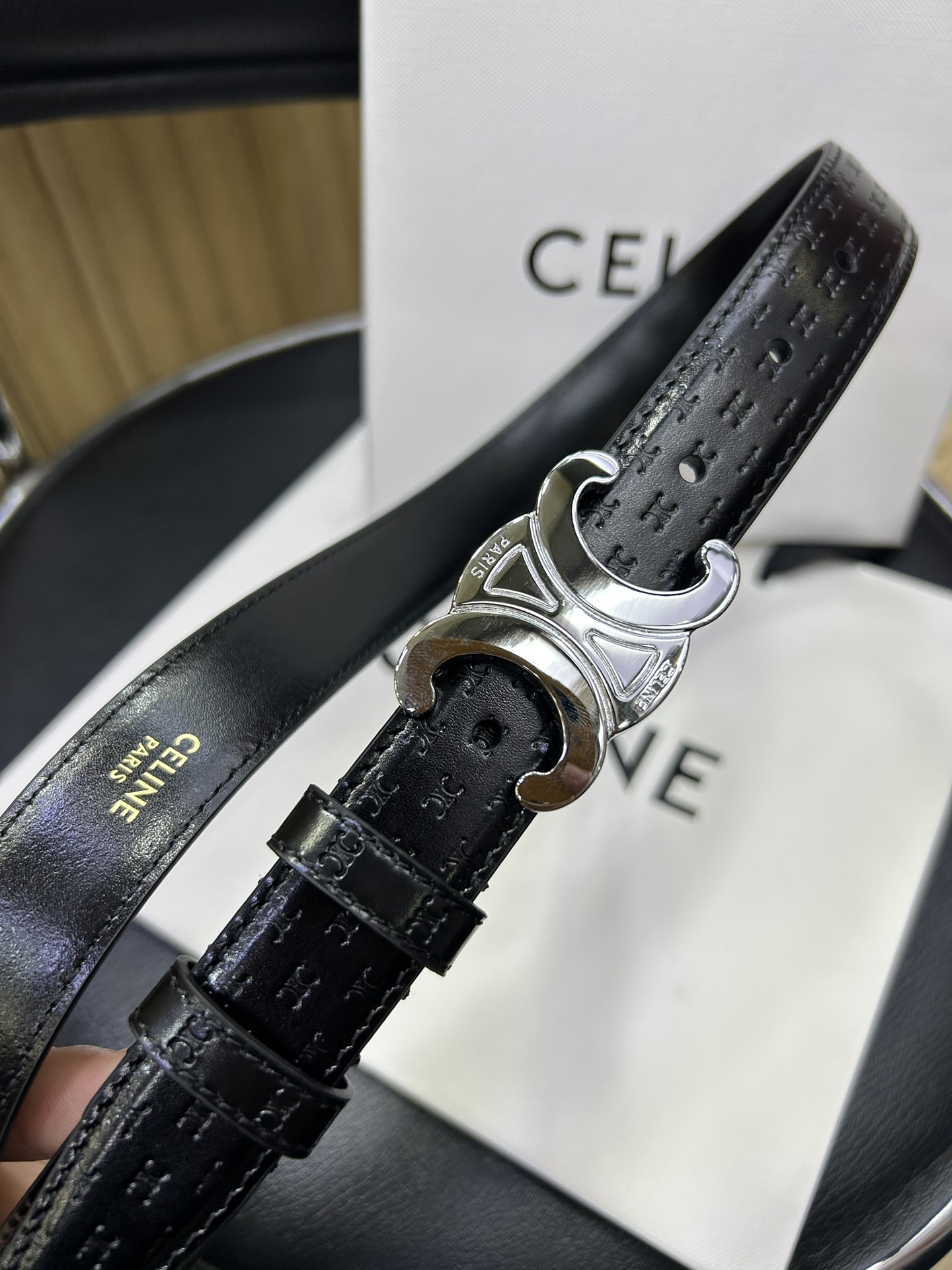celine TRIOMPHE calfskin. Retro style pure copper gold metal parts, collar buckle buckle - belt width 2.5cm