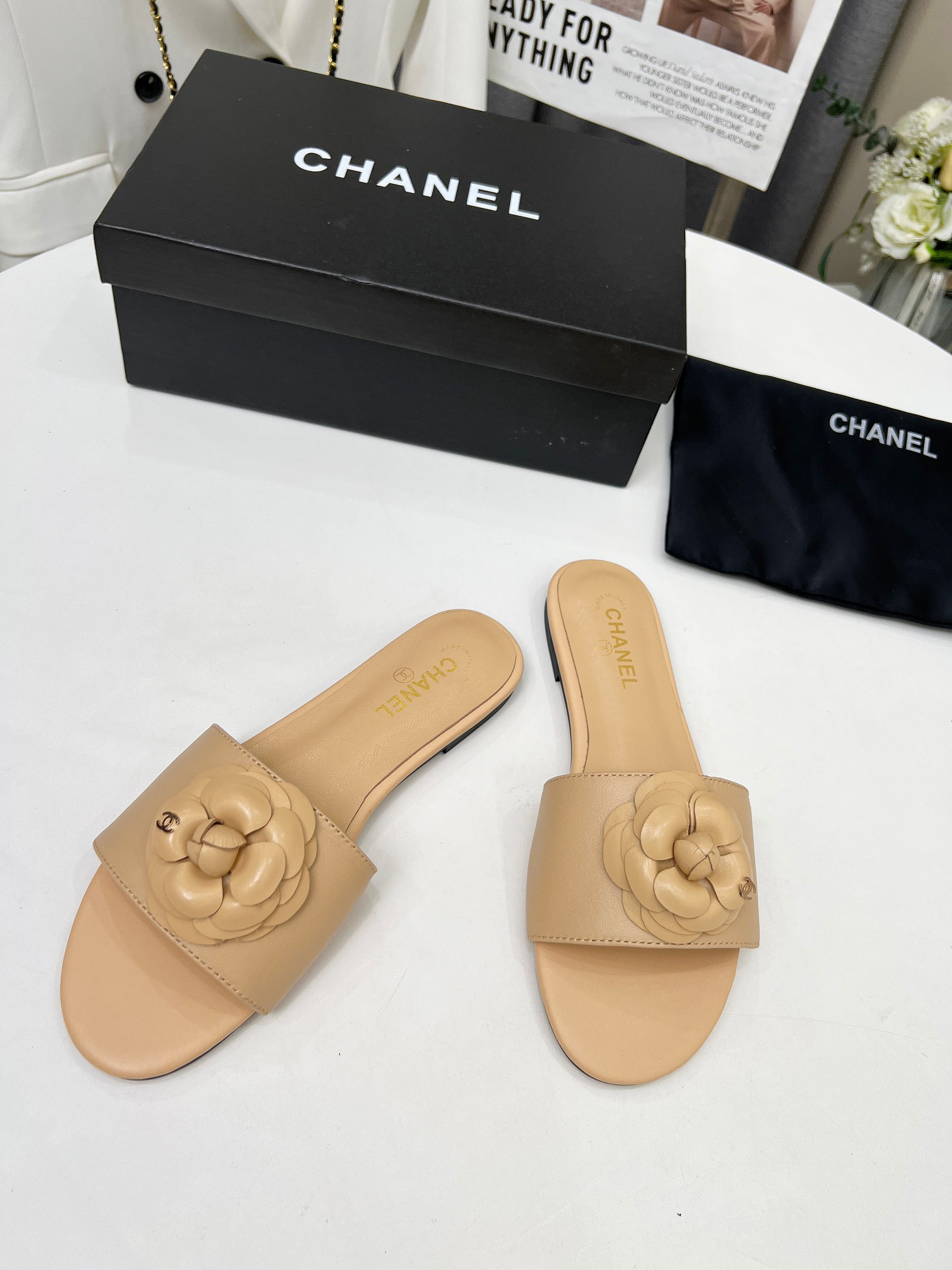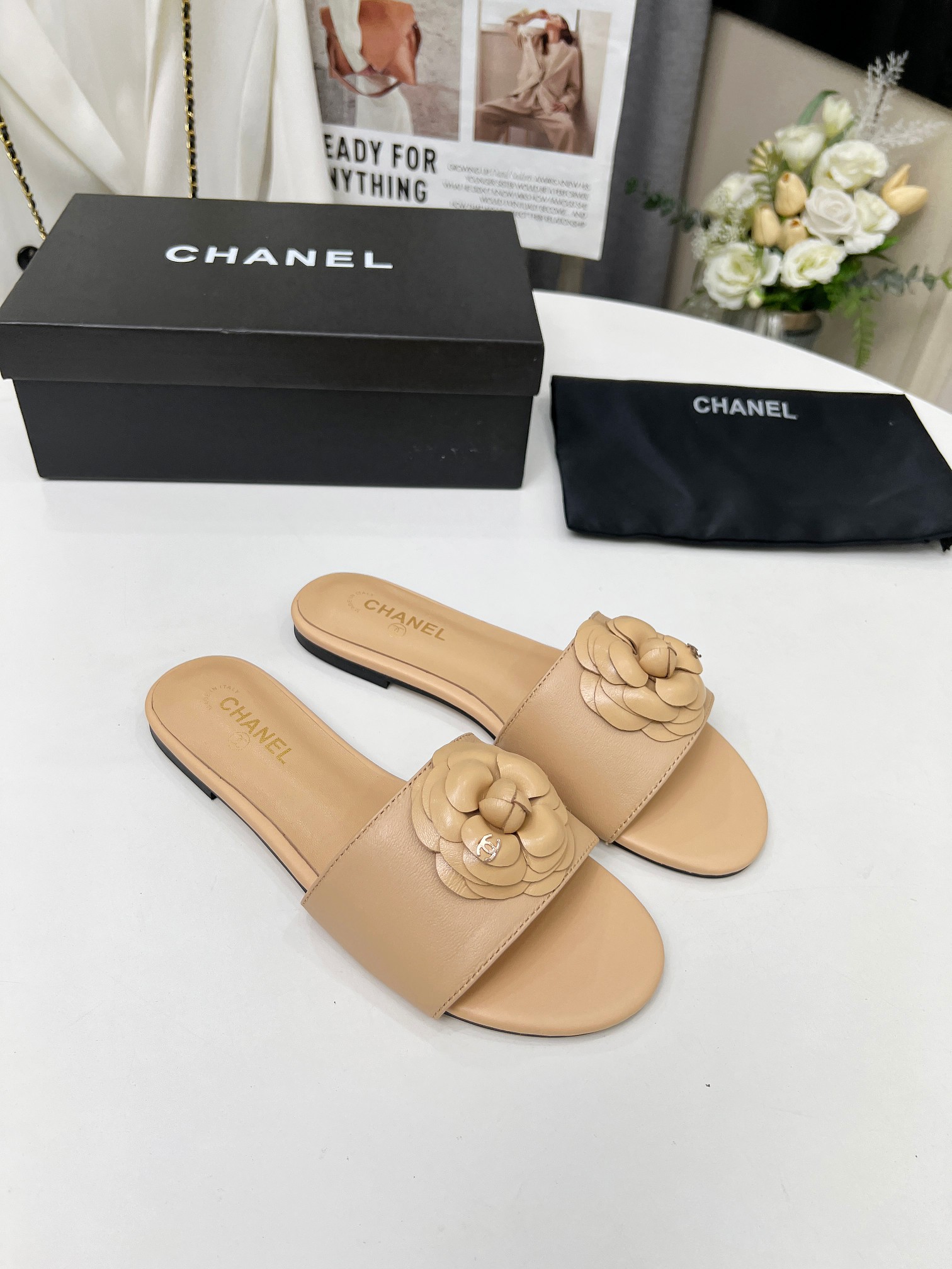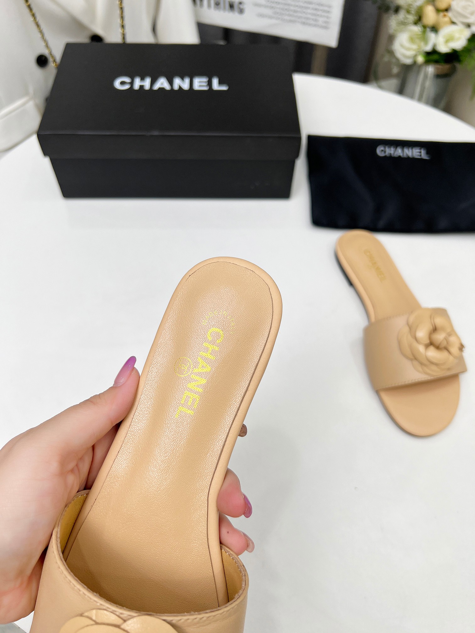 Factory price ???? Women shoes factory chanel Chanel 2024 new slippers ???? Official website counter, fabric sheepskin, lining sheepskin, foot pads goatskin, 3 colors to choose, 35-42 size, Chanel