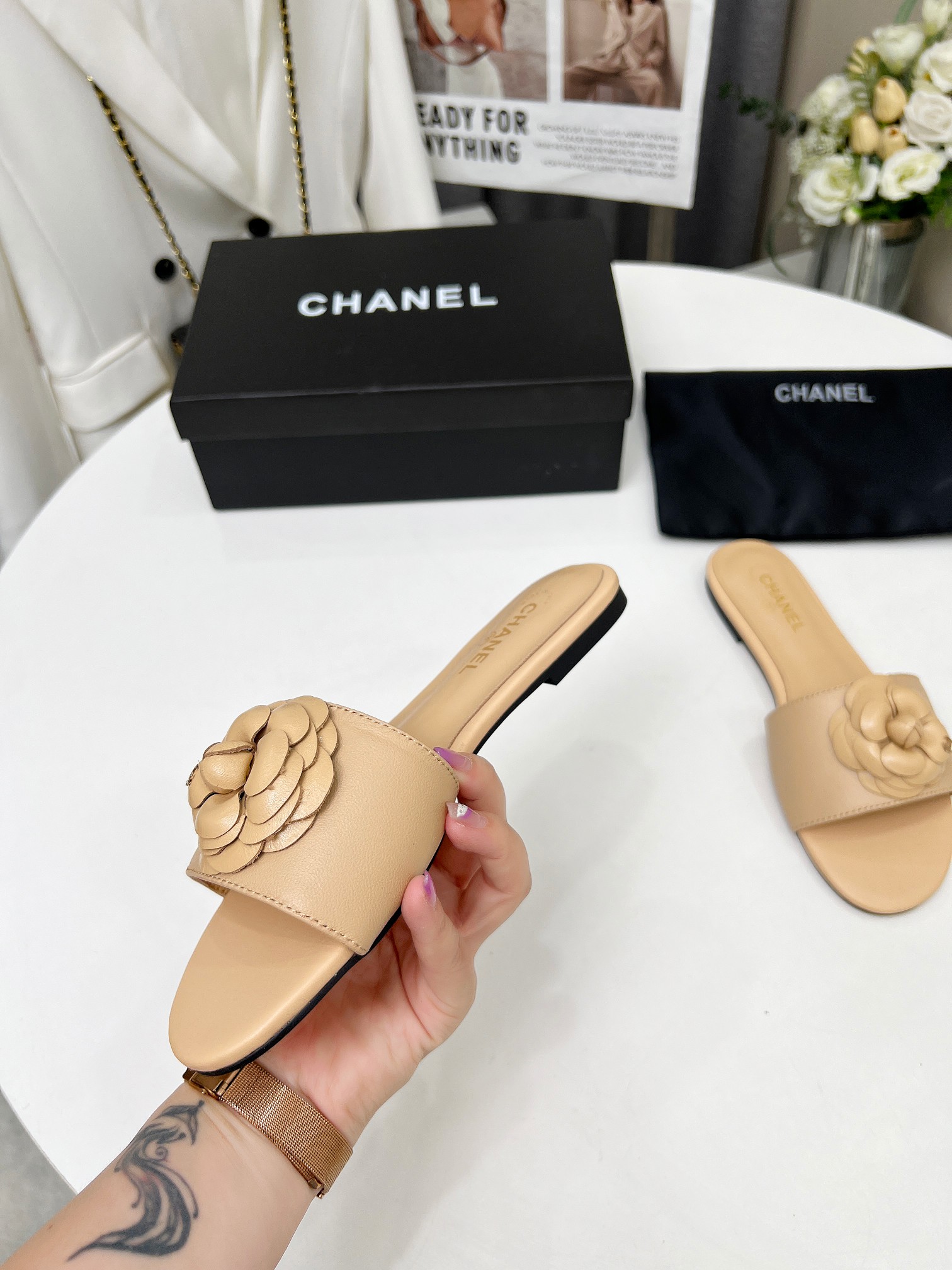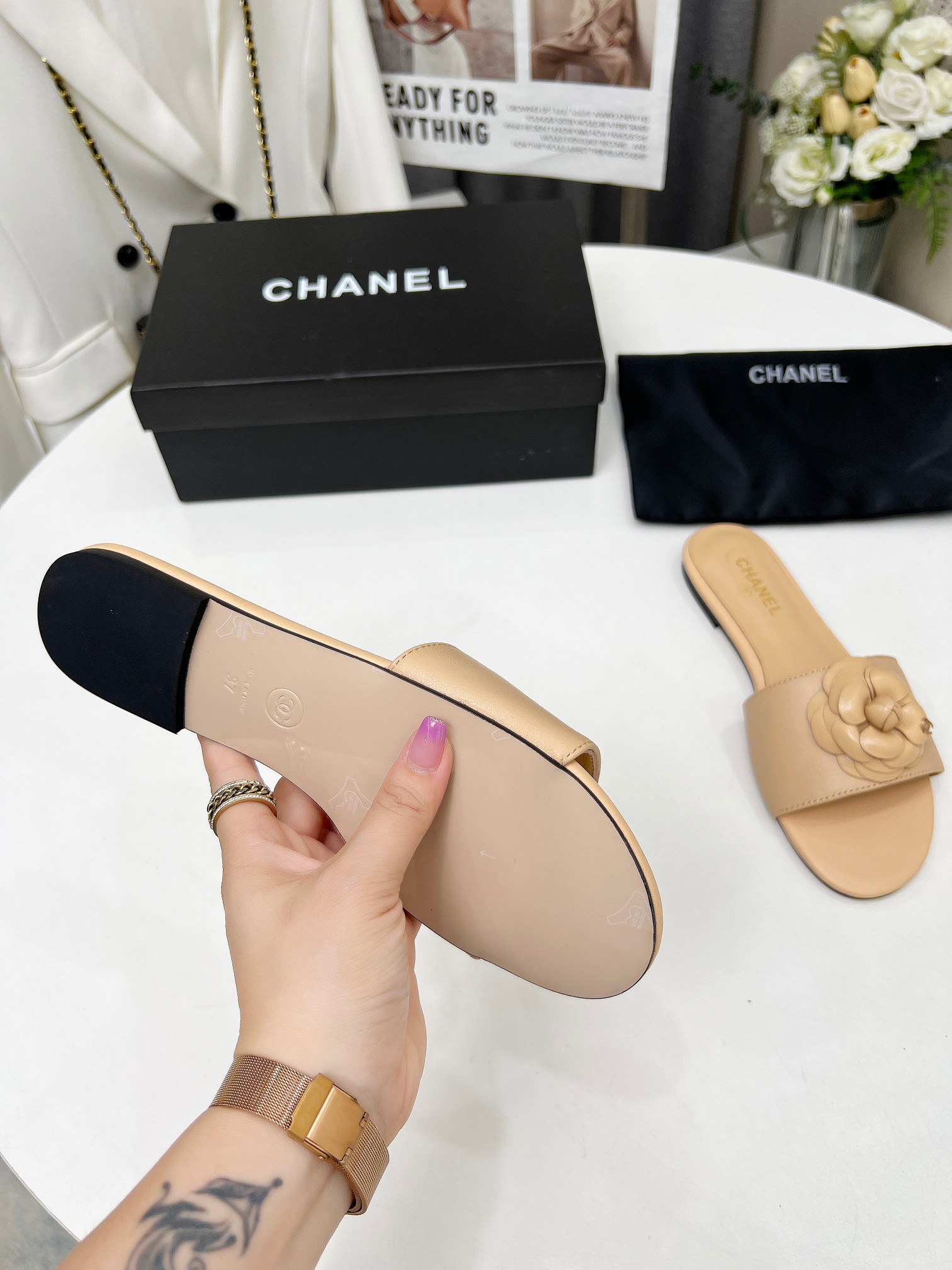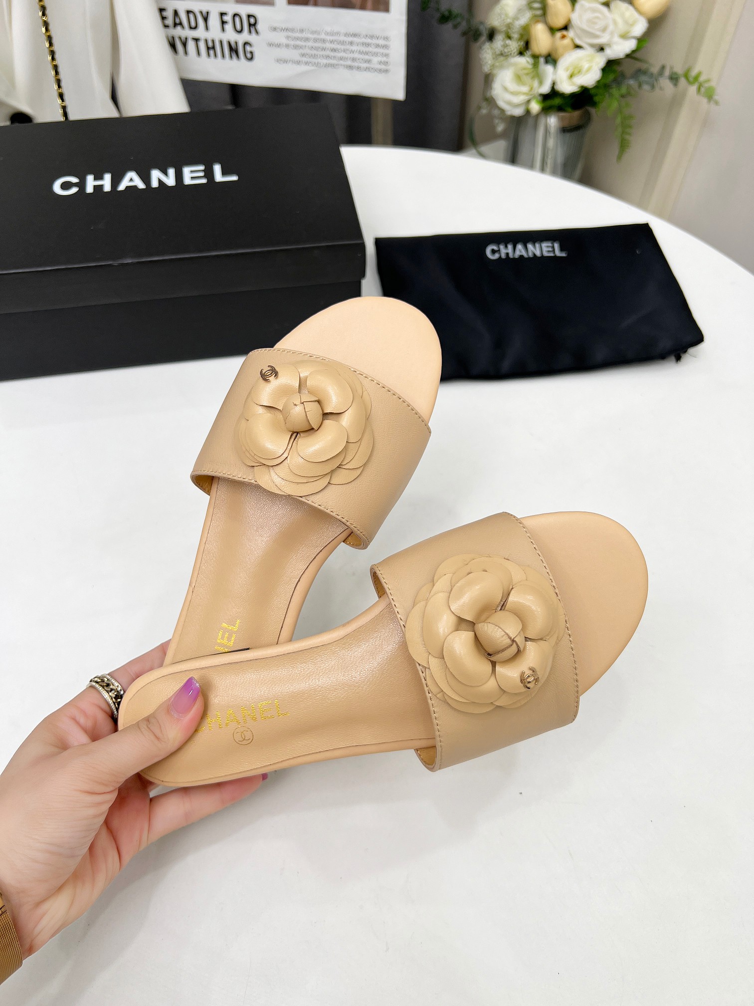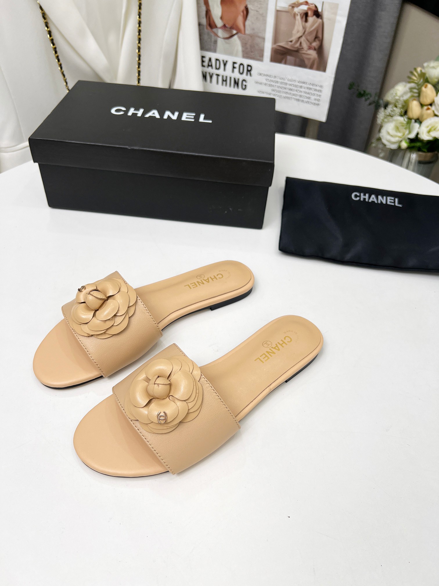 Factory price ???? Women shoes factory chanel Chanel 2024 new slippers ???? Official website counter, fabric sheepskin, lining sheepskin, foot pads goatskin, 3 colors to choose, 35-42 size, Chanel