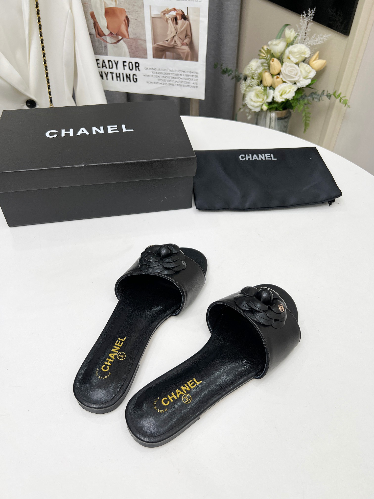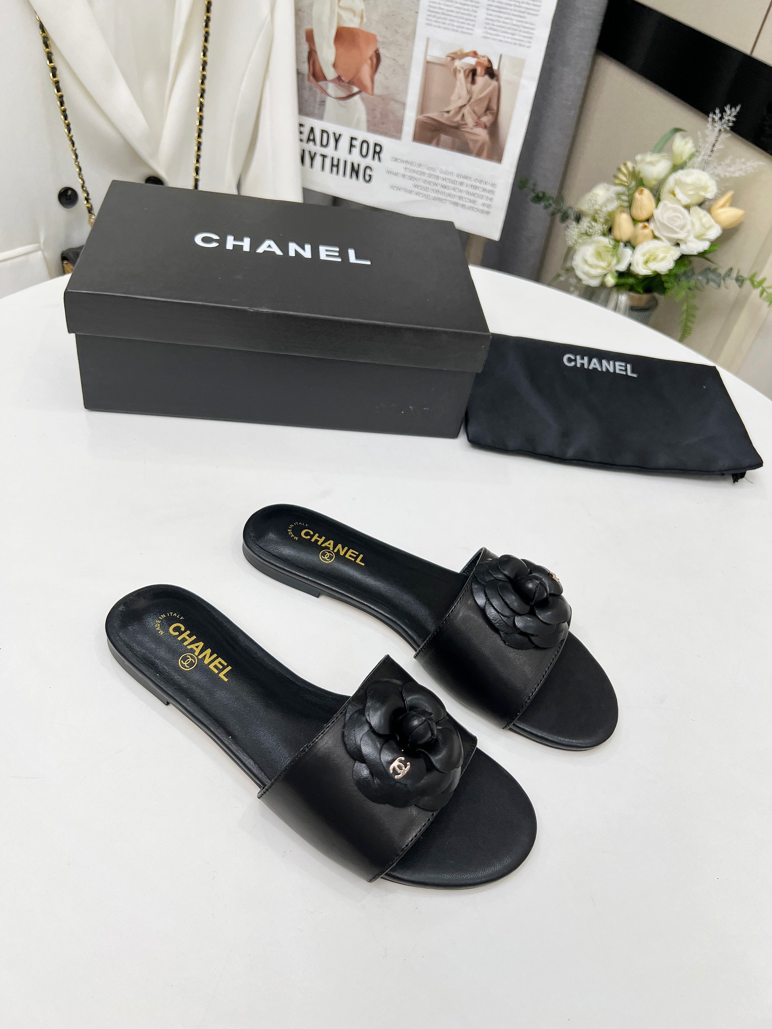 Factory price ???? Women shoes factory chanel Chanel 2024 new slippers ???? Official website counter, fabric sheepskin, lining sheepskin, foot pads goatskin, 3 colors to choose, 35-42 size, Chanel