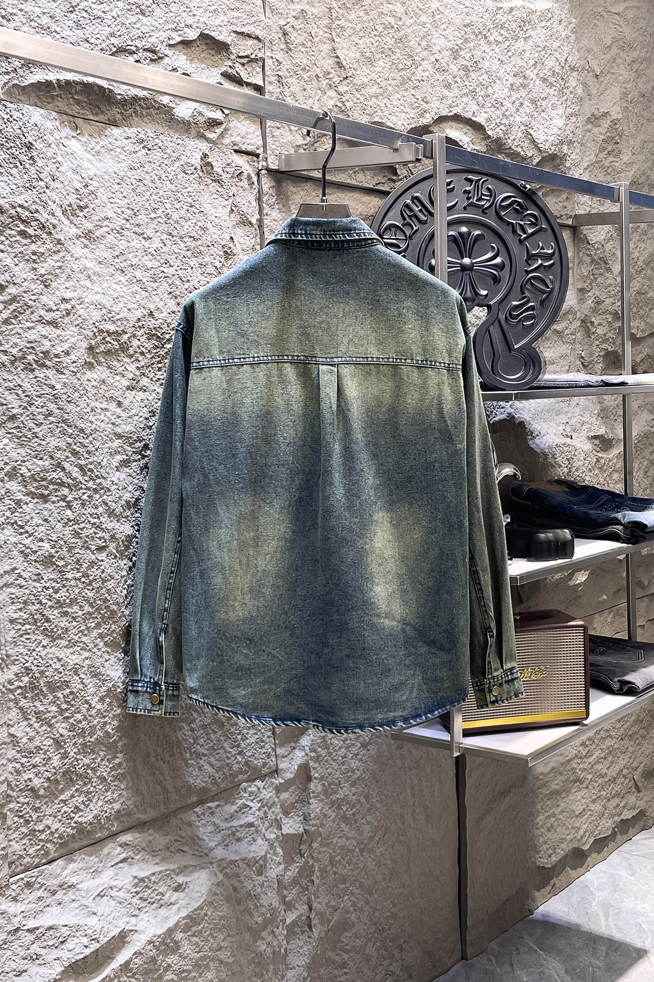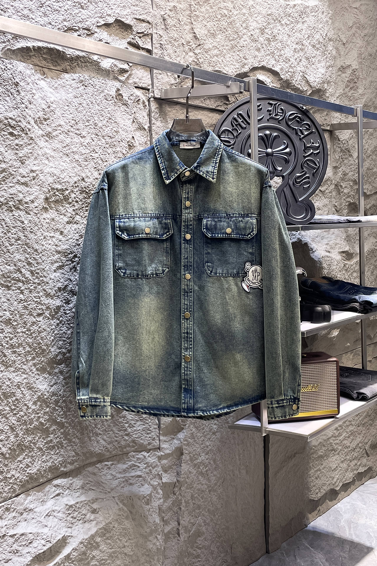 MONCLER long-sleeved shirt denim jacket is made of imported denim fabric, featuring logo jacquard and heavy washing. It is a blouses jacket with metal buttons as embellishment. It is crisp and stylish, with a unique Angle that reinterprets fashion and is a versatile choice! Size: M-3XL