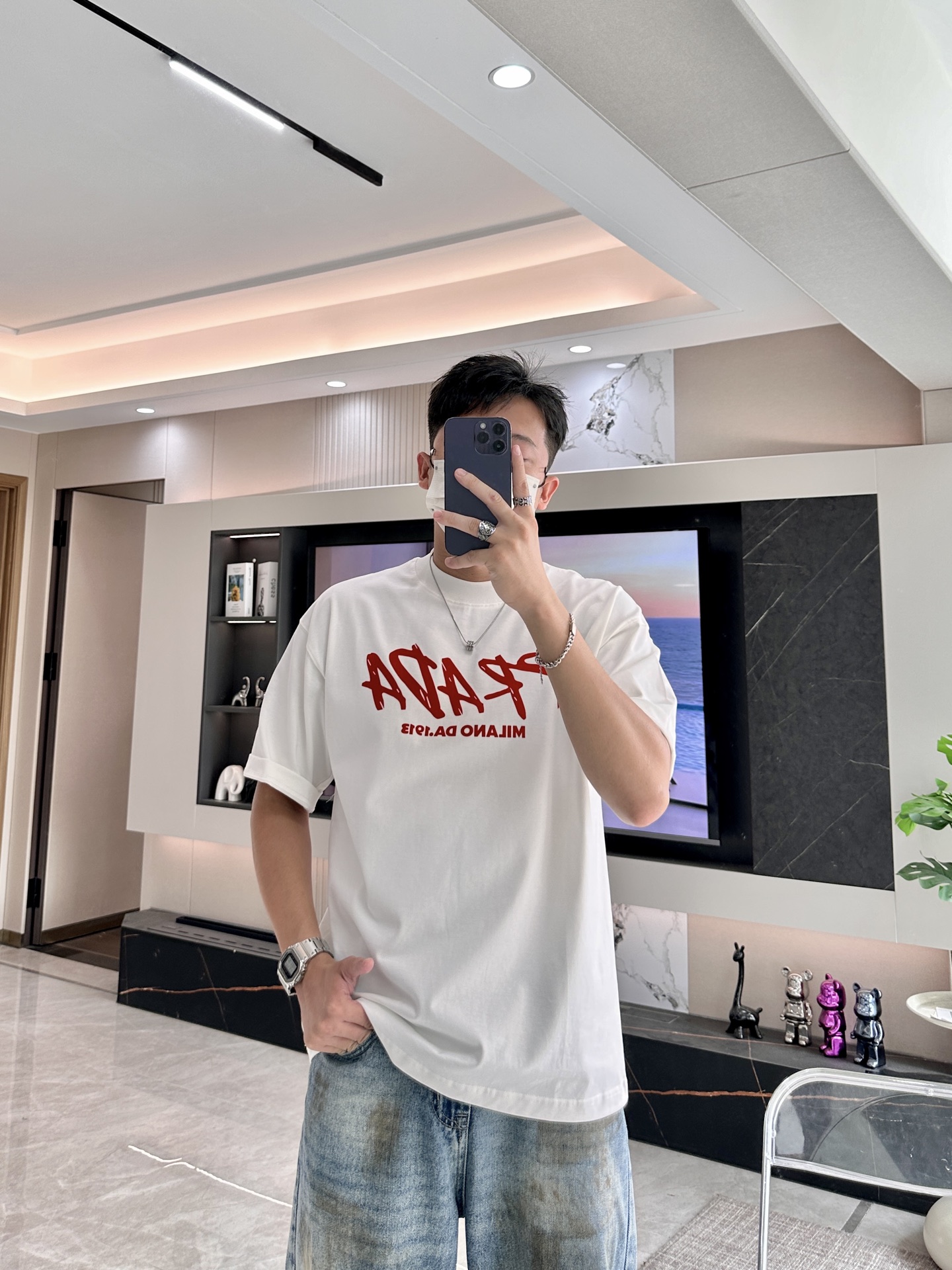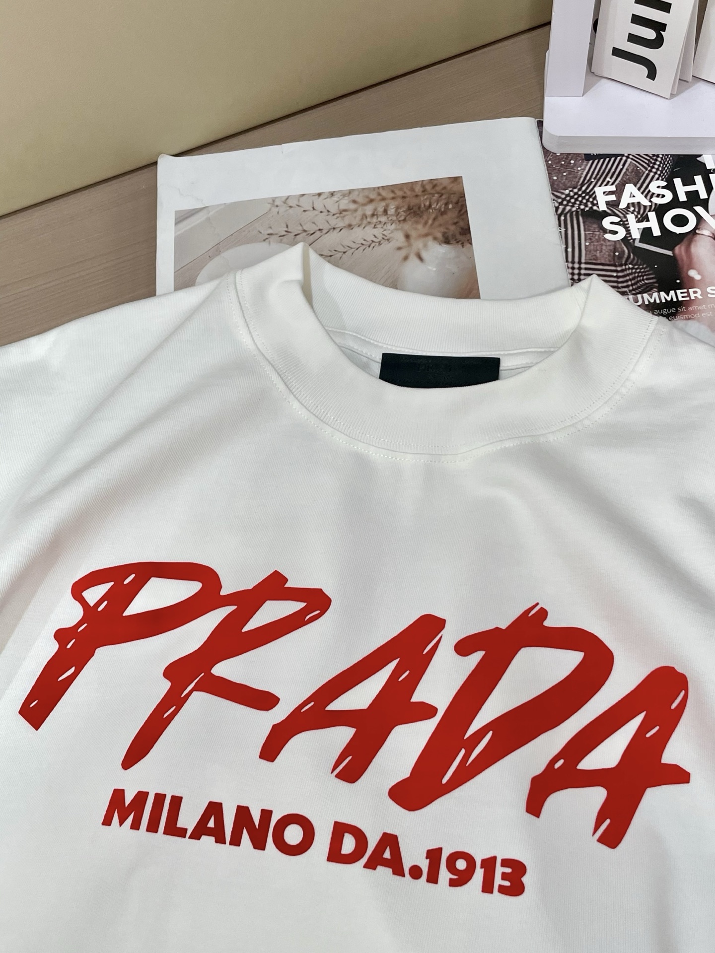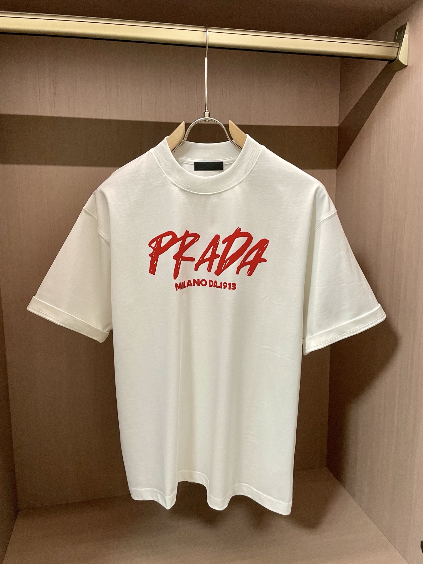 Size S-XXXL (two sizes larger) It can wear up to 250 pounds ? ? Who knows! Prada has taken "rebellious aesthetics" to the extreme ?? Once you put on this graffiti Logo T-shirt, it immediately bursts through the boundary between streetwear and haute couture! ?? design crazy: ? Graffiti Logo: The red handwritten font breaks Prada's "aloofness", rebellious yet with a touch of artistic sense, as if it had sneaked through the designer's hand-drawn draft! ? ** heritage Easter egg ** : "MILANO DA 1913" conceals a century of heritage, the collision of retro and street style, the sense of luxury is directly maximized! ? Fabric king: white fabric drapes and is crisp, elegant and not picky about the wearer, sweat stains? It doesn't exist! ?? 3 kinds of fryer combinations: "Street Cool Game" Pair with distressed jeans and dad shoes