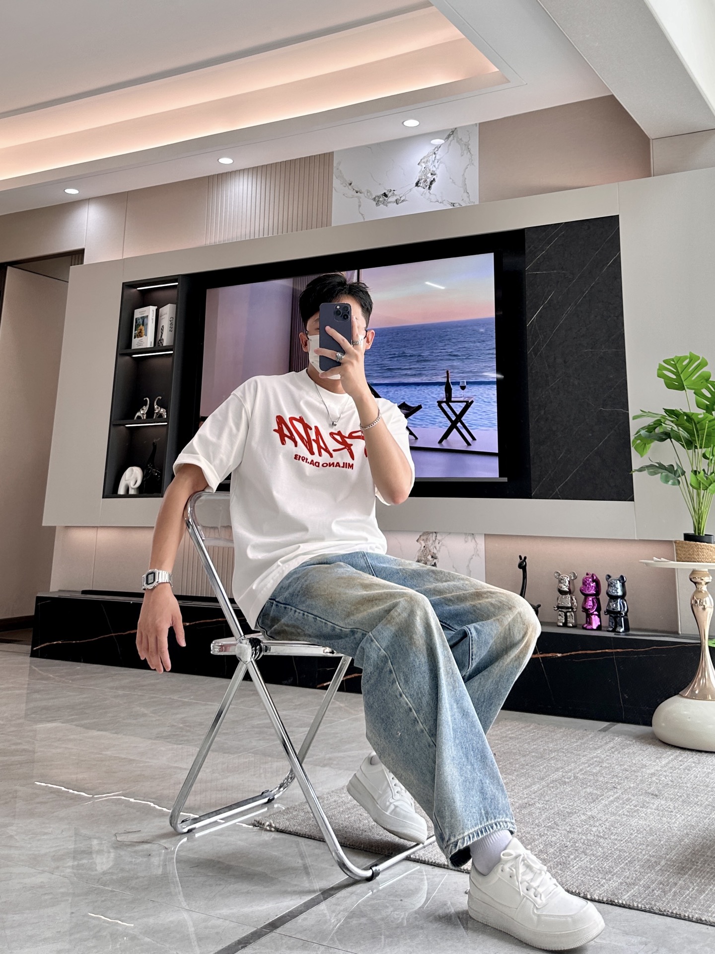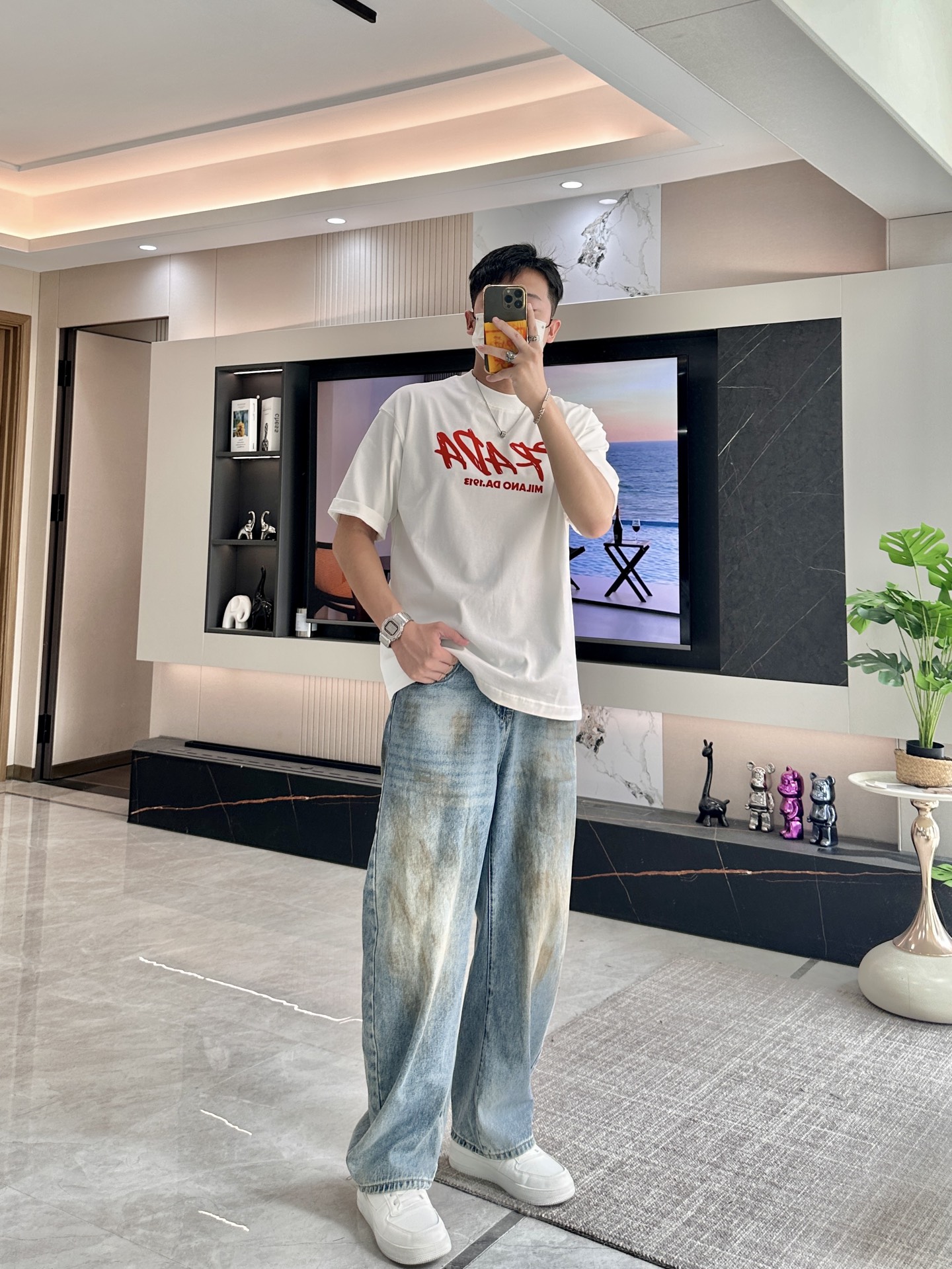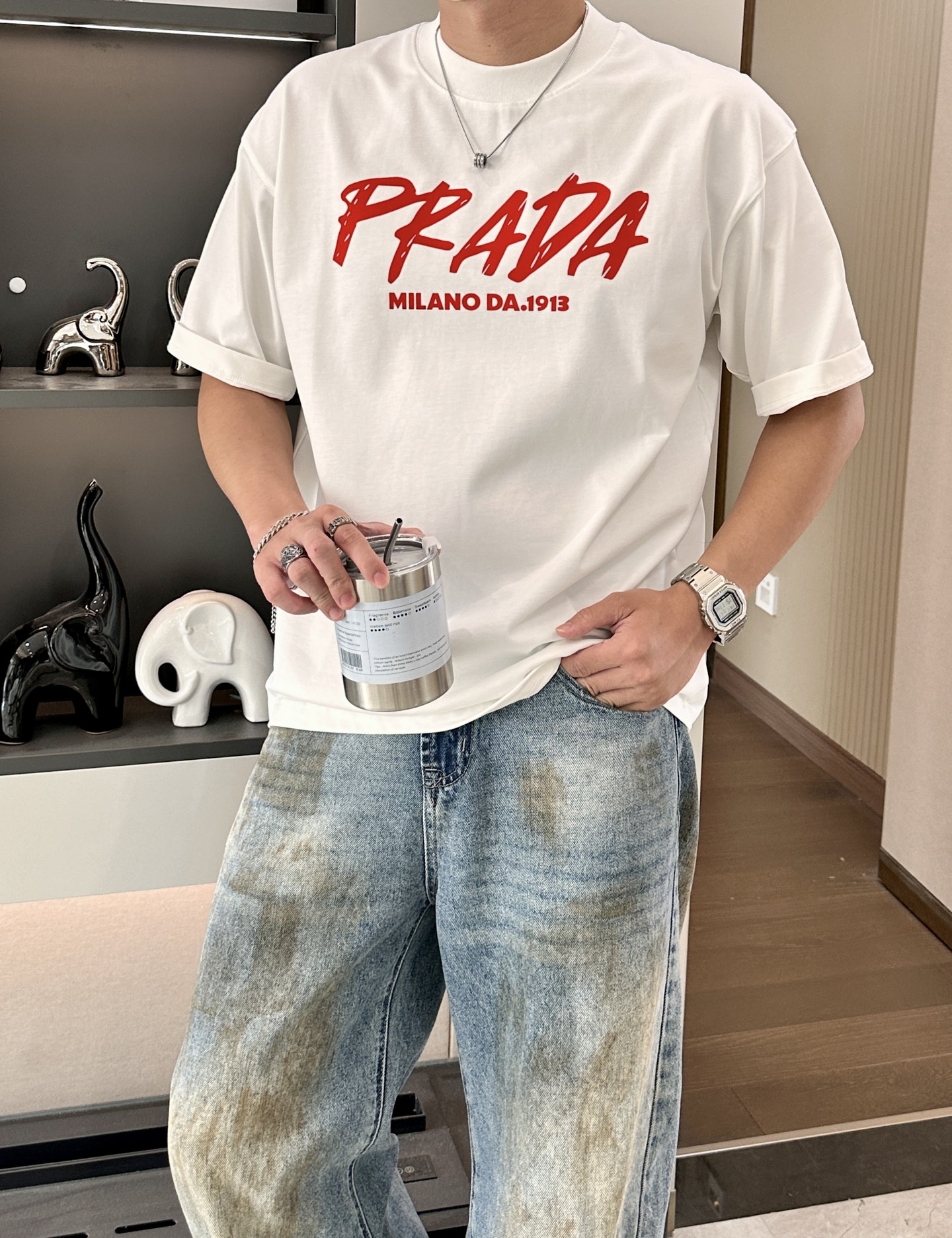 Size S-XXXL (two sizes larger) It can wear up to 250 pounds ? ? Who knows! Prada has taken "rebellious aesthetics" to the extreme ?? Once you put on this graffiti Logo T-shirt, it immediately bursts through the boundary between streetwear and haute couture! ?? design crazy: ? Graffiti Logo: The red handwritten font breaks Prada's "aloofness", rebellious yet with a touch of artistic sense, as if it had sneaked through the designer's hand-drawn draft! ? ** heritage Easter egg ** : "MILANO DA 1913" conceals a century of heritage, the collision of retro and street style, the sense of luxury is directly maximized! ? Fabric king: white fabric drapes and is crisp, elegant and not picky about the wearer, sweat stains? It doesn't exist! ?? 3 kinds of fryer combinations: "Street Cool Game" Pair with distressed jeans and dad shoes