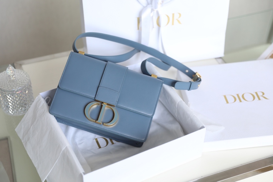 Momtaigne Enamel Glossy cowhide Blue Sky Color DR-002 The 30Montaigne product line is inspired by 30 Avenue Montaigne, featuring classic styles that showcase the iconic style of the Dior brand. This handbag is meticulously crafted from sky blue glossy cowhide, creating an elegant and classic look. The flip cover is decorated with enamel "CD" clasp of the same tone, inspired by the seal of Christian Dior perfume bottles. The back is adorned with elegant details such as the "30 Montaigne" embossed logo, highlighting the fashionable design. Flip cover opening and closing design "CD" ring The "30 Montaigne" embossed logo on the back Adjustable leather shoulder straps, paired with military-style "Christian Dior" clasp Internal zipper pocket and phone case Rear pocket It can be carried by hand, on the shoulder or crossbody Dimensions: 24 x 17 x 8 cm