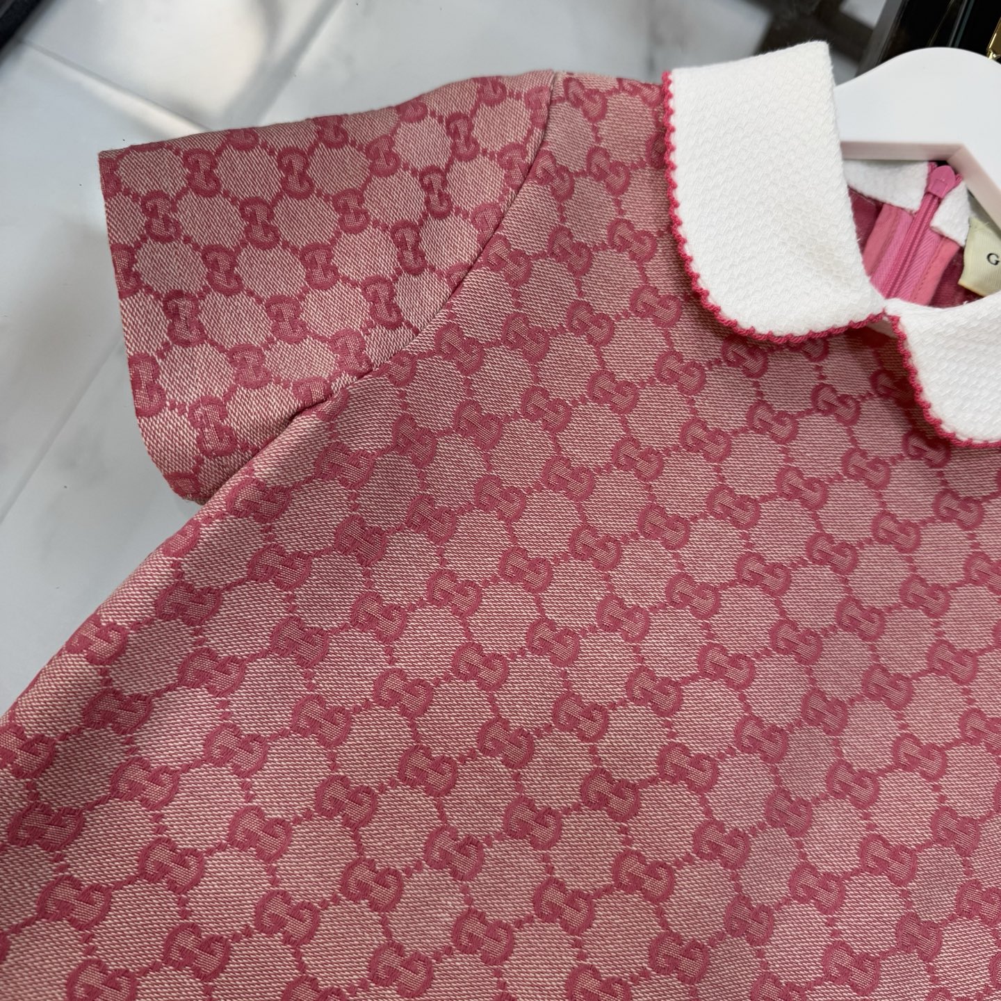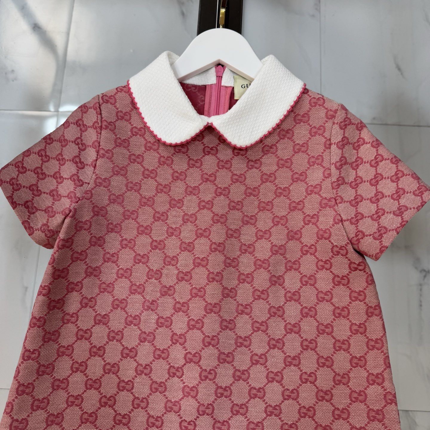 Gucci, high-end children's clothing, girls' dress, special custom carre color, every yarn is custom-woven and dyed, 80 cotton and 20 polyester fiber: super soft high-density jacquard fabric, ready-to-wear enzymatic water washing, making the fabric environmentally friendly and clean, and also making the fabric feel softer and more comfortable, friendly to the skin, looking beautiful when worn. Size: 110/120/130/140/150/160cm