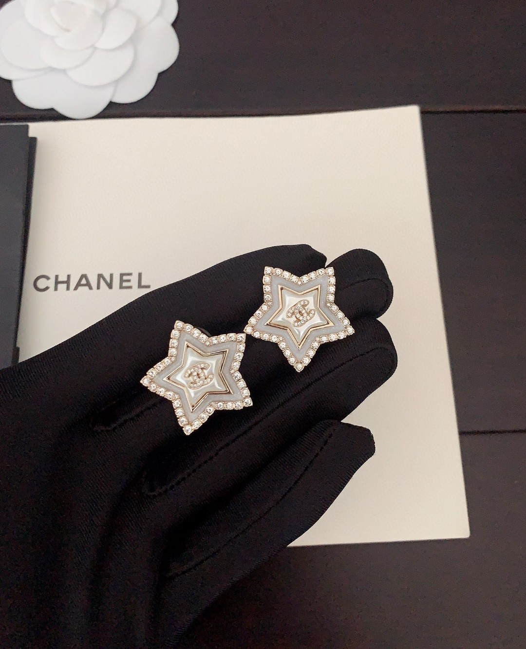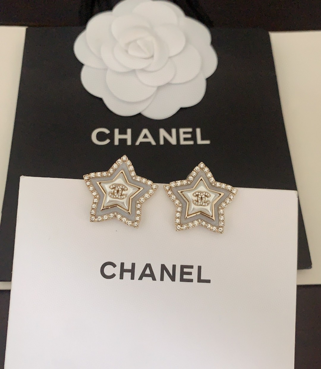 ch*nel latest ???? white pearl five-pointed star stud Earrings