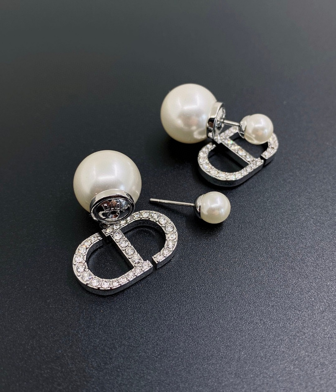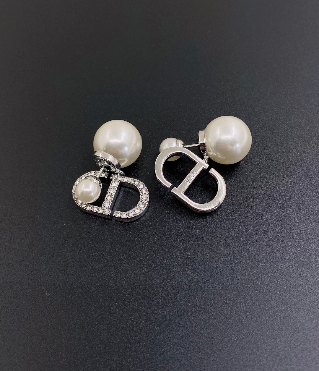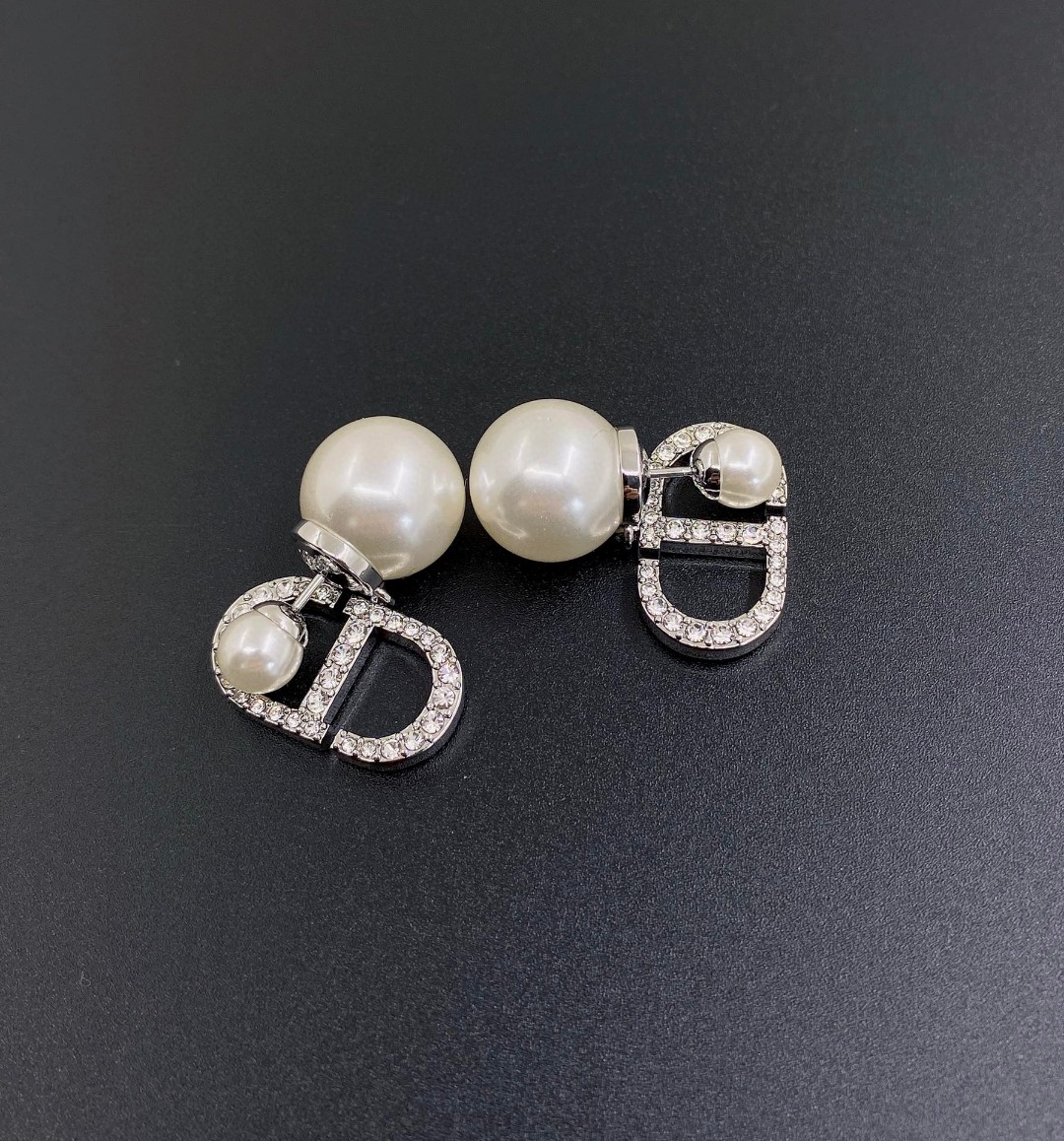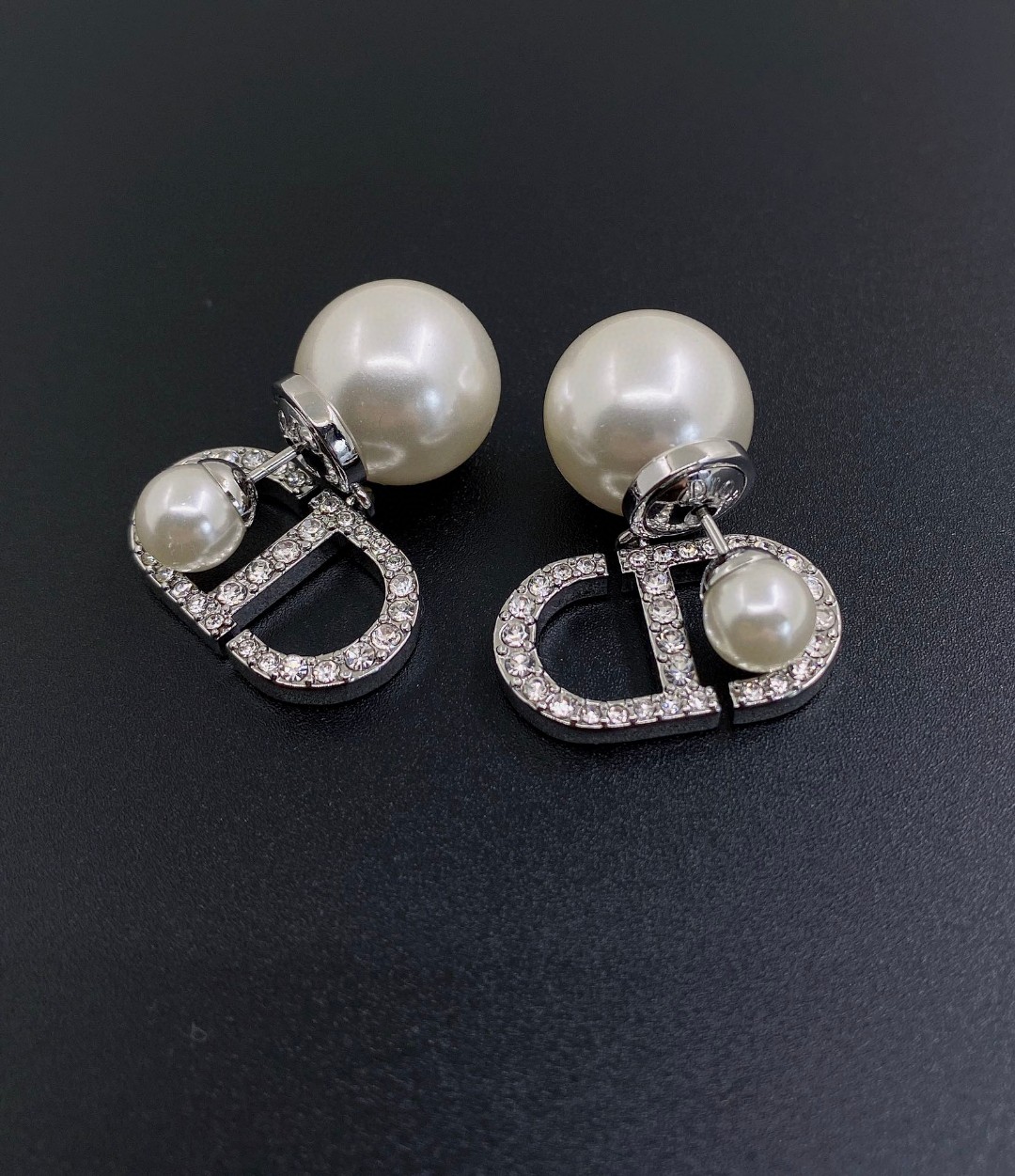d*or latest ???? large and small pearl silver full diamond cd stud Earrings] consistent ZP brass Earrings/Ear studs