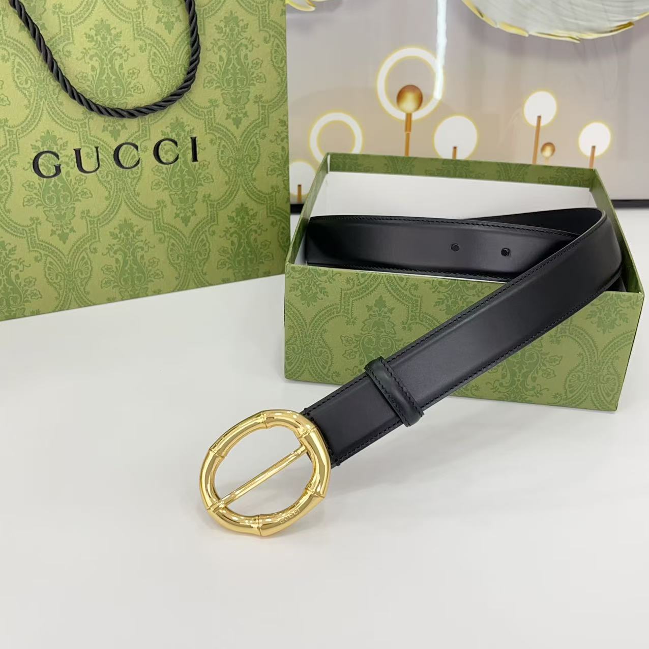 Gucci women's new bamboo buckle with double-sided cowhide and copper buckle, 3.0 cm wide Yards: 75 80 85 90 95 100 105 euros