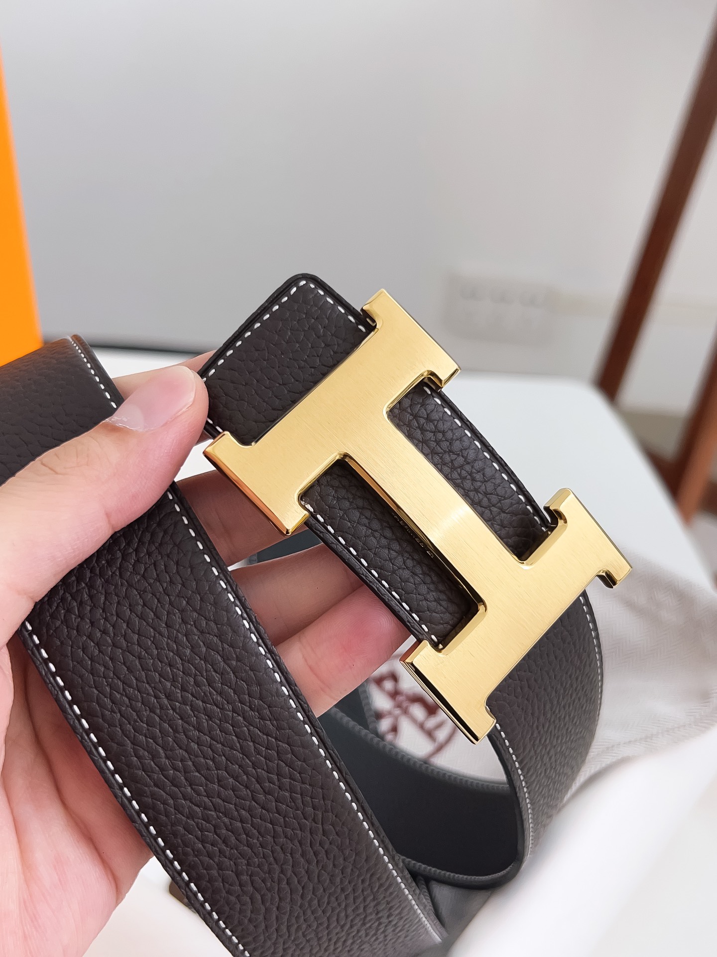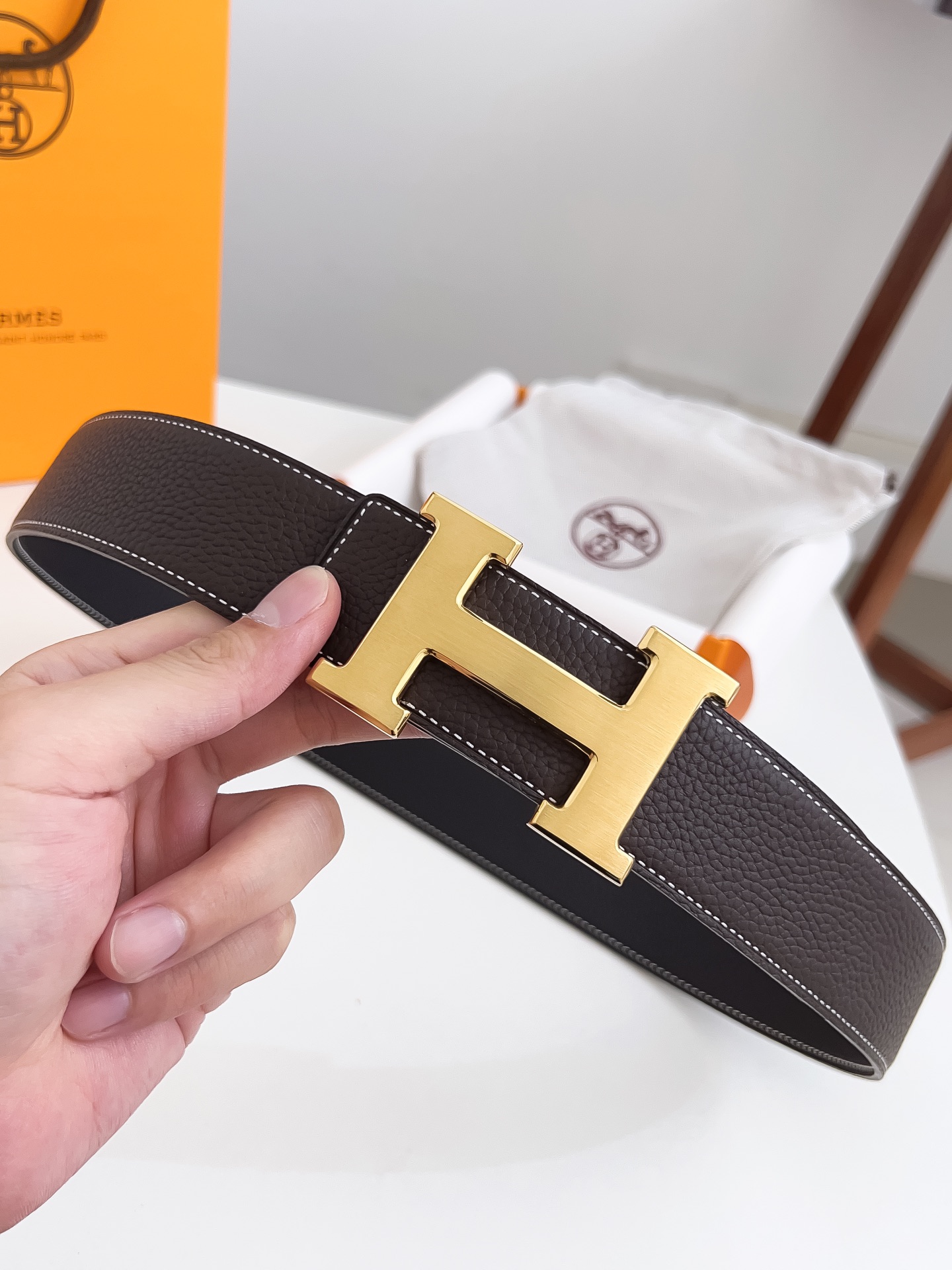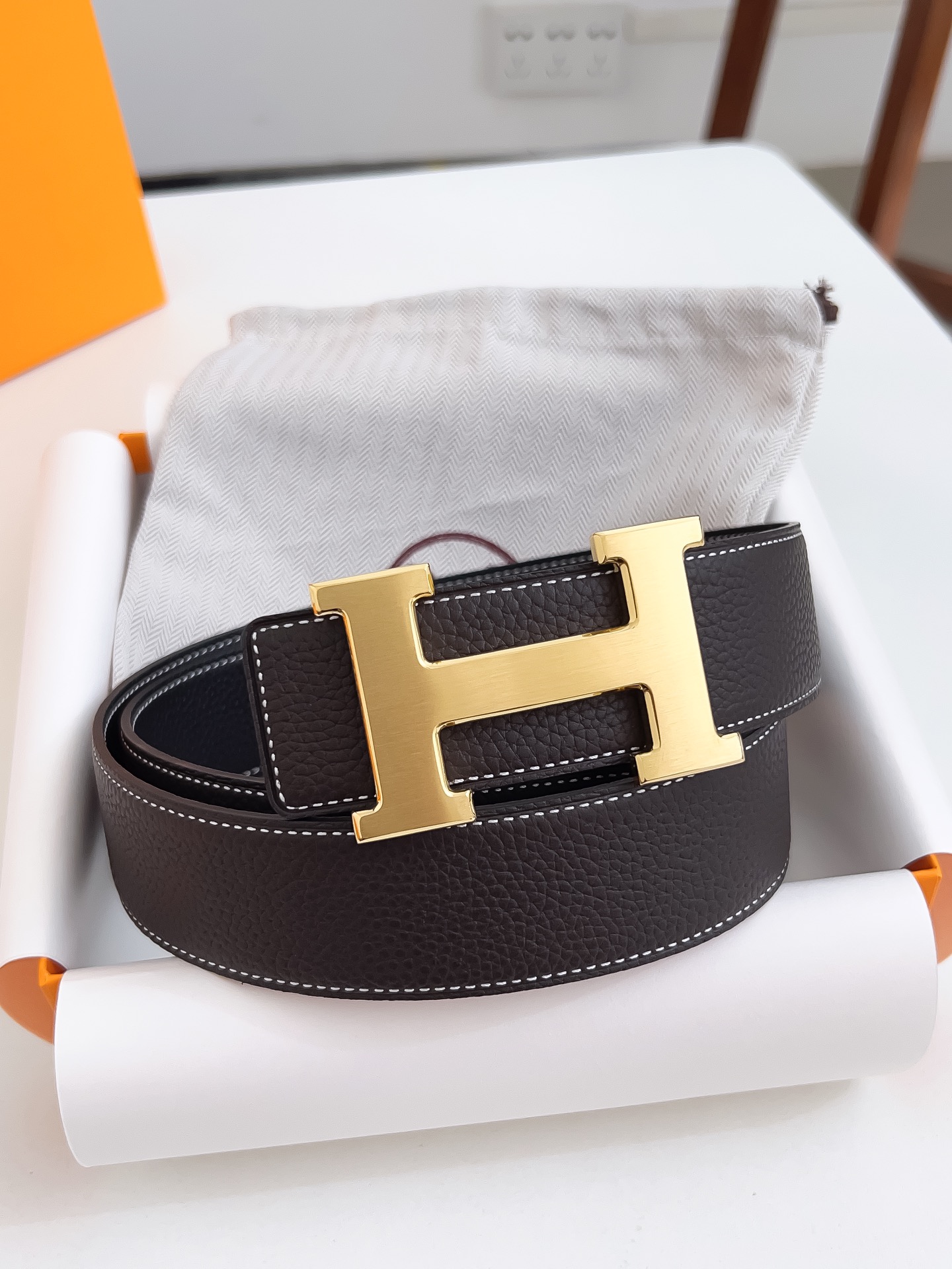Original Hermes item, width 3.8cm Sg Double-sided top layer togo lychee grain, soft leather material. It can be used on both sides, with fine workmanship and excellent quality. Buckle: Stainless steel buckle (gold and silver)