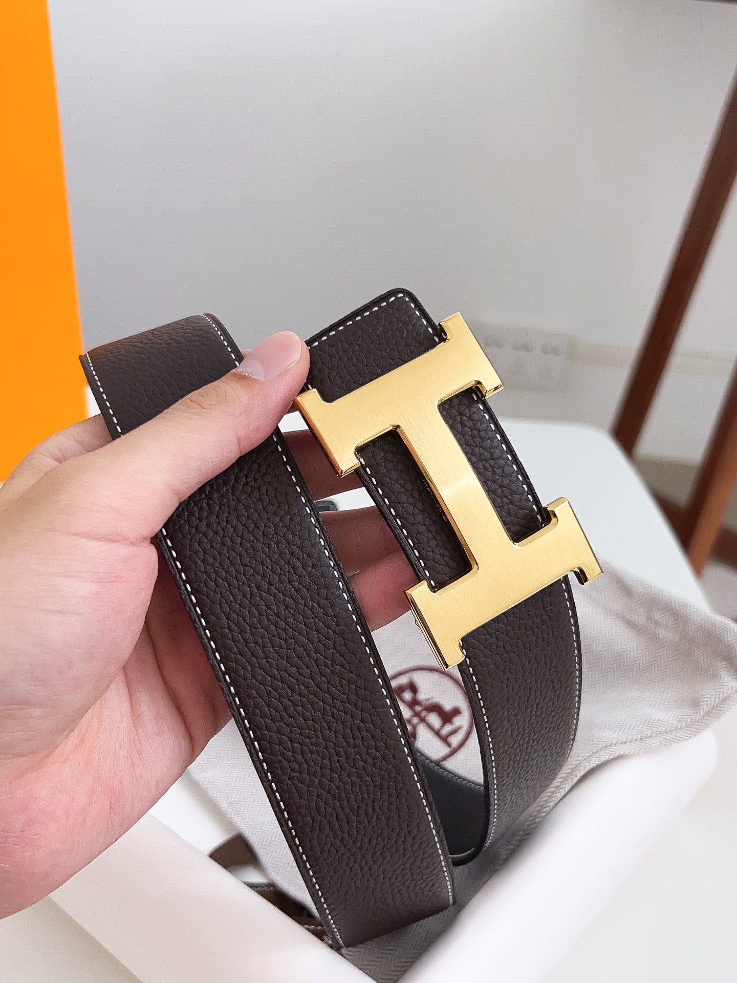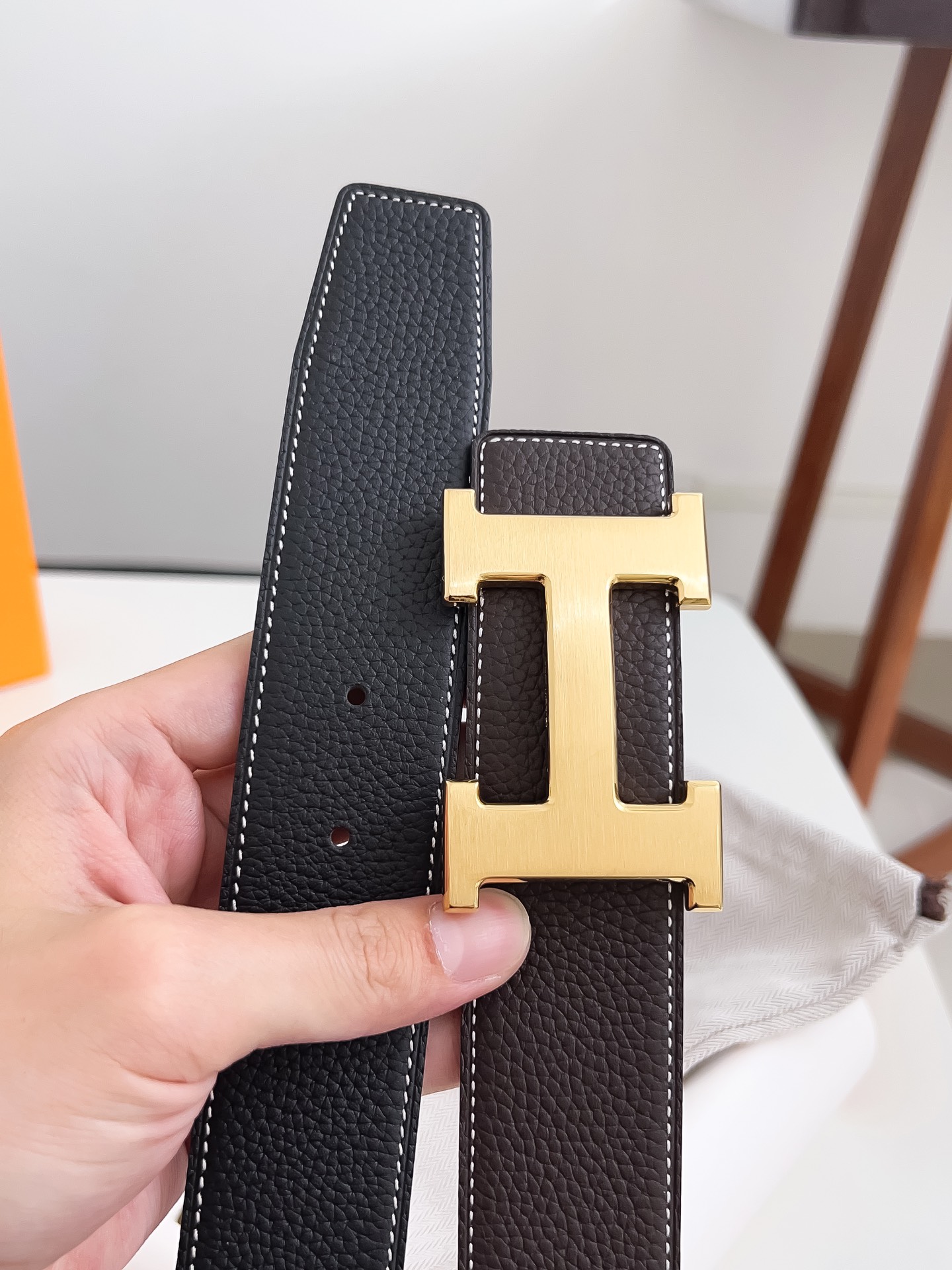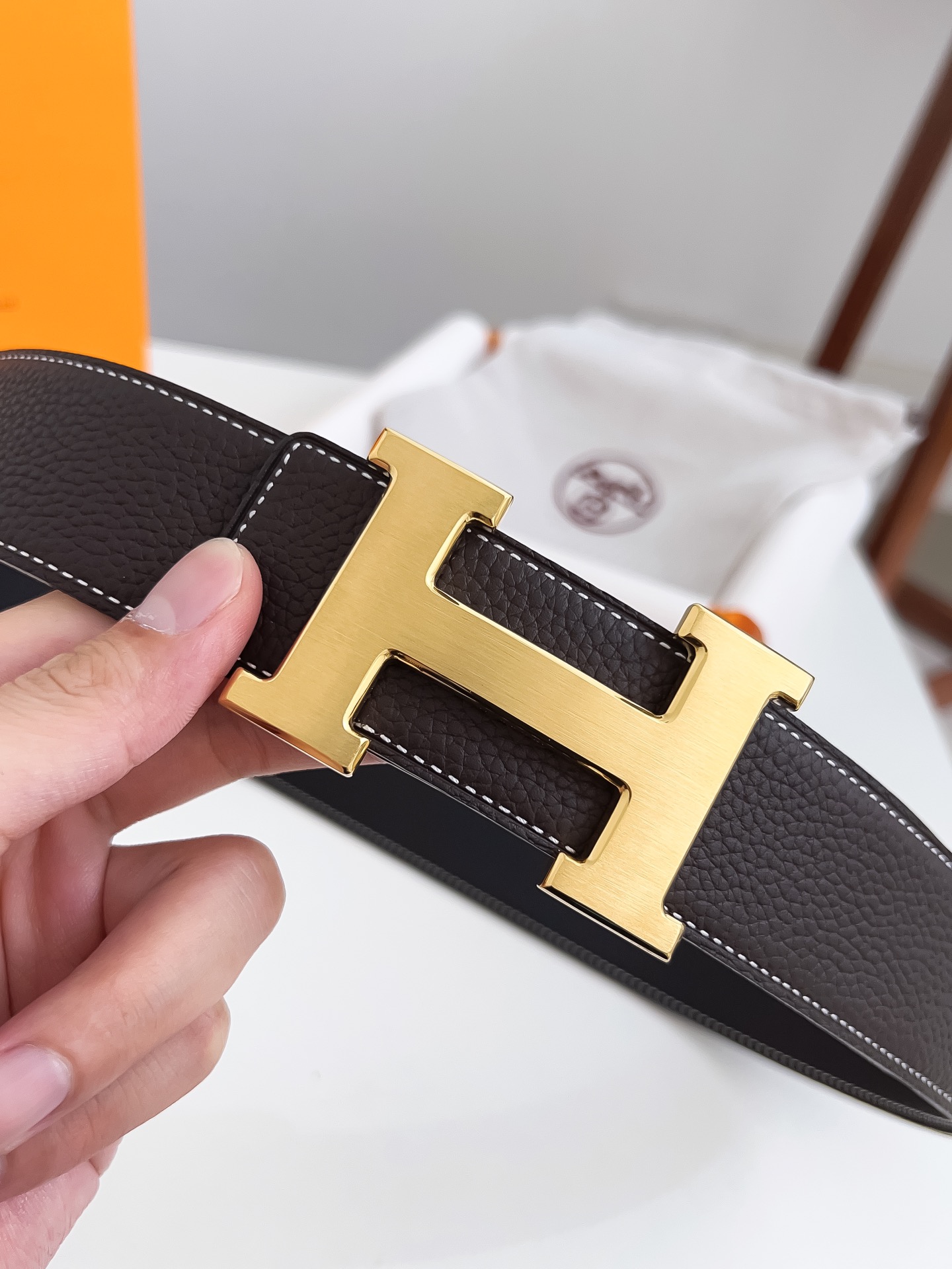 Original Hermes item, width 3.8cm Sg Double-sided top layer togo lychee grain, soft leather material. It can be used on both sides, with fine workmanship and excellent quality. Buckle: Stainless steel buckle (gold and silver)