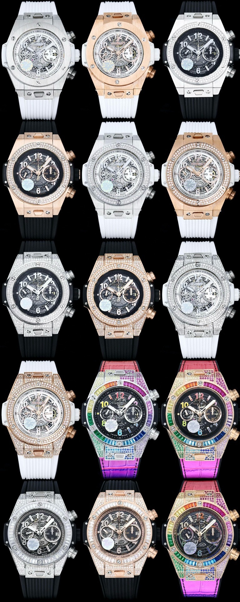 ZF's latest new dial has been shipped to HUBLOT (Hengbao) - fearless and aggressive, abbreviated as "HUB" or "Hengbao" BigBang BigBang Element Material Chronograph v2 Edition ? The case is made of imported 316 stainless steel material, with an explosive design sense. ? It is equipped with the 7750 "HUB1242" automatic movement for chronograph instant start and one-button flyback, perfectly restoring the original functions. The secondary weight increase and automatic clasp adjustment achieve more stable timekeeping and an extremely low return rate. ? The strap is made of natural oak rubber Super waterproof, soft and comfortable. The watch crystal is made of natural sapphire glass, which is wear-resistant, scratch-resistant, transparent and flawless. As a young brand, Hublot, with its flamboyant personality and unique design, has added a touch of youthful vitality under high-end manufacturing and will experience the freedom of youth together with everyone!!