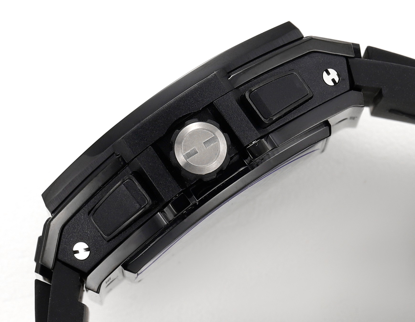 HUBLOT The Soul BIG BANG series. Model 642.NX.0170.RX Inspired by racing cars, a brand-new limited edition Spirit of Big Bang wristwatch is launched! The wristwatch combines all the iconic elements of the Spirit of Big Bang series with a brand-new barrel-shaped case. The case is made of titanium and resin materials, and a "sandwich" structure is constructed with six H-shaped screws, conveying the concept of "integrated technology". It perfectly replicates the exclusive custom HUB4700 movement, with an original folding clasp and a custom fluororubber strap. The watch is equipped with a "one-click" quick-change strap system. The wearer can easily and quickly change the strap with just a light press!!