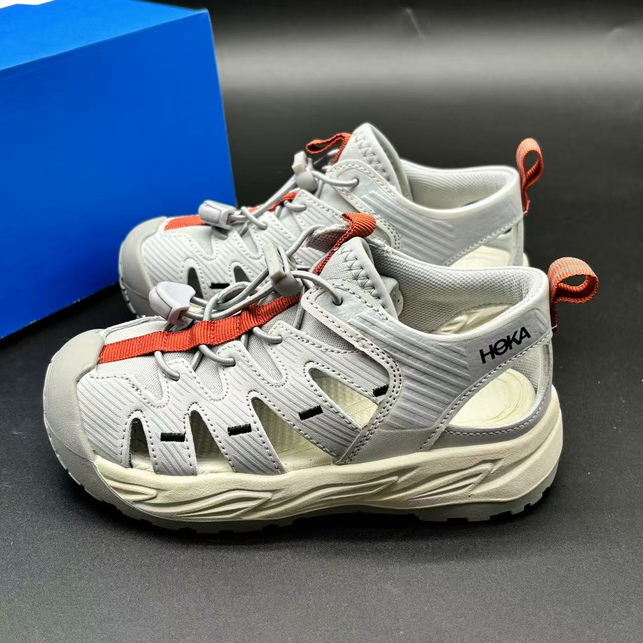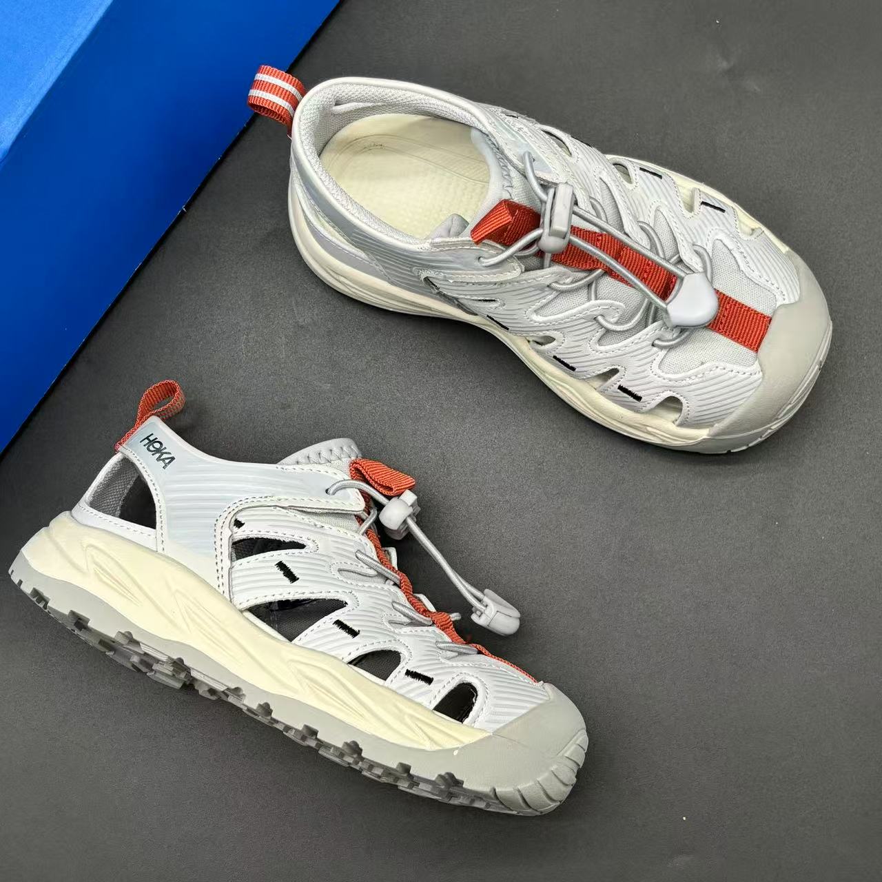 HOKA HOPARA high-end children's shoes, men's and women's shoes, Baotou hollowed-out stream sandals, outdoor sandals, featuring elastic buckle design, hollowed-out upper, anti-slip and wear-resistant sole, comfortable and good-looking to wear, size: 26-37