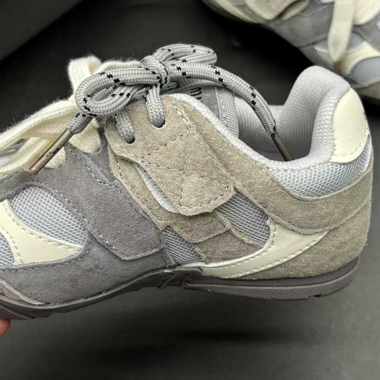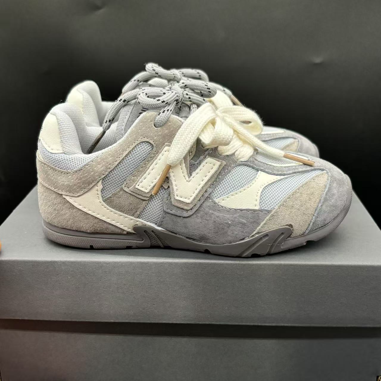 High-end children's shoes, men's and women's shoes, NB miumiu collaboration Pig eight leather mesh Velcro children's shoes, with lacing design, comfortable and good-looking to wear, size: 24-37