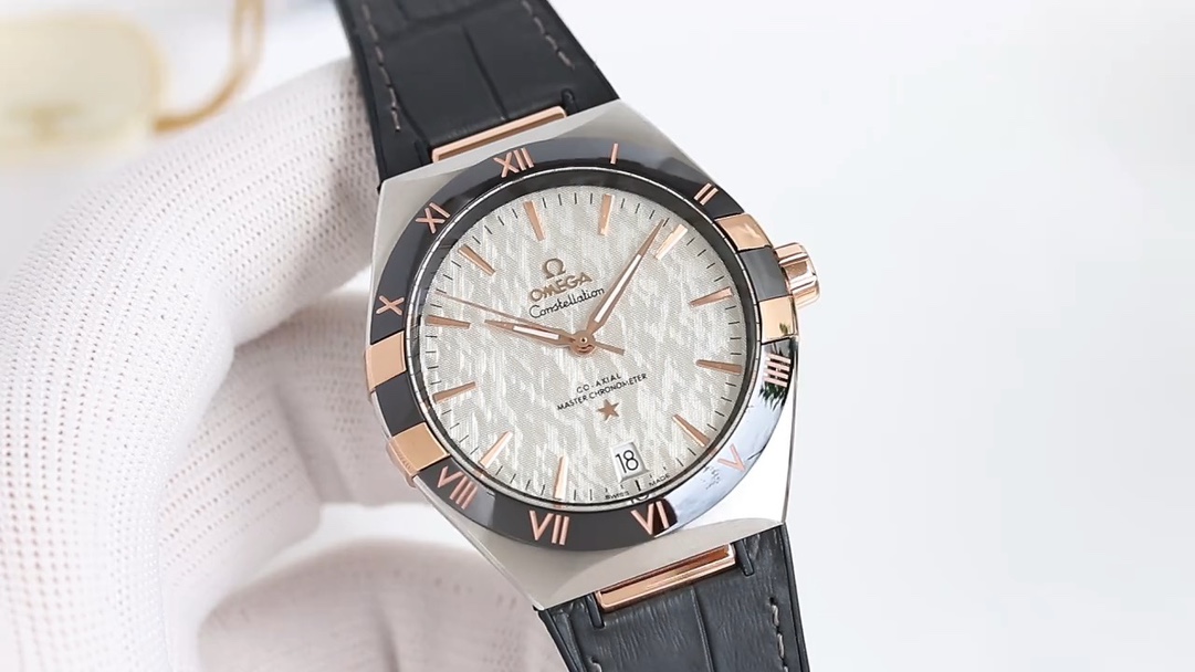 New upgraded V2 version of OMEGA ??O43 Constellation series 41mm Starlight Eternal Constellation watch fifth generation Constellation series! Brand new original 41MM wristwatch! 1 ? The bezel has been upgraded, the original polished imported ceramic bezel and matte gold bezel, and the scale is electroplated with white gold, which does not fade over time; 2 ? Half-moon cut, adjusted claw details are more delicate, the case and claws are polished, ground and chamfered to blend more naturally, making the watch more exquisite; 3 ? The crown is engraved with LOGO, polished and brushed in the same way as the original; ?? 4 ? The color of the dial has been adjusted by engineers, making the meteorite look more upscale and the style more youthful and fashionable. At 6 o 'clock, there is a large trapezoidal date window that is pulled down in the same way as the original, distinguishing it from the fake small date window in the market. 5 ? Original mold opening of the hands, filling with luminous effect, polishing and brushing the tips of the hands took half a year to achieve the same slanted effect as the original, the process was so difficult, only to make the customer feel the same as the original; 6 ? Equipped with genuine 1:1 original 8900/8901 black oil coaxial Master Chronometer integrated movement (non-deck), front and back are fitted with wear-resistant sapphire glass for a clear view of the beauty of the dial and movement, and the double T black balance wheel is in sync with the original. 7 ? The movement and clasp on the back of the watch are engraved with the same code as the one on the warranty card and the back cover of the tag, one code for each watch, five codes in one; 8 ? Back glass expanded out, in sync with the ORIGINAL, different from the small glass in the market at a glance fake. ??S1 Exquisite recommended mechanical watch for men
