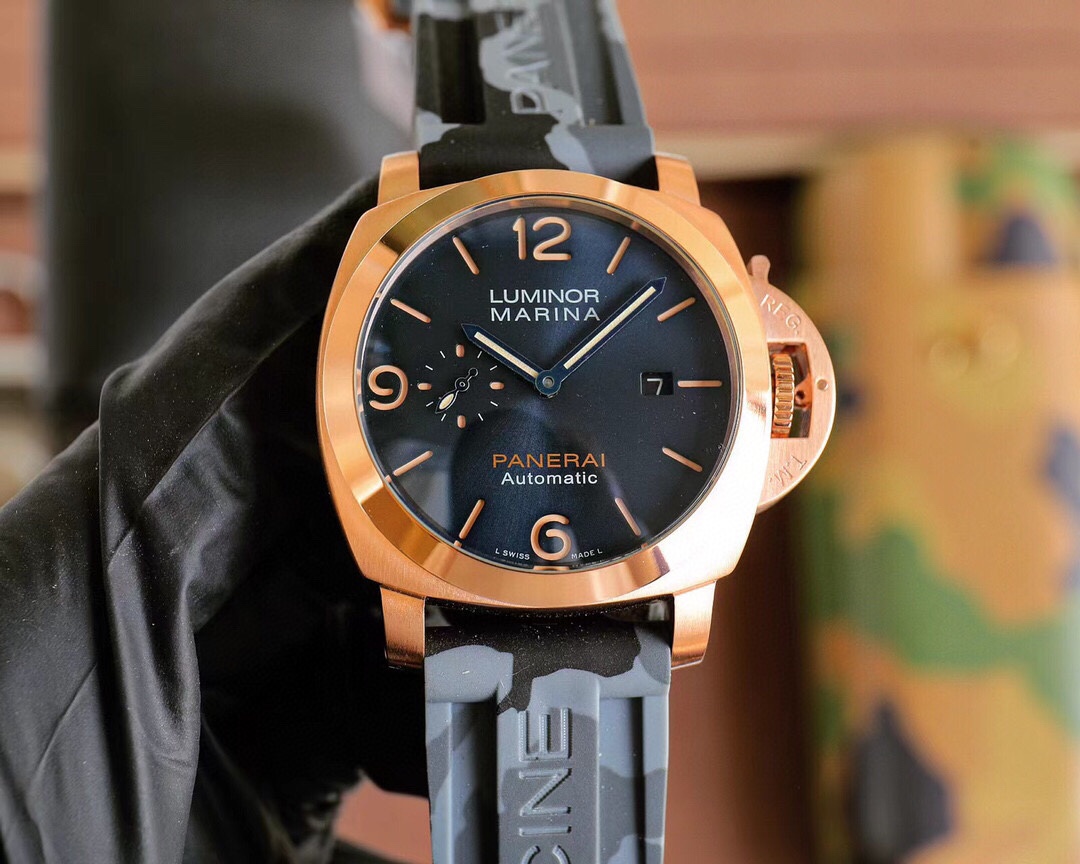 PANERAI arc-shaped coated glass 44mm*16mm camouflage rubber strap with original pin buckle fully automatic mechanical - a watch from a tough guy