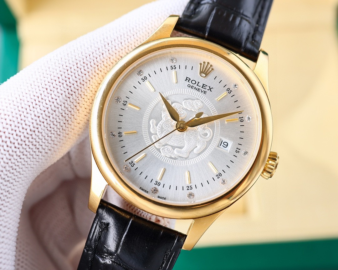 ROLEX Chellini series [ROlex] [Zhaocai Pixiu] upgraded version of men's watch using a unique dials design with the Zhaocai Pixiu 3D sense, the overall effect is more high-end luxury Rolex first Rolex will look forward to one day can have it, wear Rolex will be smooth will develop, you deserve to have, welcome review!! Movement: With new imported movement 8215 (zero repair) Size: 40mm Mirror: Sapphire glass never scratches Material: 316L steel case Power: Store for 48 hours Waterproof depth: 100 meters Italian calf belt!!