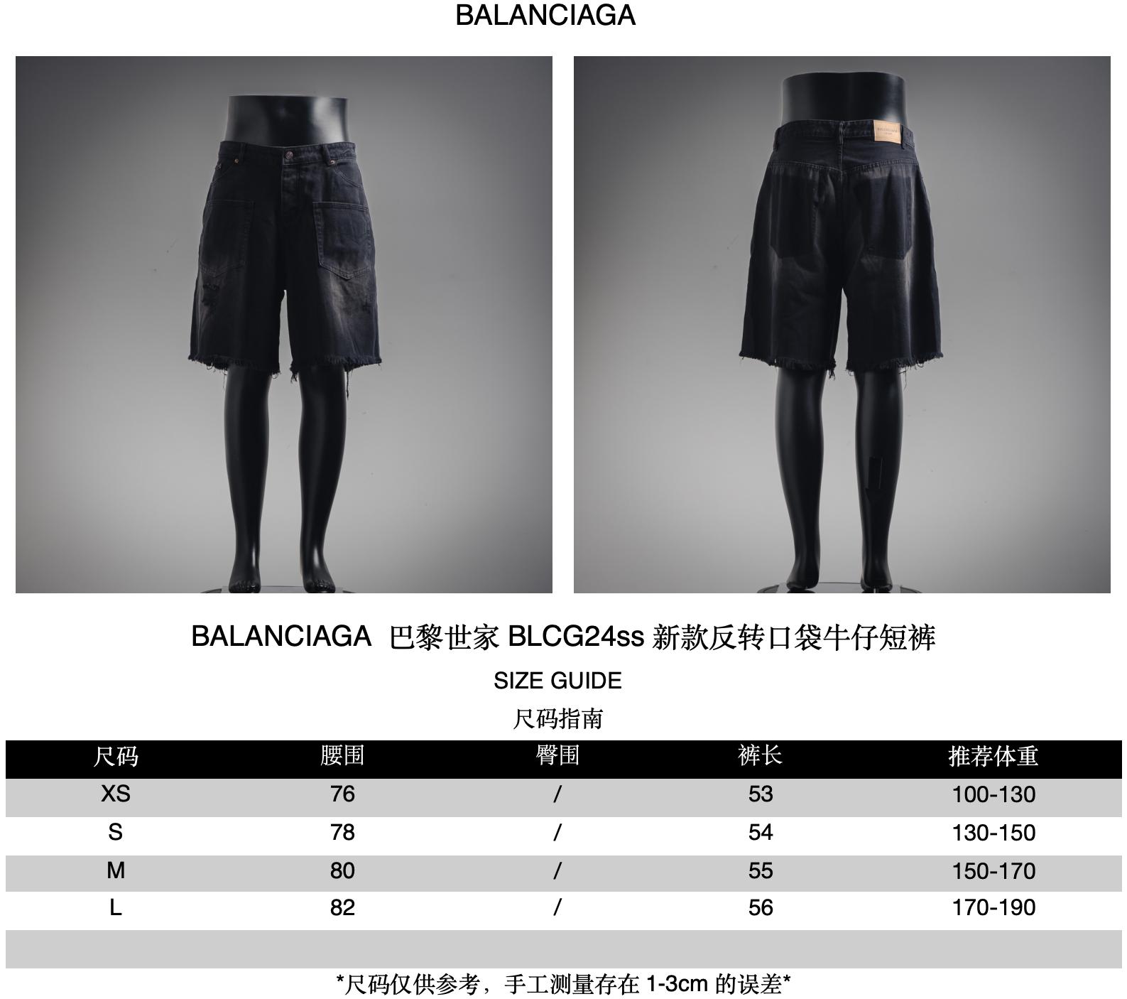 Recommended sizes for Balenciaga's new reversible pocket denim shorts, BLCG24ss