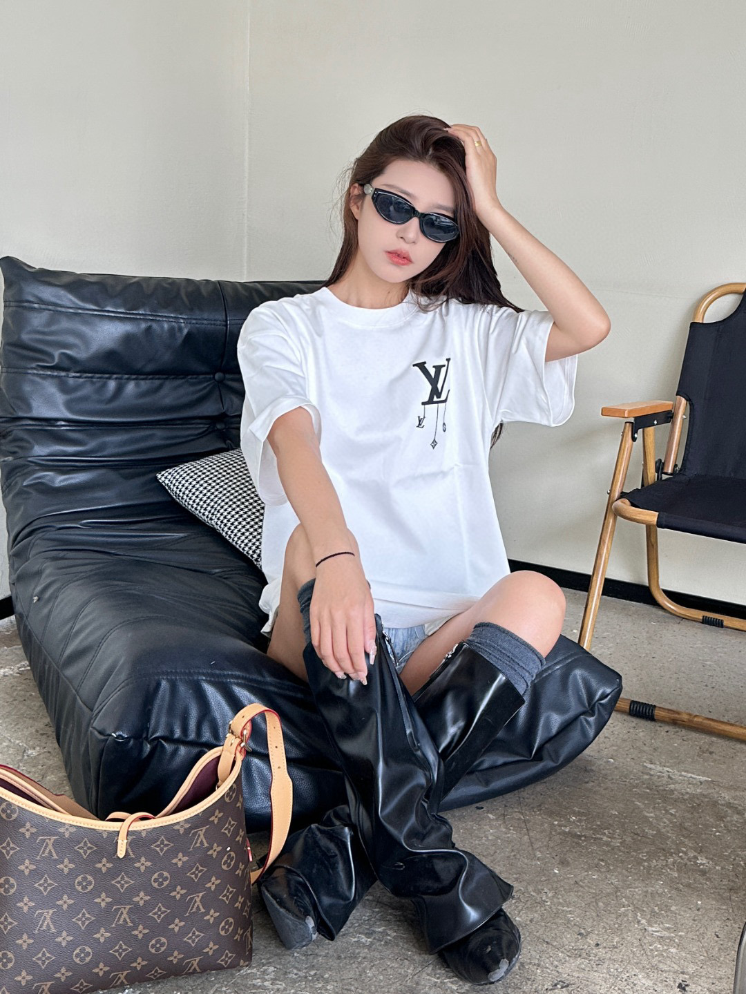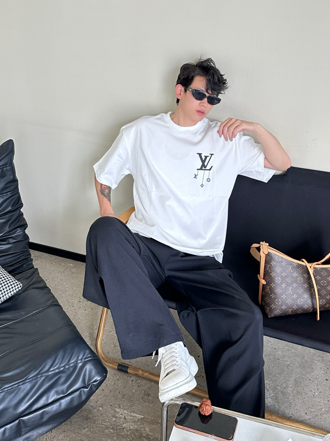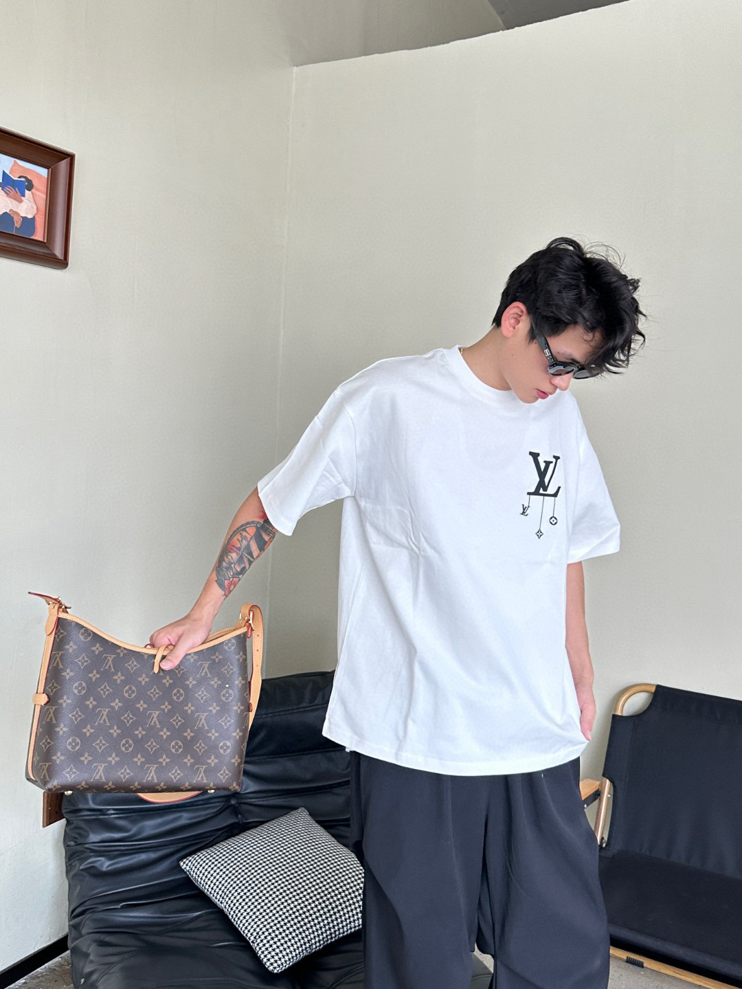 #Louis Vuitton/ Louis Vuitton 25ss pendant print short-sleeved top wearing effect