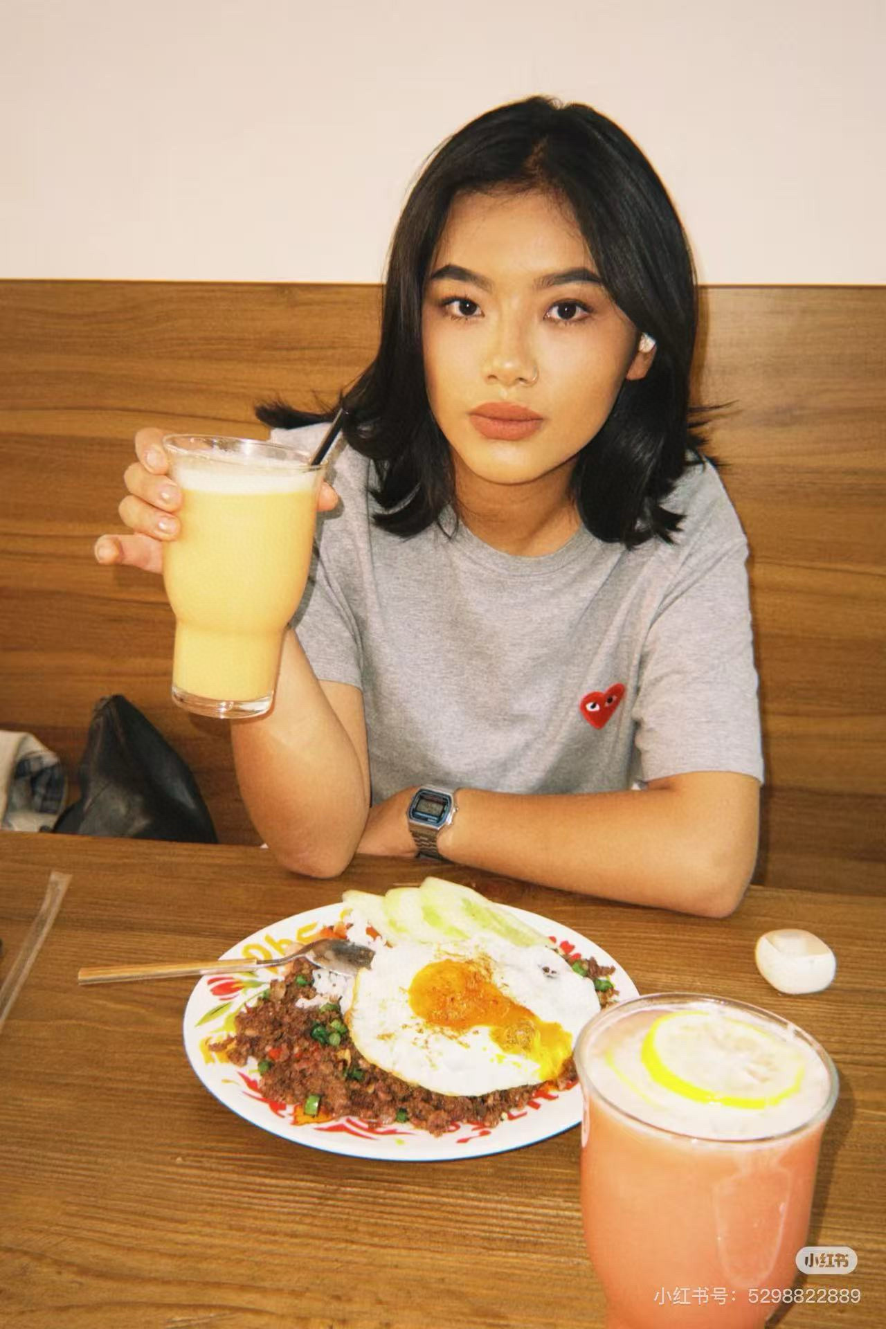 #CDG Rei Kawakubo's classic heart-shaped embroidery short-sleeved top wearing effect