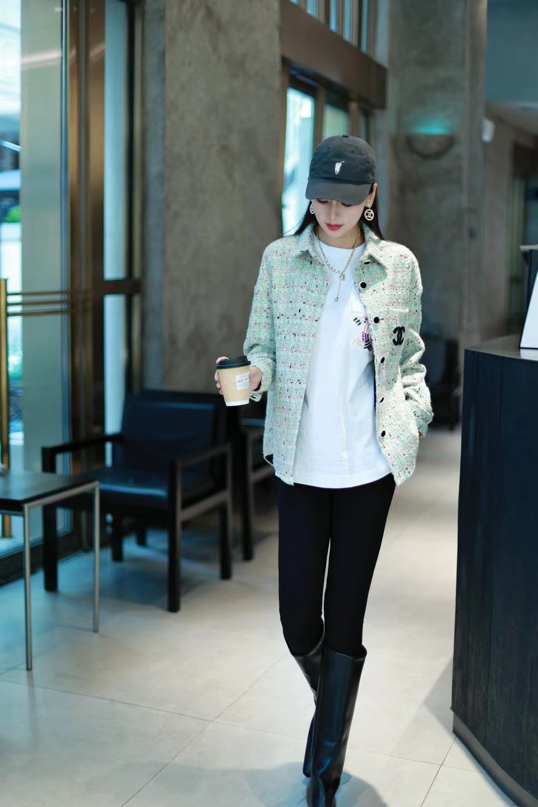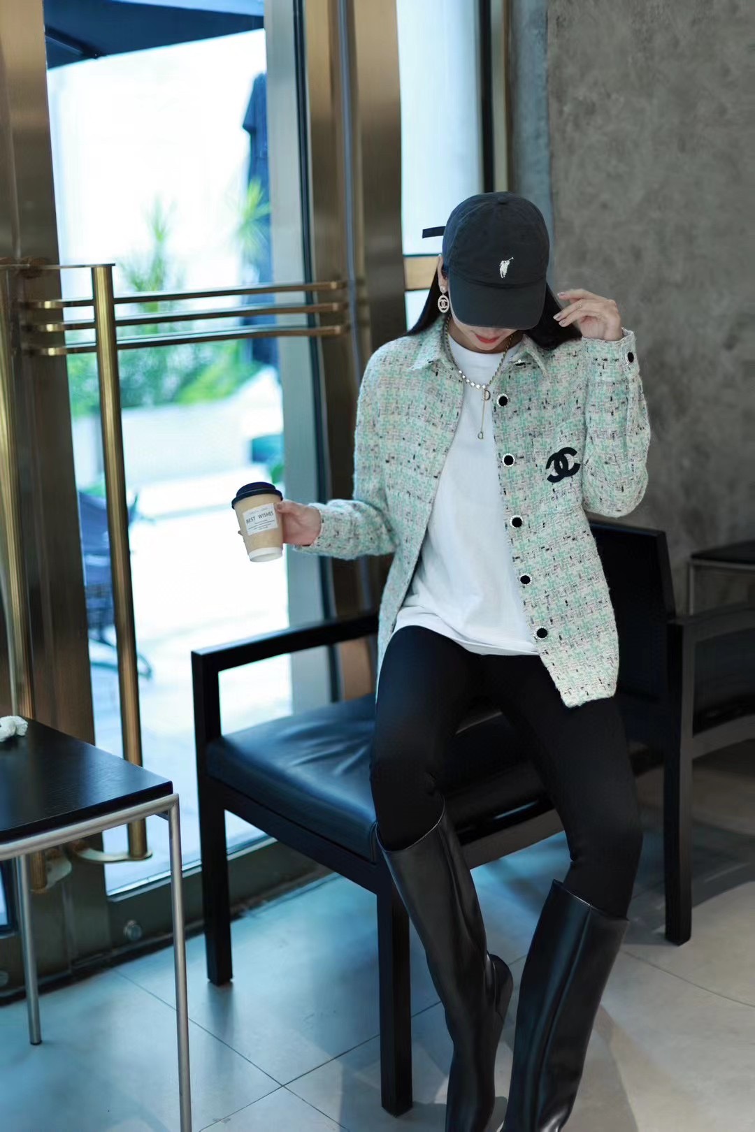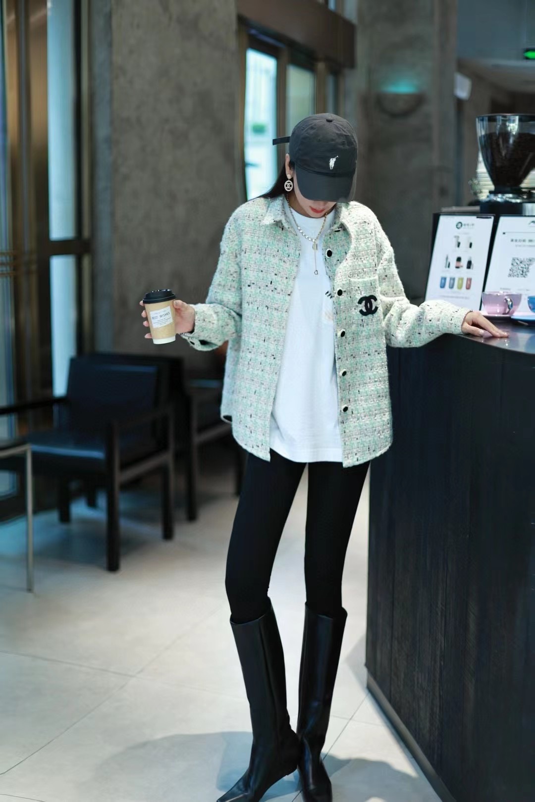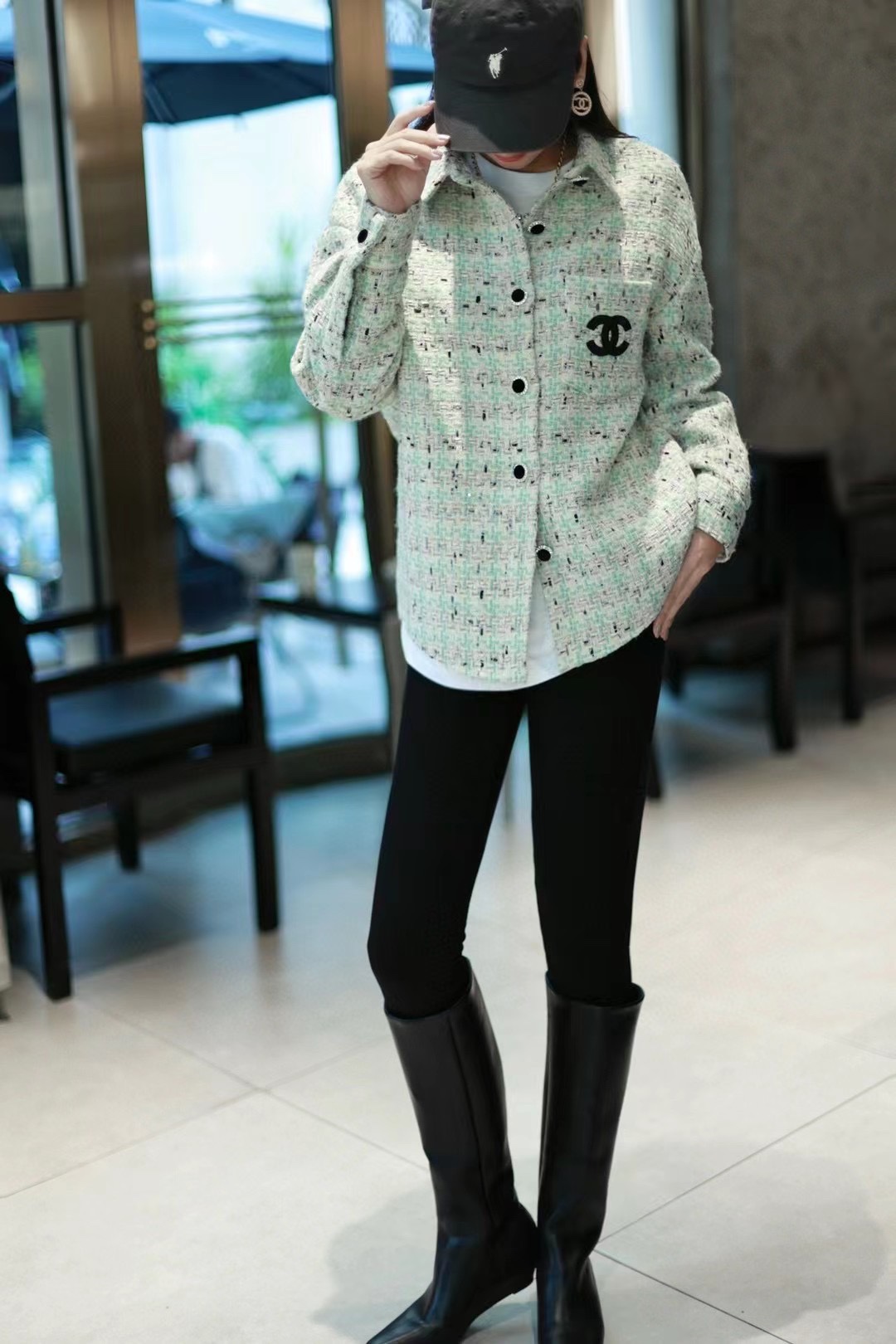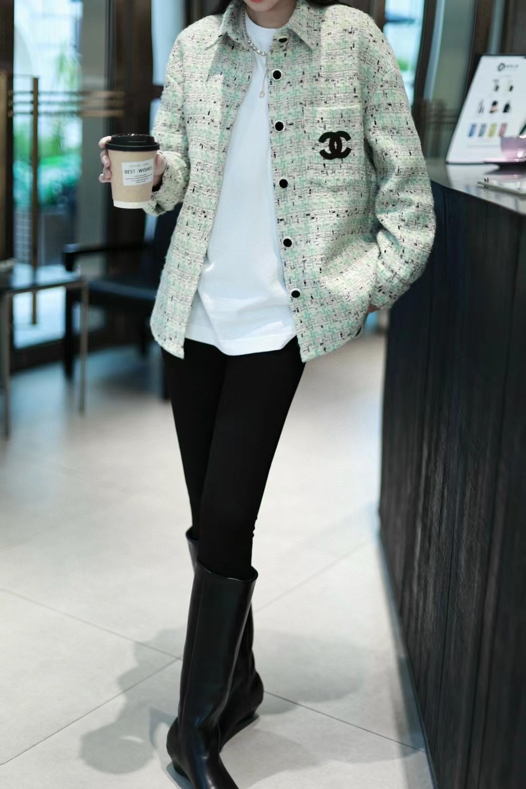 CHANEL/ Chanel 24Fw Haute couture silver thread woven Check shirt coat (Women's style) Wearing effect #