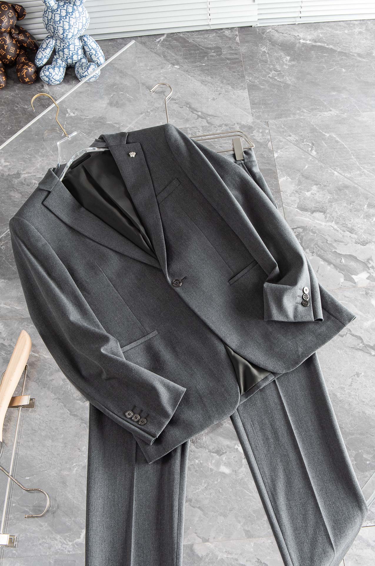 VER**SACE ** Fan Si ** zhe **V1? ? 2025FW// wool blend casual business suit # [suit ? trousers] A decent suit definitely holds a very important position in many people's hearts. Whether it's an elite workplace or other formal occasions, wearing a suit when you are hesitant is a good choice. In the trend of increasingly pursuing customization and personal fashion, the cutting of suits is no longer merely about being well-tailored and having a neat fit. More importantly, it is about ensuring a decent fit while also having a distinctive design sense, making the wearer the focus in an instant. At the same time, suits are different from other clothing and do not have a clear seasonal division. This indicates that a suit can be worn at any time. The traditional basic silhouette suit set, with a moderately modified waist, creates a natural and form-fitting waist shape, easily creating a free and casual streamlined style. However, in a situation where the silhouettes are quite different, to stand out and become a suit that combines fashion and wearability, a crisp silhouette alone is not enough. Special textures and fabric quality can make a suit stand out. Simple and elegant, it has achieved the ultimate in details. The stable and classic flat lapel has been ironed and shaped multiple times, making the collar surface always crisp and not prone to deformation. The signature metal logo! Even the simple embroidery is depicted very well, which is enough to show the brand's profound skills in handling details! The fine wool fibers on the upper surface of the fabric create a more comfortable wool feel, and it does not pill or shed, making it convenient for daily wear and care. It naturally presents a variety of colorful checkered textures, forming a unique floral pattern! The matching suit pants have a crisp cut, and the fine check pattern will turn you into long pants in no time! The extremely excellent detail depiction combined with the highly stylized fabric makes the wearing effect fashionable and fully showcases the British gentleman!! Fine craftsmanship and square silhouettes are the standard elements that make up a top-quality suit. A well-crafted suit can not only be your most important companion in the workplace but also enable you to move gracefully and appropriately in various social occasions. Suits are different from other types of clothing. Except for some particularly obvious functional fabrics, they can complement other clothing all year round. However, in a situation where the styles are quite different, if you want to make a fashionable and understated suit that stands out, you can only work on the essence of the fabric. The traditional and basic fitted suit jacket, with a moderate amount of embellishment at the waist, creates a casual and practical minimalist style. We regularly release some simple yet elegant casual suits. This set is of high quality. The overall design is simple and grand, stable and classic, with a refined and elegant style. After multiple rounds of integration and pressing, the shape is naturally flat and three-dimensional. Moreover, it uses the Gongneedle technique for secondary stitching and shaping, ensuring that the collar still has a crisp and gentlemanly look even under the multi-layer fabric sewing. All the focus is placed on the essence of the fabric. The overall touch is comfortable, smooth, light and textured. Although the fabric seems thin and light, it exudes a special sense of nobility! Fabric :20% wool, 18% viscose fiber, 4% spandex, 58% polyester fiber. Lining :100% polyester fiber. The hand feel is soft and smooth. The fine wool fibers on the surface create a more comfortable wool sensation. Moreover, it does not pilling or shed, making it convenient for daily wear and care. It has become renowned worldwide for its classic and solemn design style. Many celebrities and even the President of the United States would only choose a suit for important occasions, which shows its noble status in the industry! The unique fabric is integrated with the classic figure-hugging silhouette, creating a casual suit that is both classic and fashionable with a modern urban touch, allowing the wearer to become a refined and elegant gentleman at any time. A decent suit definitely holds a very important position in the hearts of many people. Whether it's an elite workplace or other formal occasions, wearing a suit when you are hesitant is a good choice. In the trend of increasingly pursuing customization and personal fashion, the cutting of suits is no longer merely about being well-tailored and having a neat fit. More importantly, it is about ensuring a decent fit while also having a distinctive design sense, making the wearer the focus in an instant. At the same time, suits are different from other clothing and do not have a clear seasonal division. This indicates that a suit can be worn at any time. Size: M-XXL. Complete set available for sale without disassembly