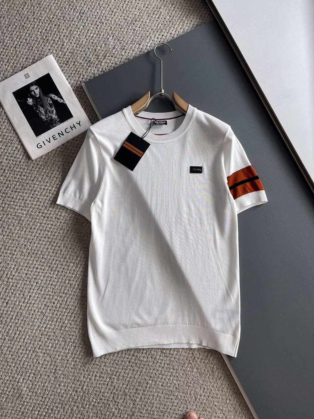 Zegna's new high-end, elegant and fashionable men's custom top-of-the-line casual short-sleeved round-neck knitted sweater for early spring 2025 is a must-have item for high-end individuals. The original logo design adds a touch of luxury and nobility. The seamless and perfect cut makes it comfortable, elegant and high-end to wear. The hand feel is very smooth and soft. It can be easily worn for business, fashion and casual wear, and the age range is very wide. In line with the practical dressing customs of men, the preferred size for urban seasoned fashionistas is M-3XL.