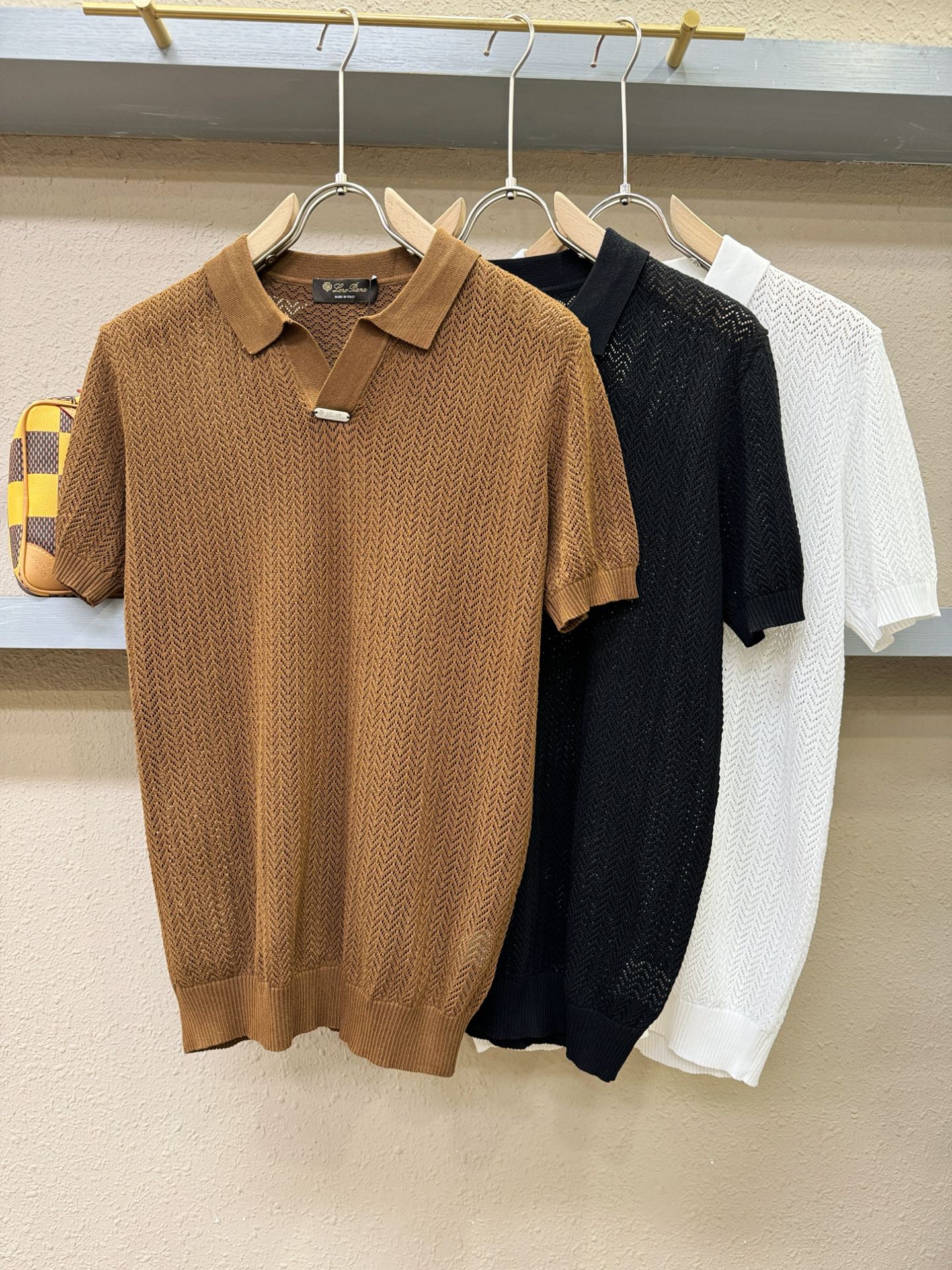 Loro Piana's new Spring/Summer 2025 knitted short-sleeved shirt is made of imported knitted fabric and has a soft touch. Top-quality imported private goods, fashionable design and trendy short-sleeved knitted sweater, without doubt luxurious quality. The wearing effect is excellent. The same style as the official website of luxury! Size: M-4XL