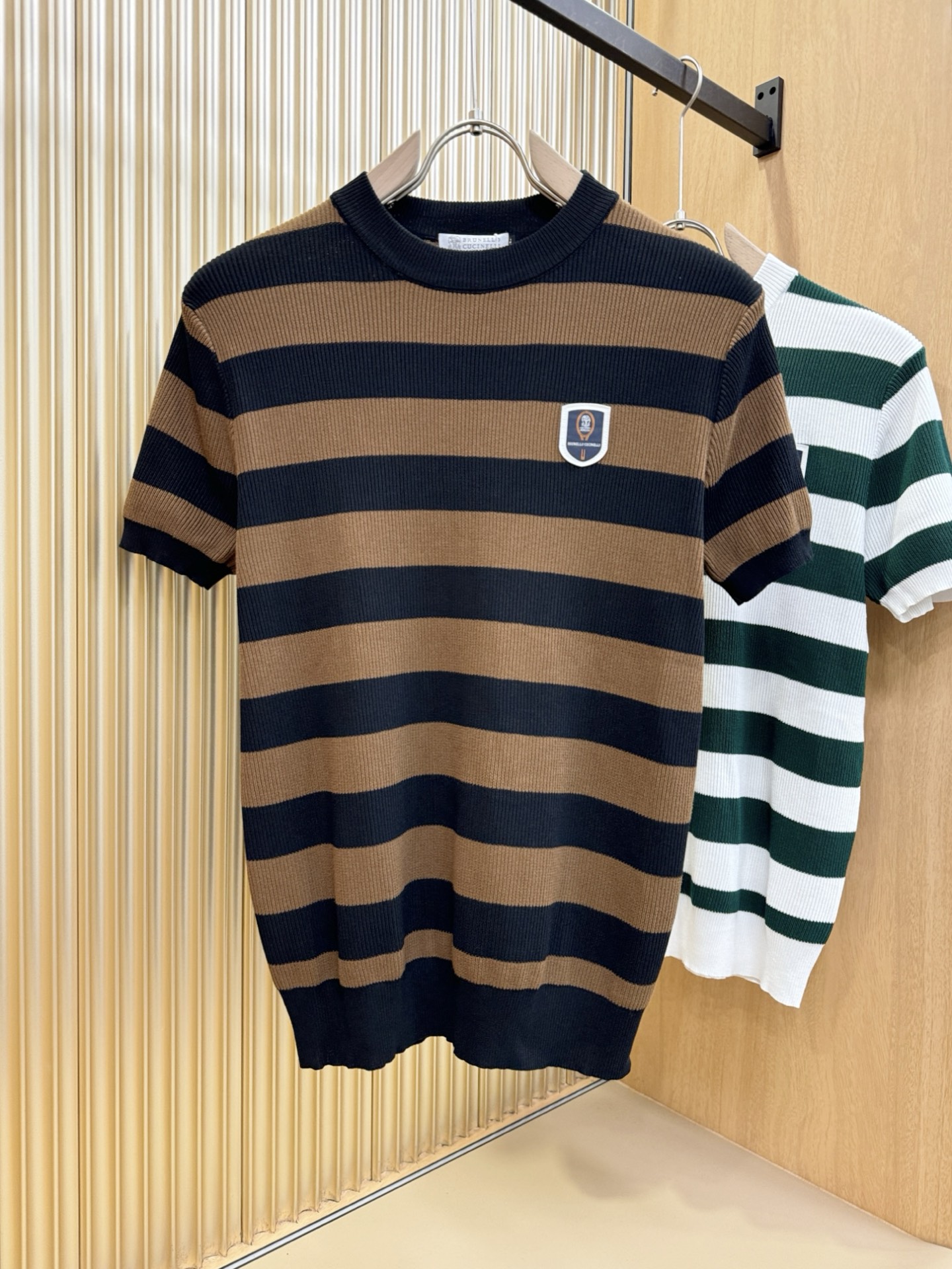 BC Bruti's new Spring/Summer 2025 knitted short-sleeved shirt, made of imported knitted fabric, has a soft touch. Top-quality imported private goods, fashionable design and trendy short-sleeved knitted sweater, without doubt luxurious quality. The wearing effect is excellent. The same style as the official website of luxury! Size: M-4XL