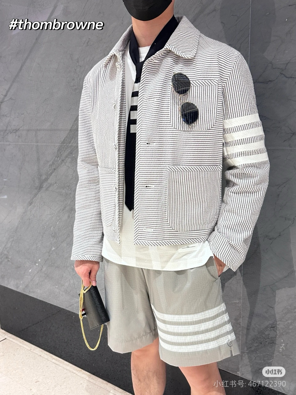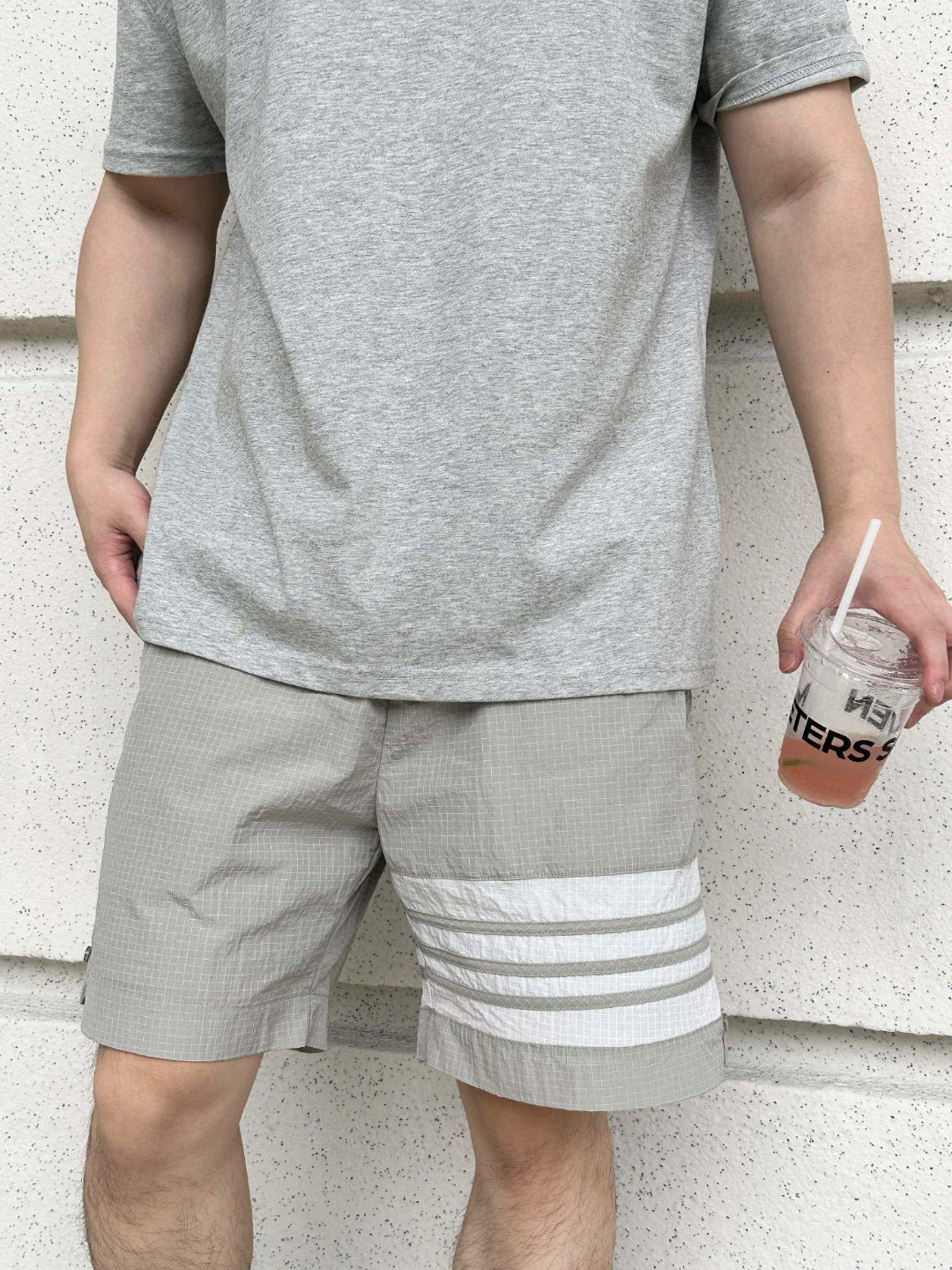 #Thom Browne/ Tom Browne 25ss Double-layer Woven four-bar Sun Protection Shorts Wearing effect