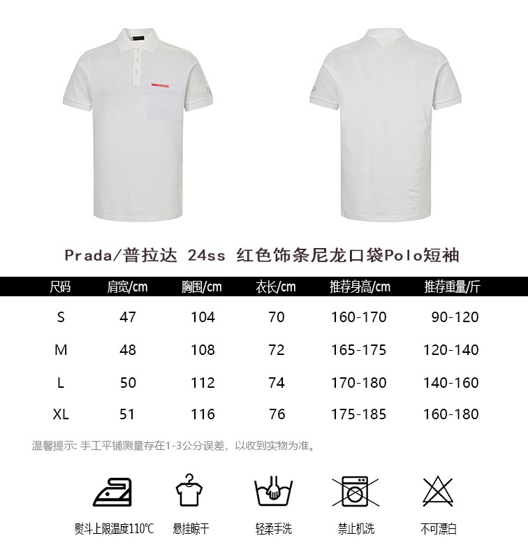 #Prada/ Prada 24ss Red Trim nylon Pocket Polo Short-sleeved Size watch