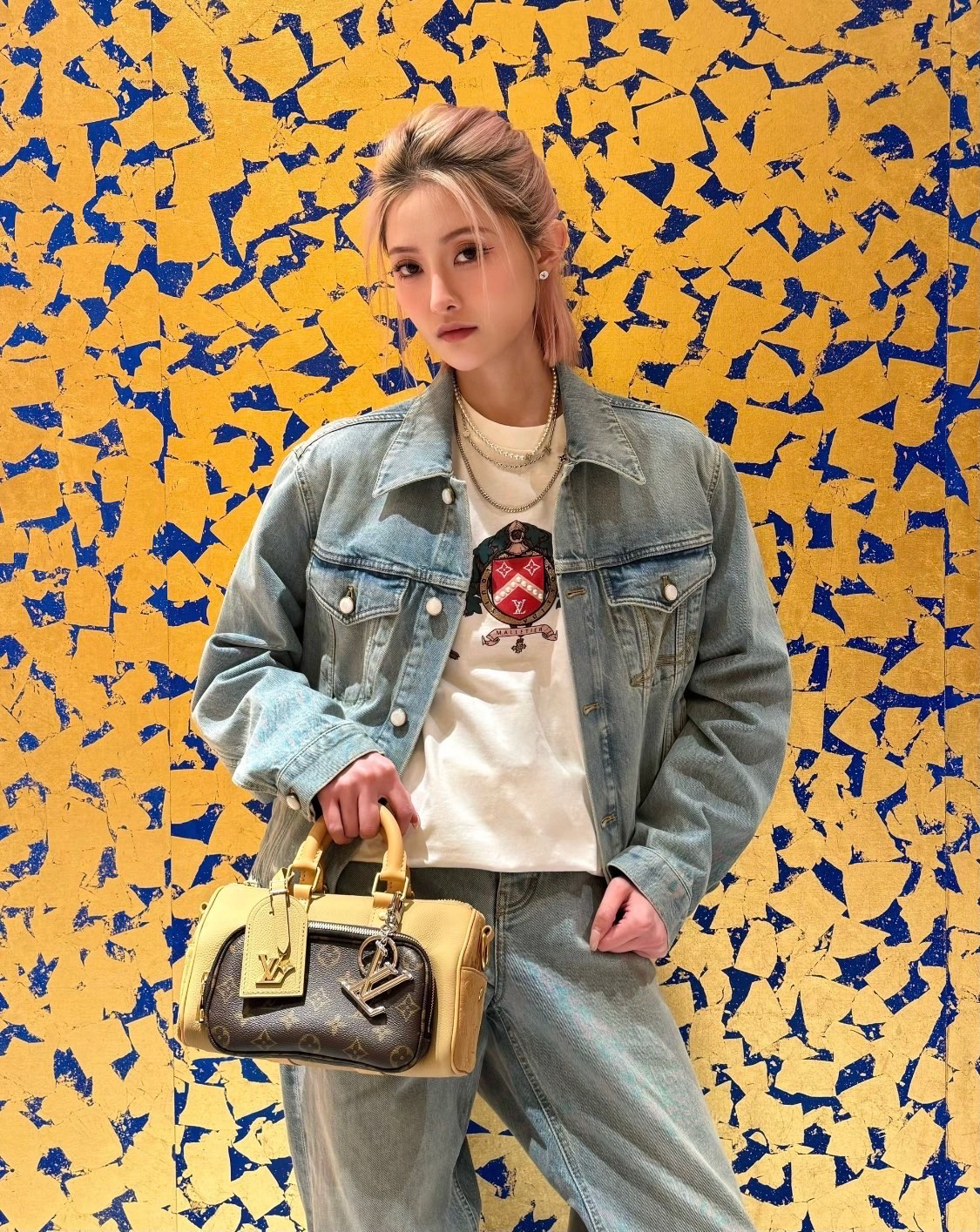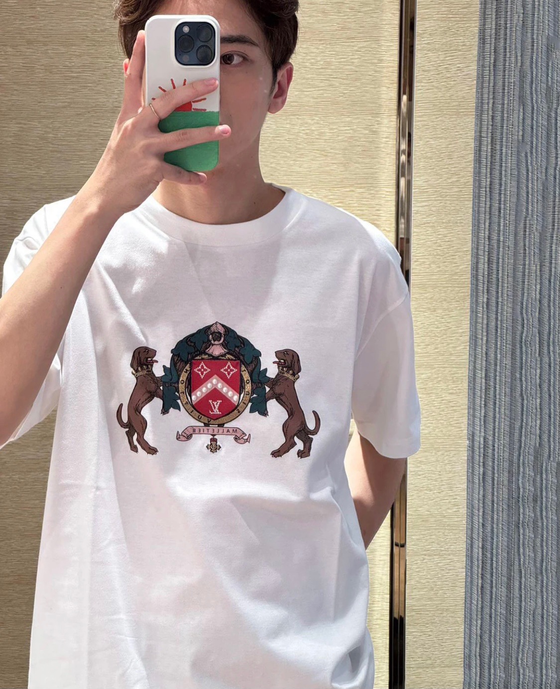 #Louis Vuitton/ Louis Vuitton 25ss Double Dog logo print short-sleeved top wearing effect