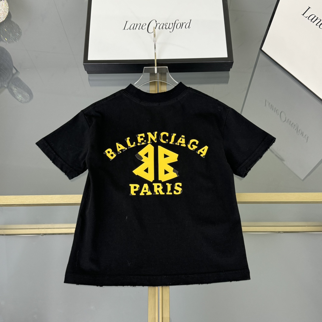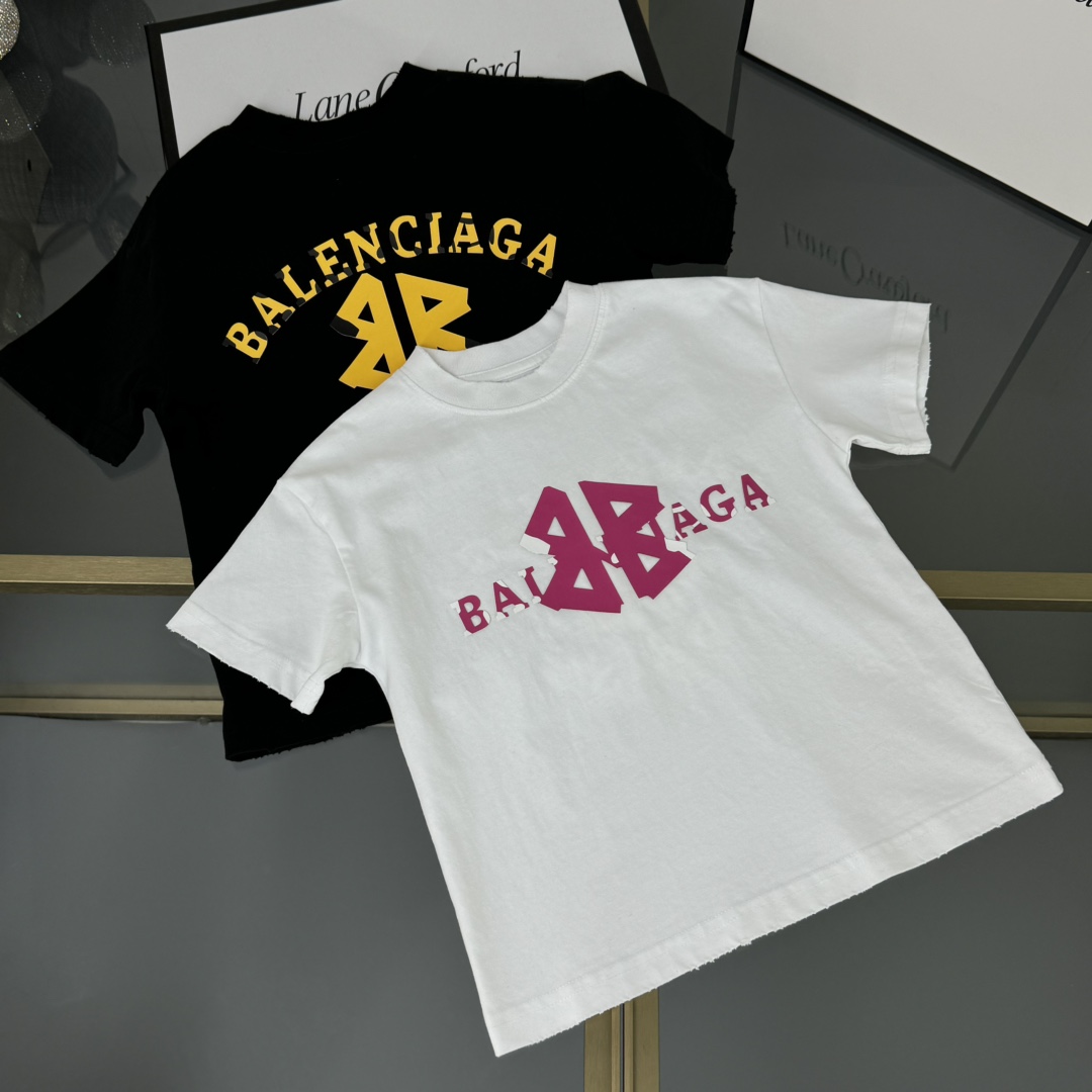 Balenciaga, high-end children's wear, private T-shirt, letter 3 d offset printing ? back large graffiti design, pure cotton fabrics, upper body comfortable, good-looking, code number: 100/110/120/130/140/150 cm