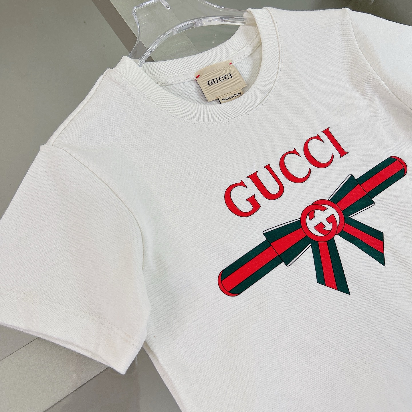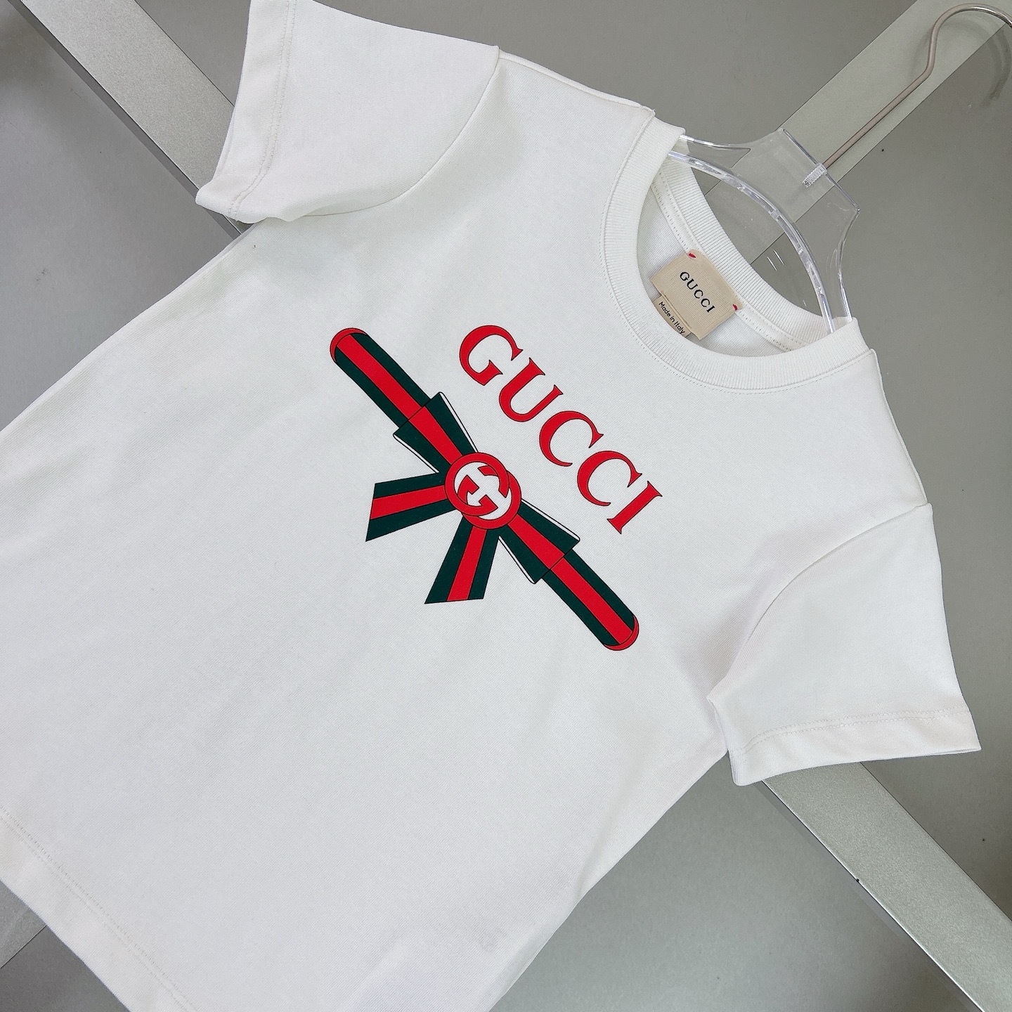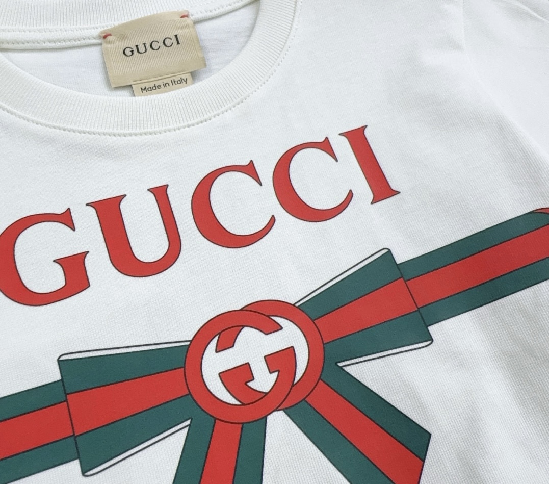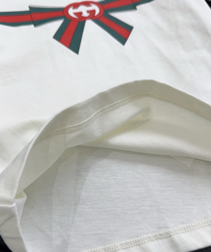 Reservation for 4 days! Gucci Gucci, high-end children's clothes, girls T-shirt, lovely bowknot ?? double G letters printing, cotton fabrics, upper body comfortable, good-looking, code number: 100/110/120/130/140/150 cm