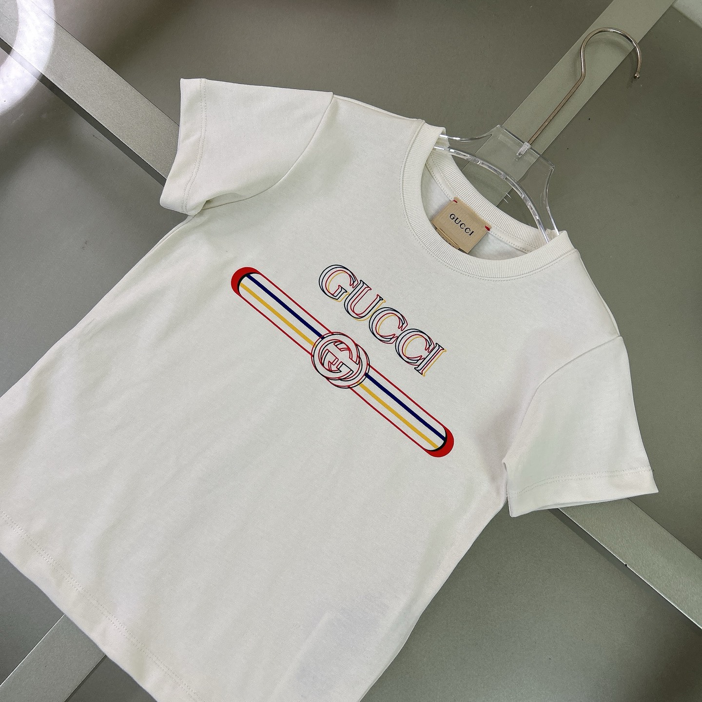 Reservation for 4 days! Gucci Gucci, high-end children's wear, private T-shirt, gradient double G logo printed letters, pure cotton fabrics, upper body comfortable, good-looking, code number: 100/110/120/130/140/150 cm