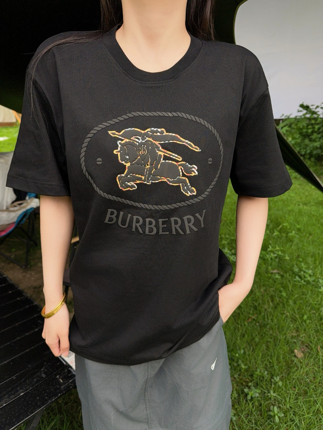 #Burberry/ Burberry 25ss Circle Warhorse foam Print short sleeve wearing effect