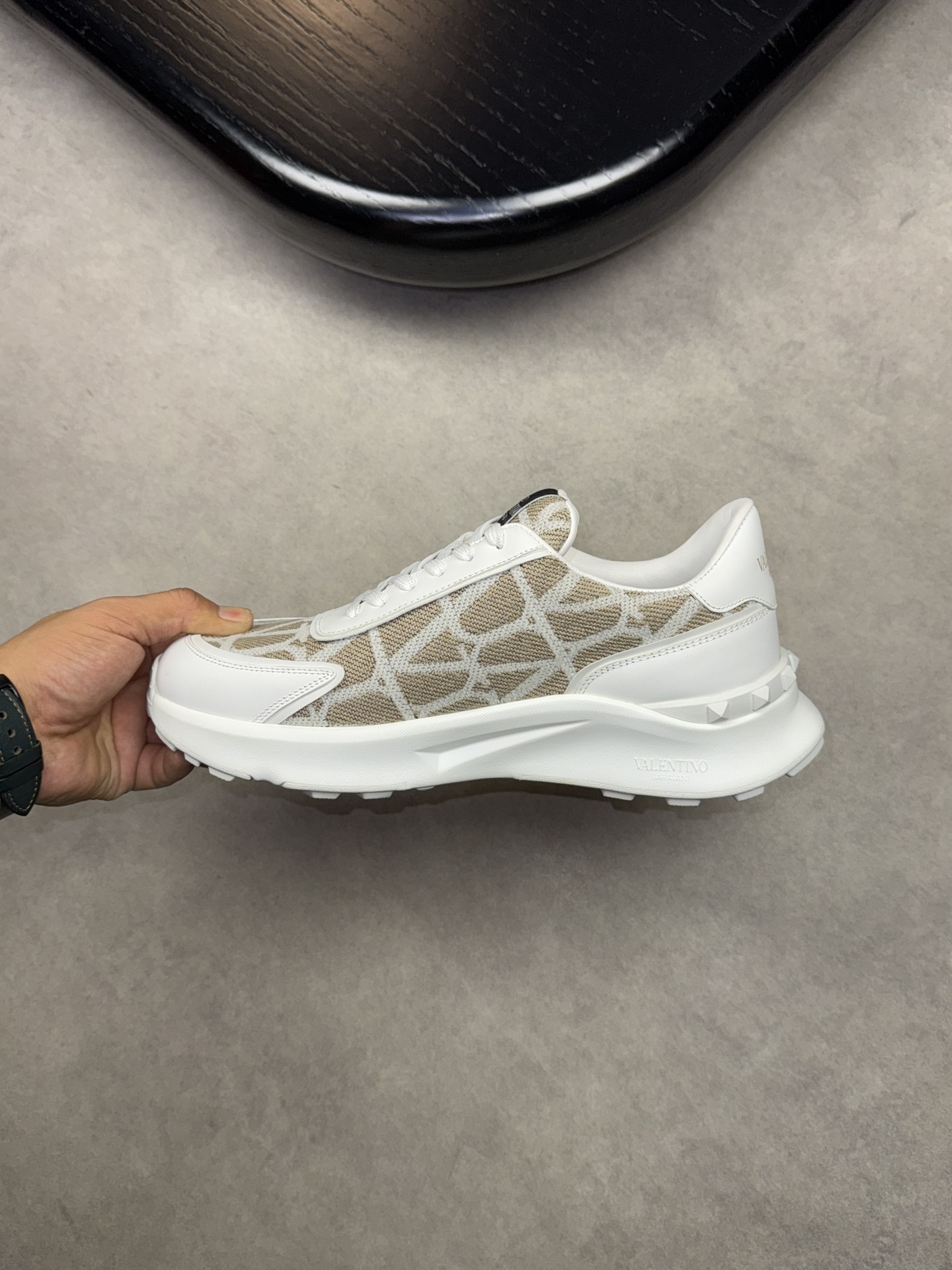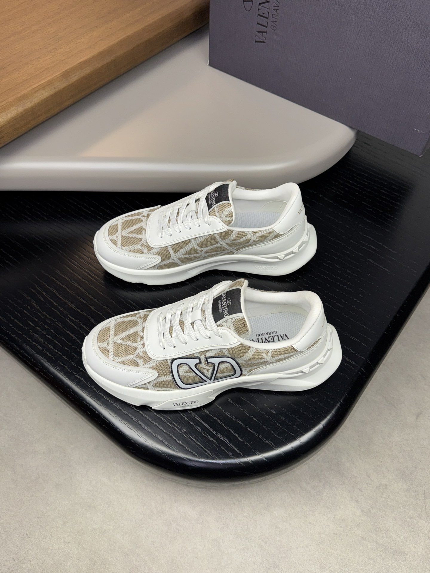 VALENTION Edition #4005?????? High-end quality original order - Upper: ?? silk calfskin, brand totem fabric, brand totem stitching on the upper - Inside: Brand canvas - Outsole: ultra light TPU foam and rubber; Formed outsole - Ultra-high quality control